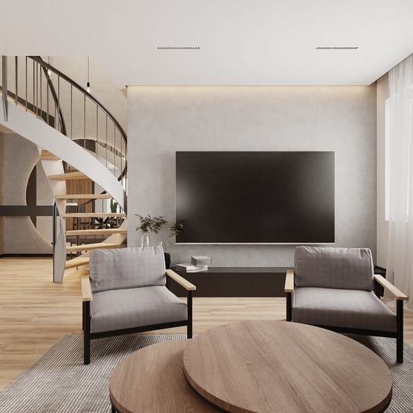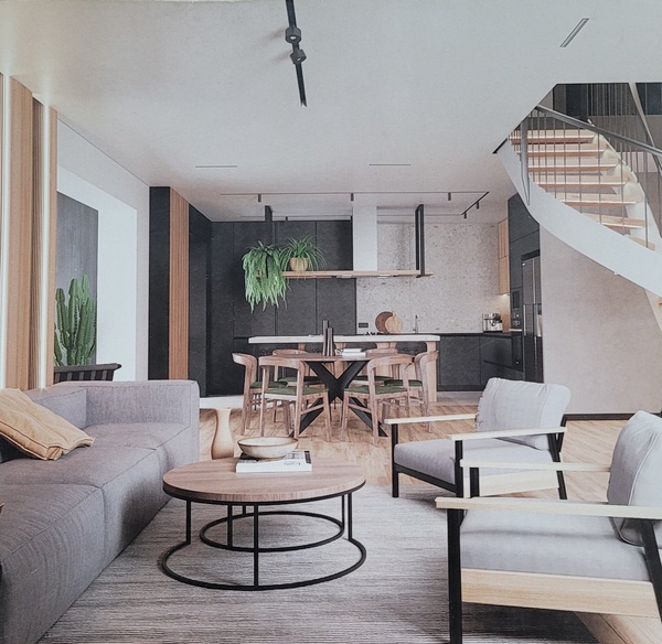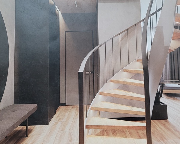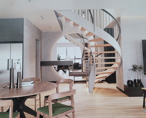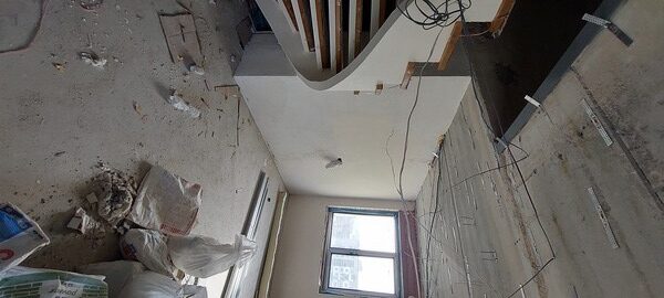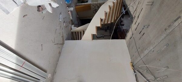 На другий поверх ведуть монолітні залізобетонні сходи, які надають простору елегантності та вишуканості. Внутрішні приміщення вже частково підготовлені: кімнати пошпакльовані, стелі готові до натяжних стель. Плюс до всього, вже закуплена трекова система освітлення високої якості, невелика частина якої також встановлена. А для додаткового комфорту і зручності на одному з балконів доклали стіну і поклали теплу підлогу.