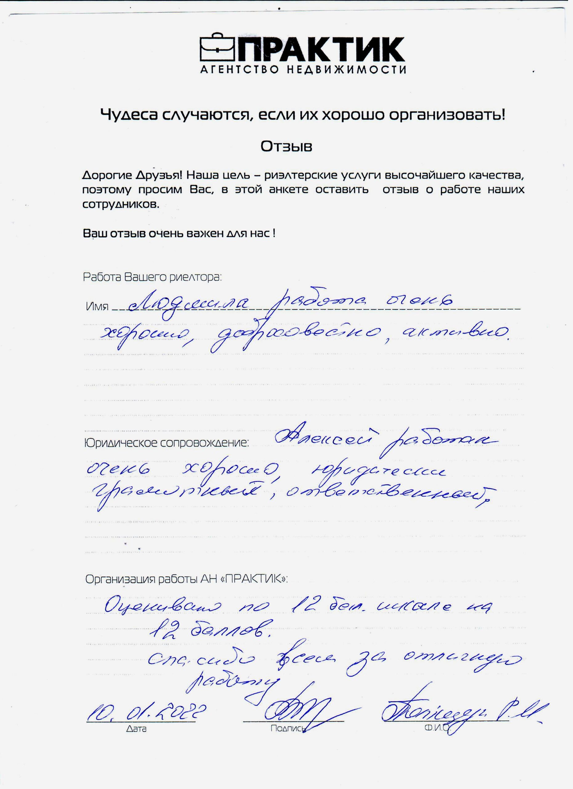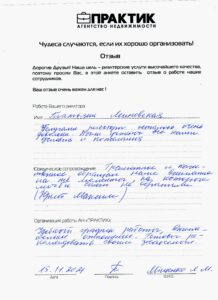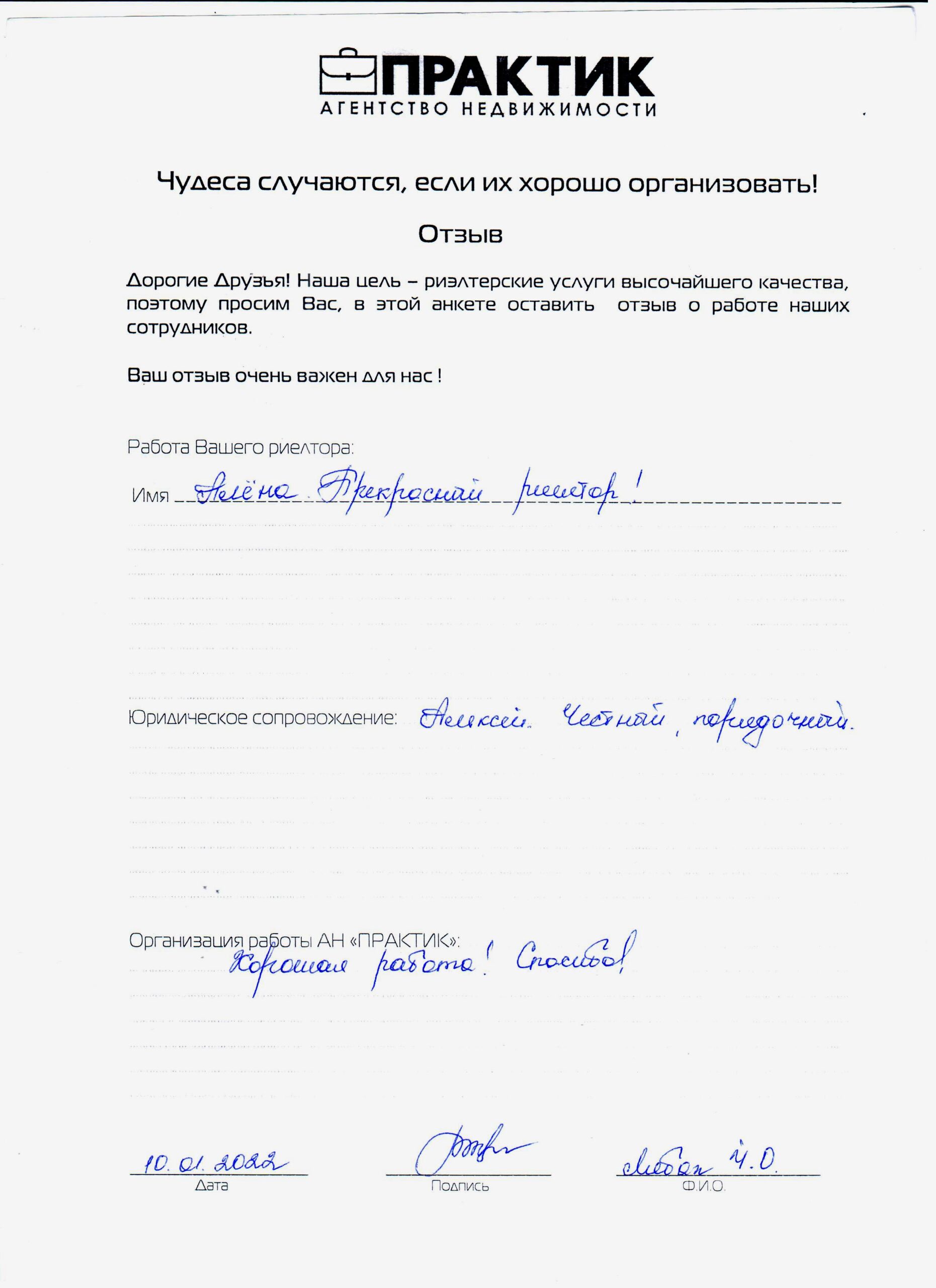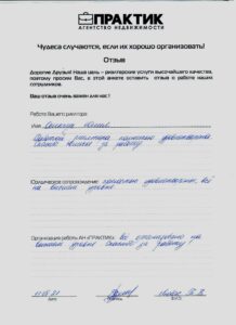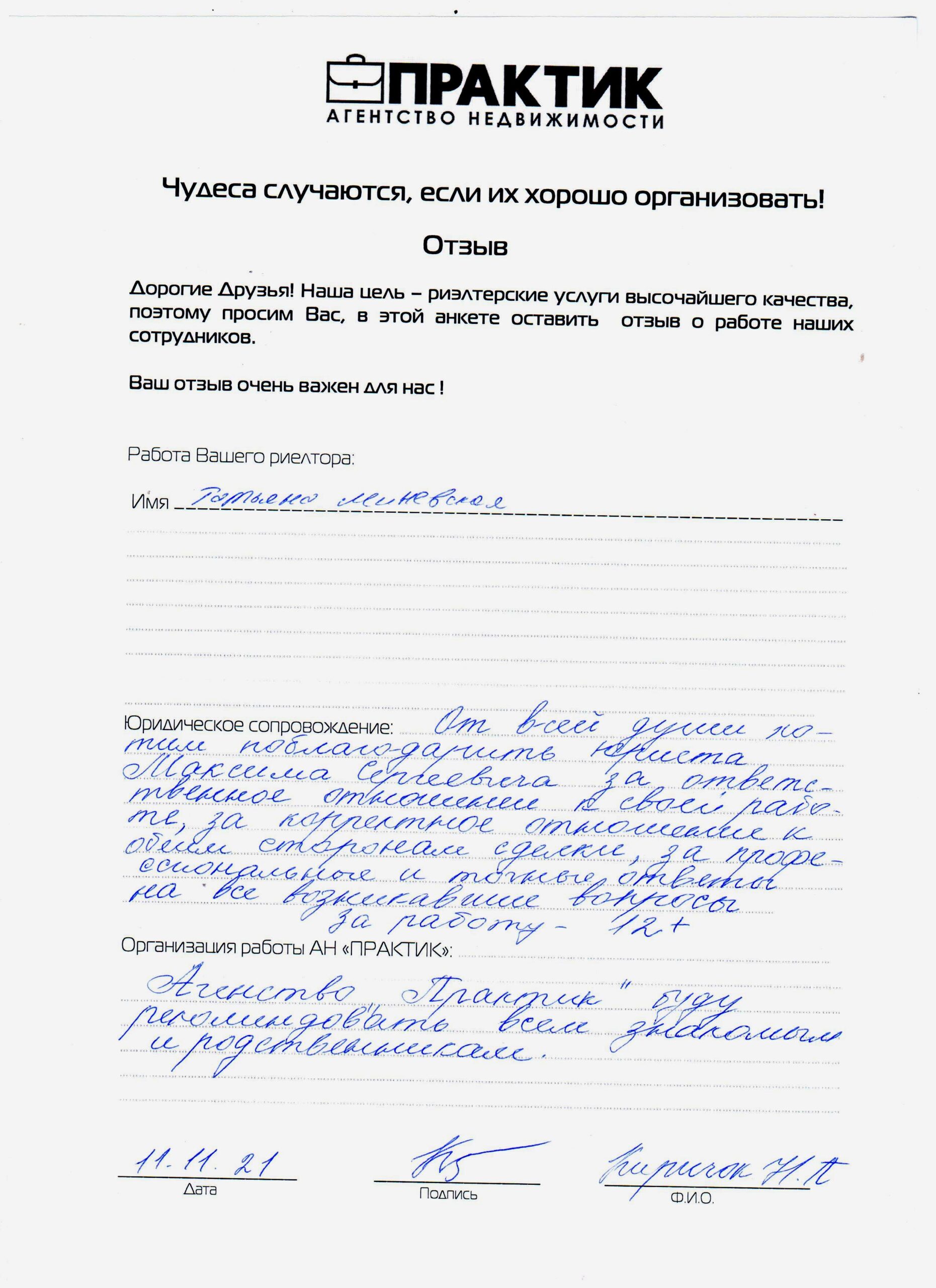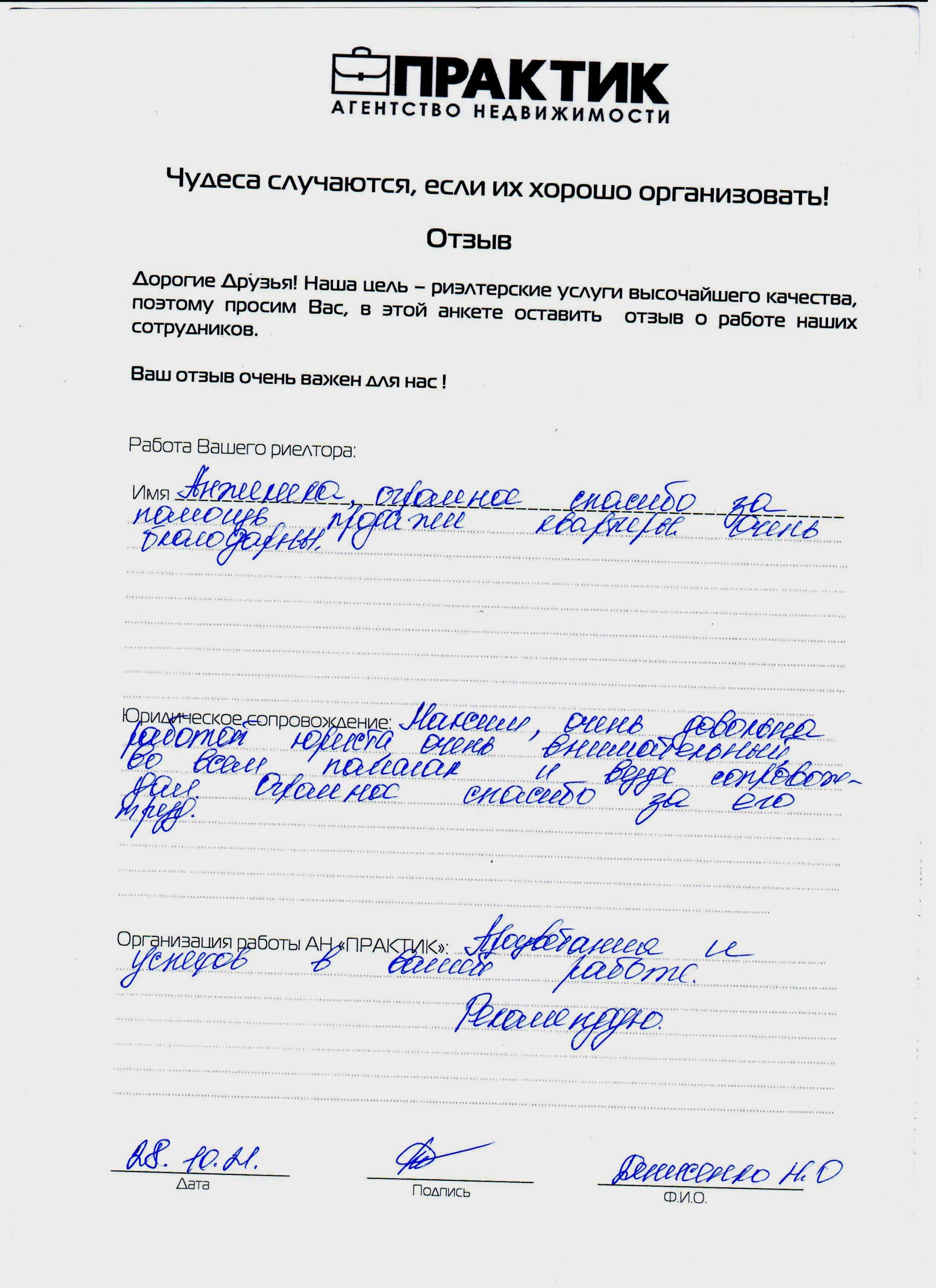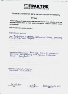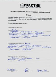 Відгук про роботу АН Практик від 28.10.2021 Евстегнеева Е.В.
