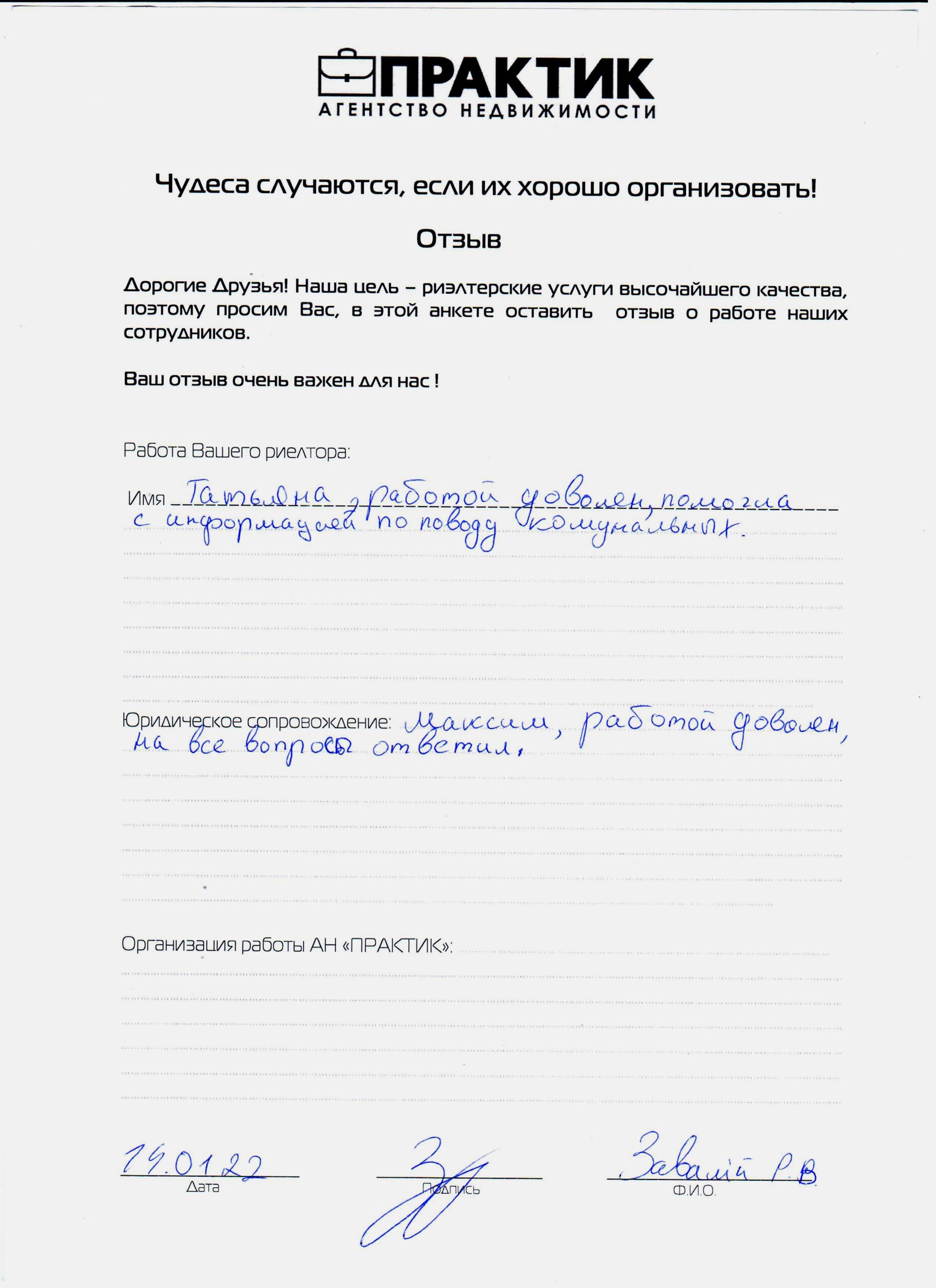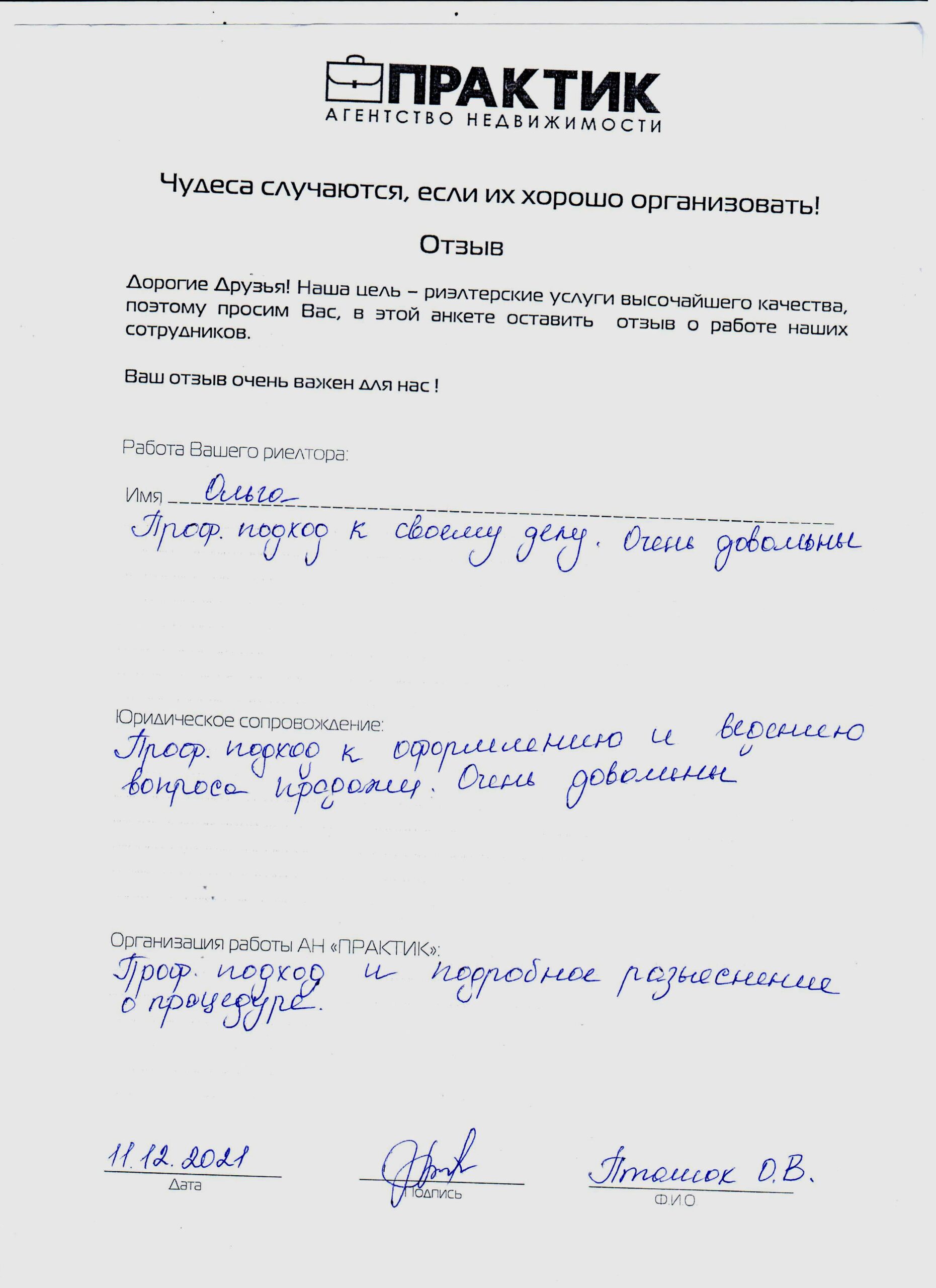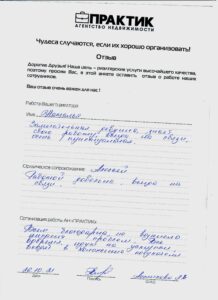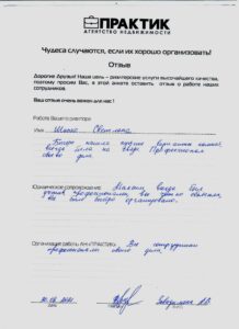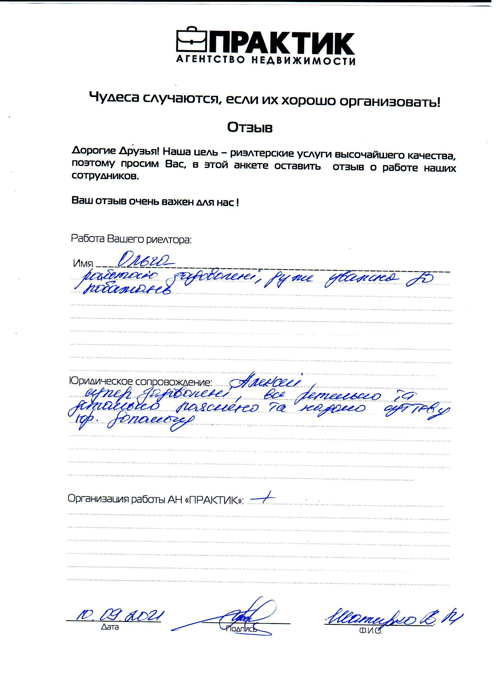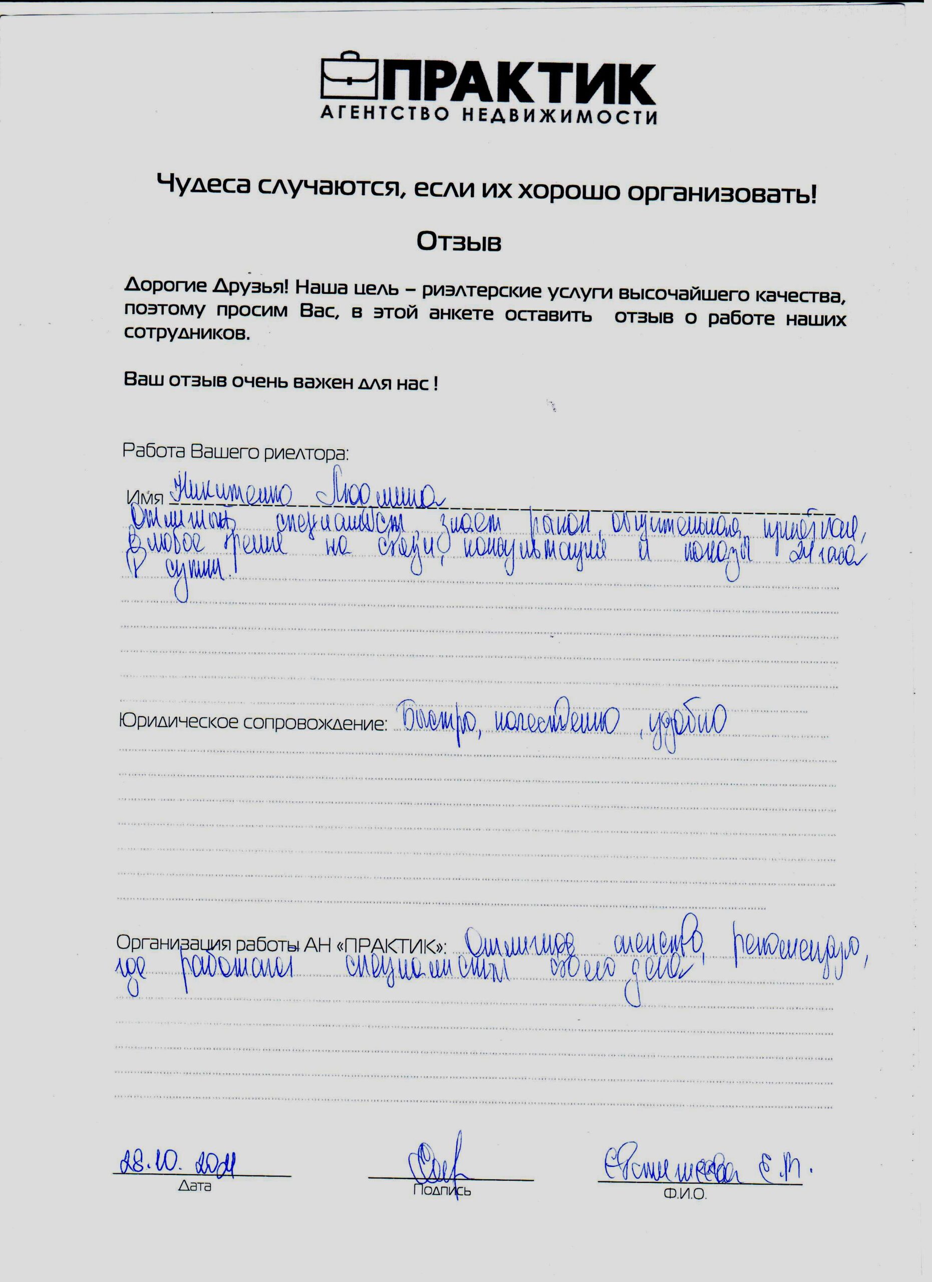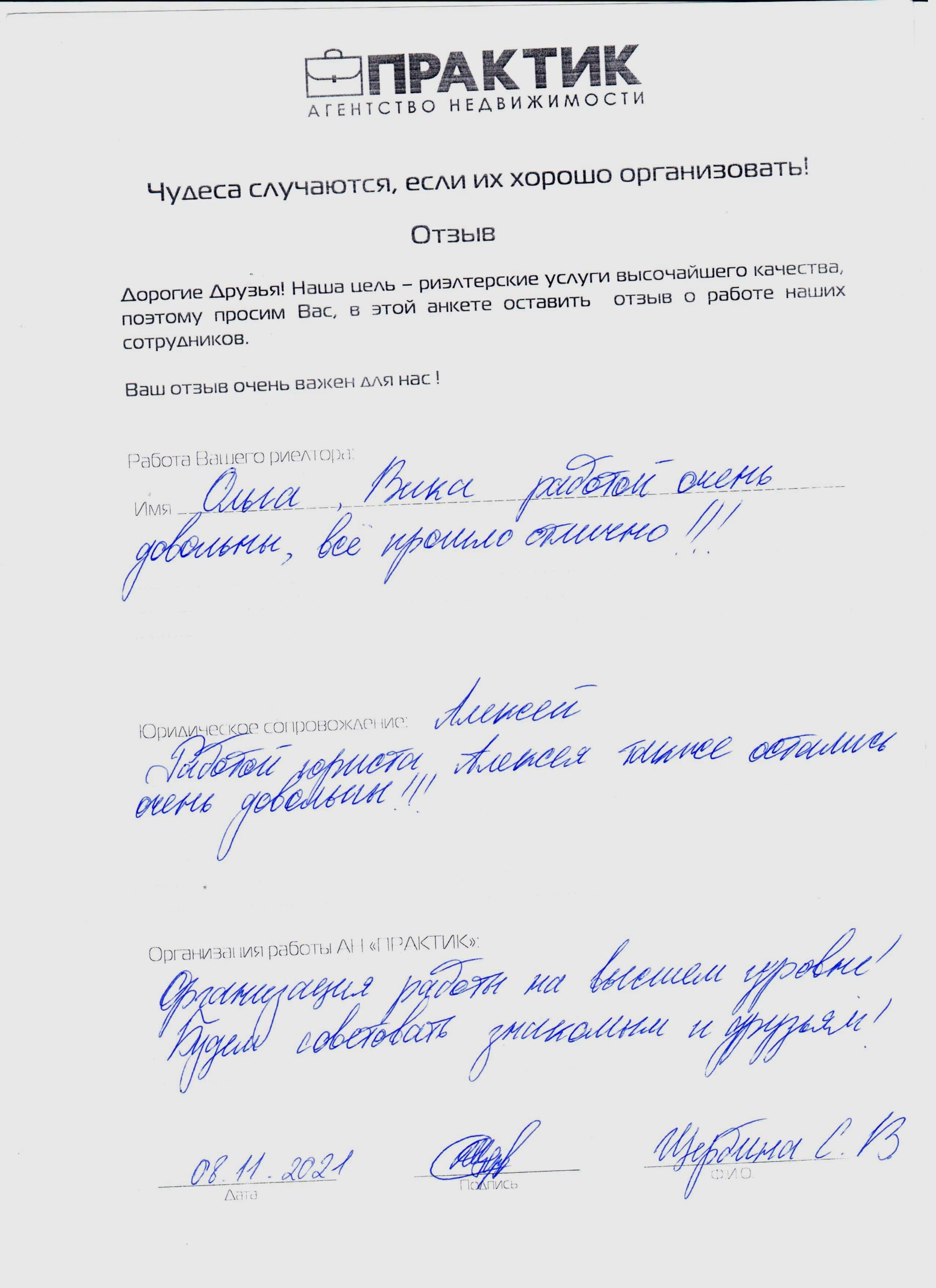 Відгук про роботу АН Практик від 28.10.2021 Евстегнеева Е.В.