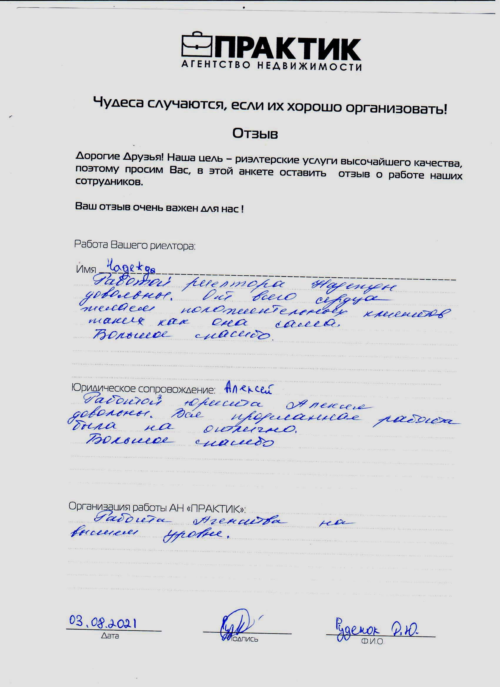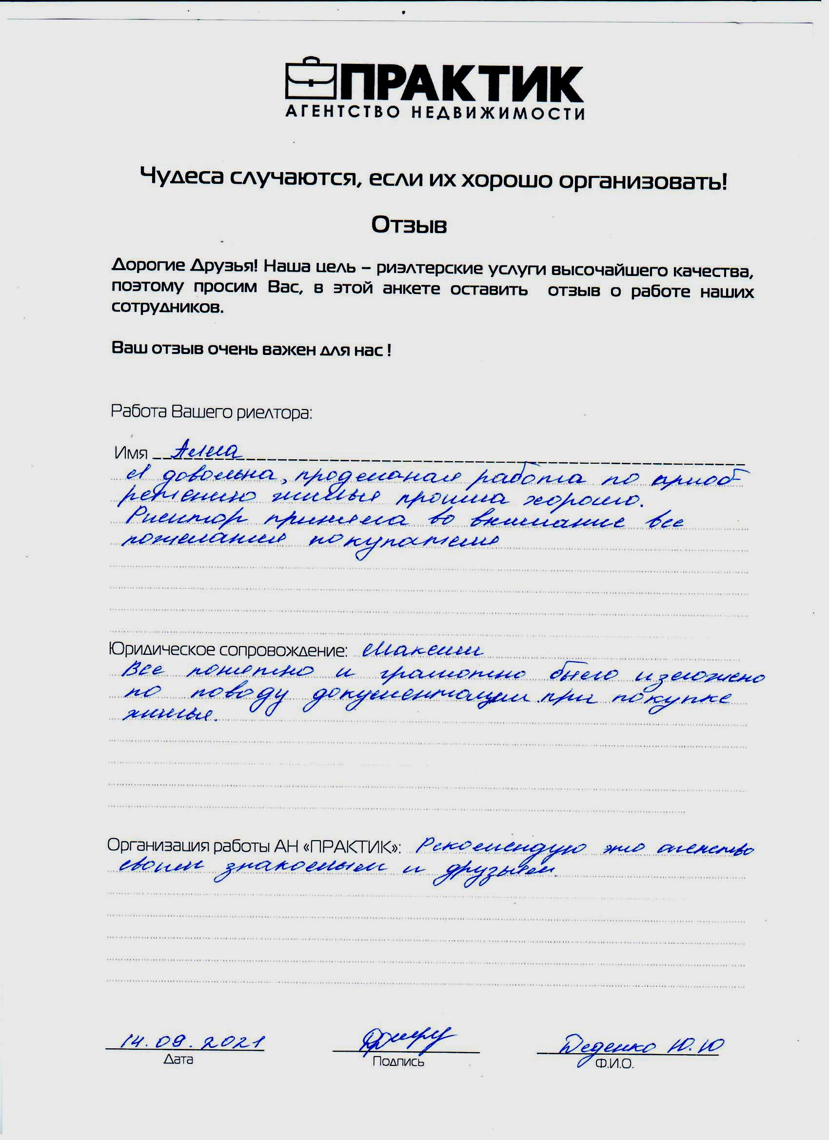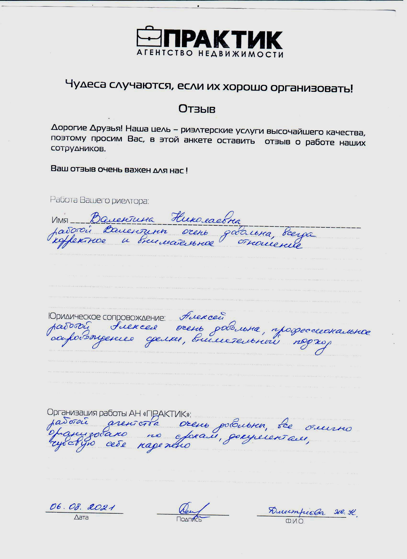 Відгук про роботу АН Практик від 17.08.2021 Виногродова И.С.