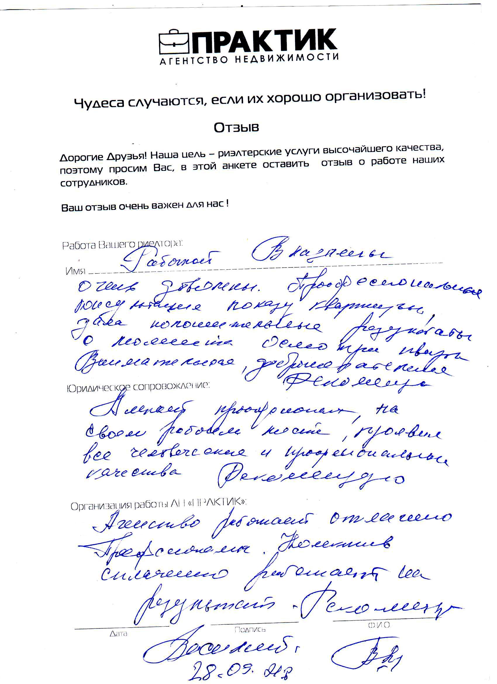 Відгук про роботу АН Практик від 30.08.2021 Заводимена А.В.