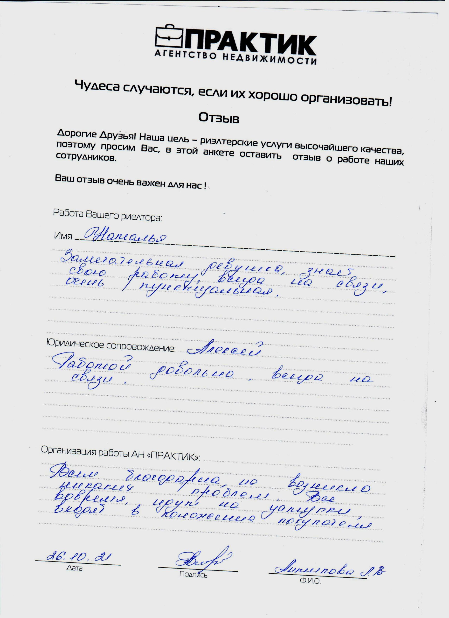 Відгук про роботу АН Практик від 26.10.2021 Антипова Л.В.