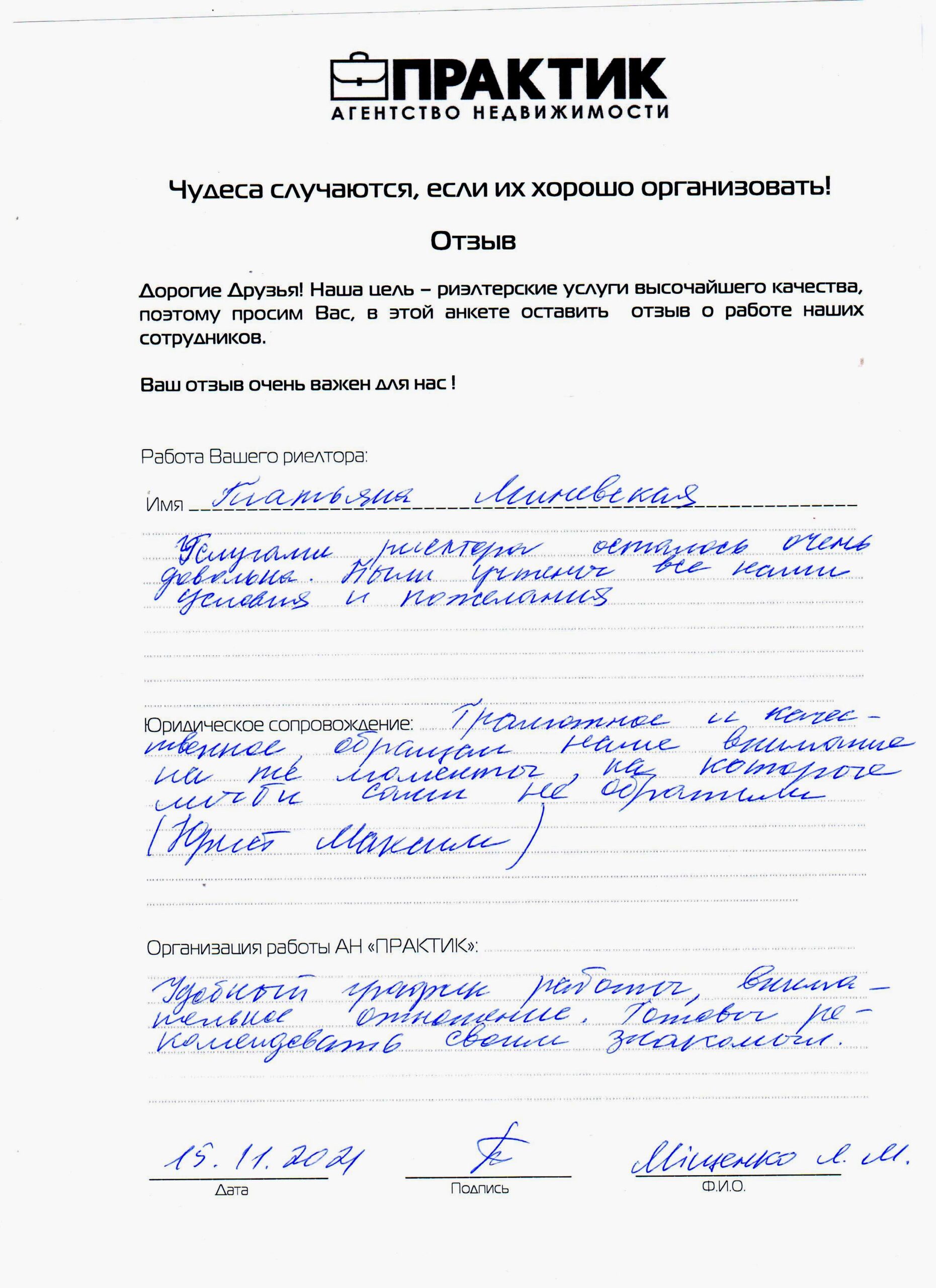 Відгук про роботу АН Практик від 15.11.2021 Мищенко Л.М.