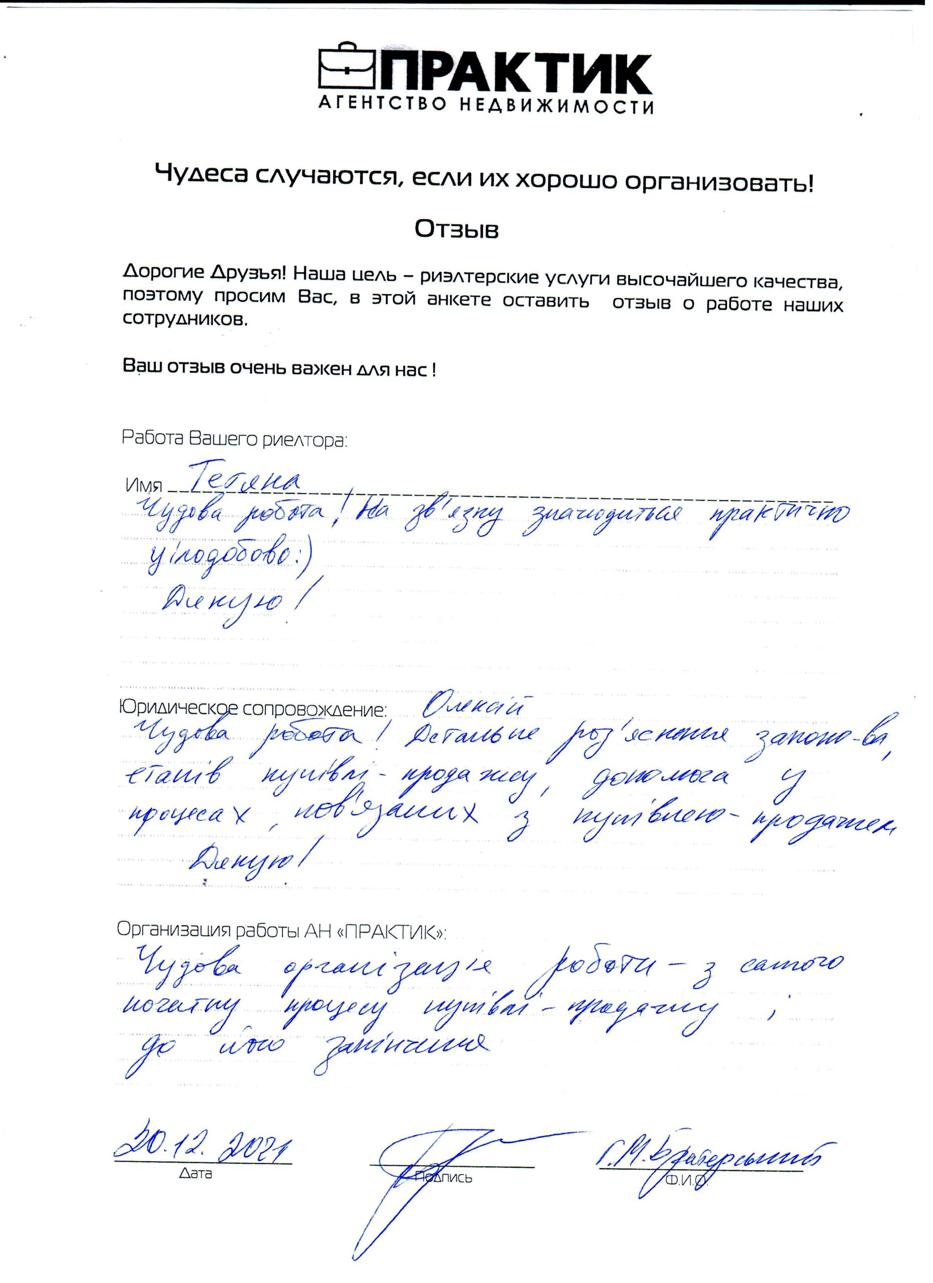 Відгук про роботу АН Практик від 20.12.2021 Братерский Г.М.