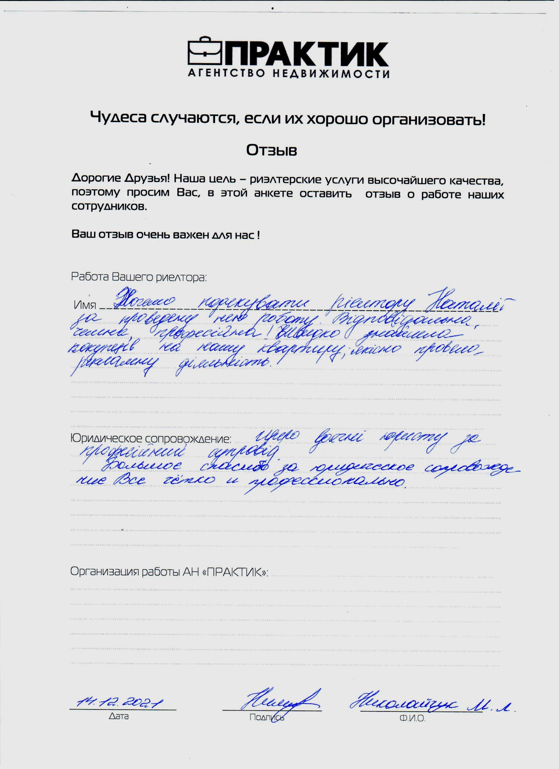 Відгук про роботу АН Практик від 14.12.2021 Николайчук М.Л.