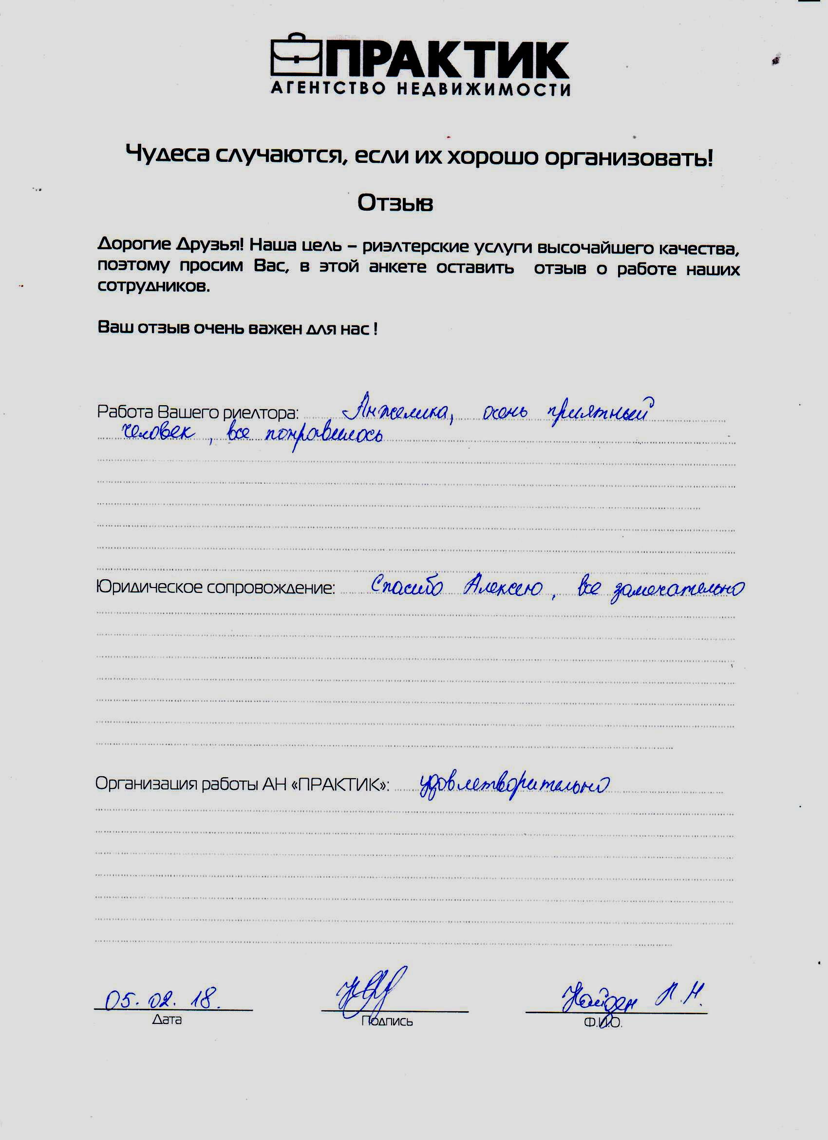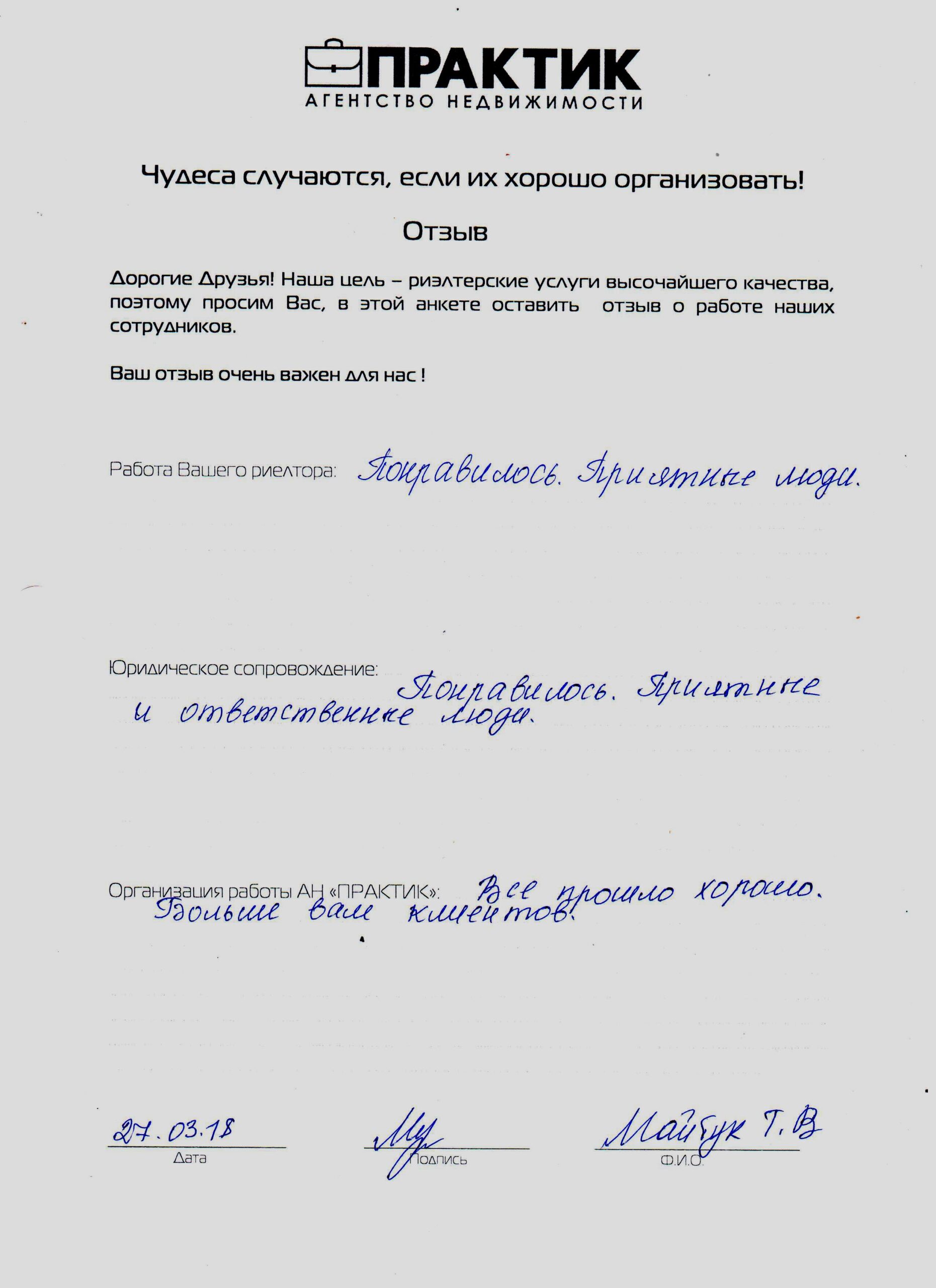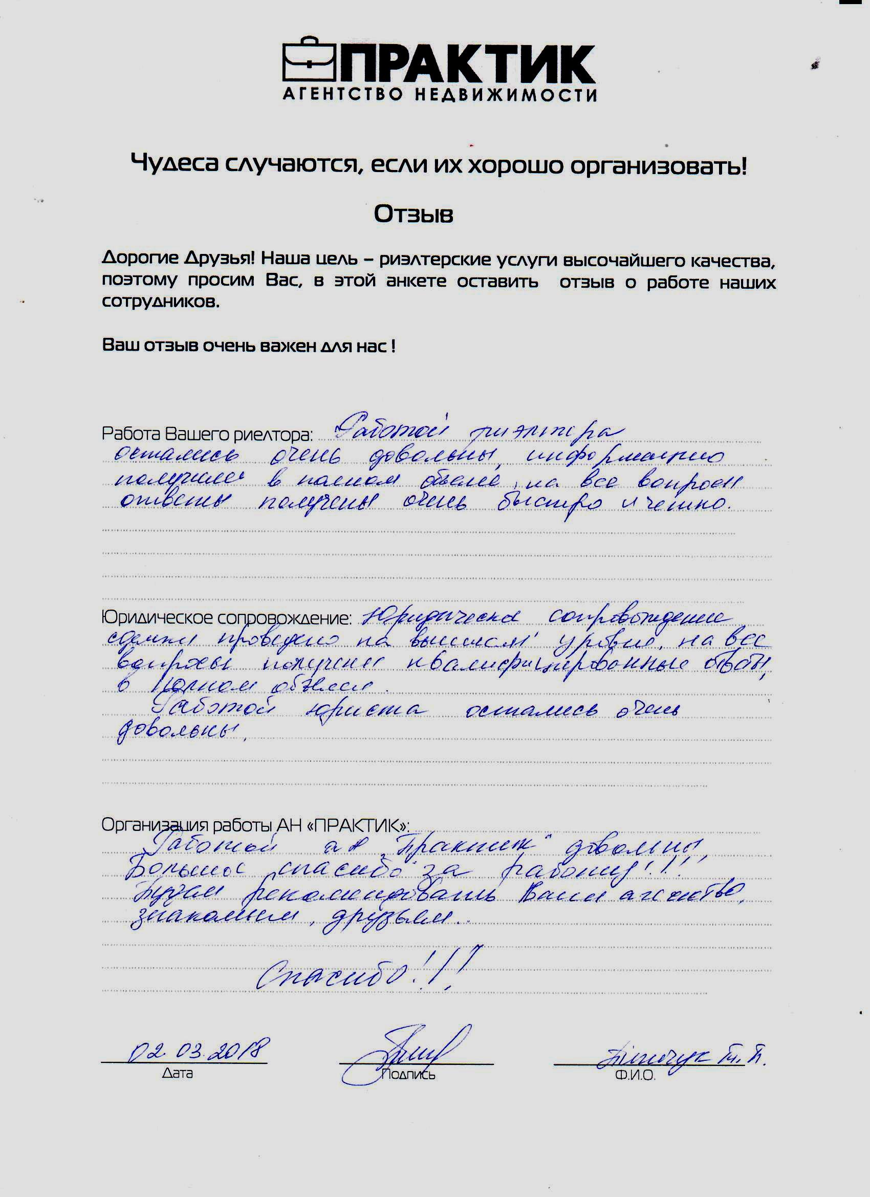 Відгук про роботу АН Практик від 02.03.18 Пинчук Т.П