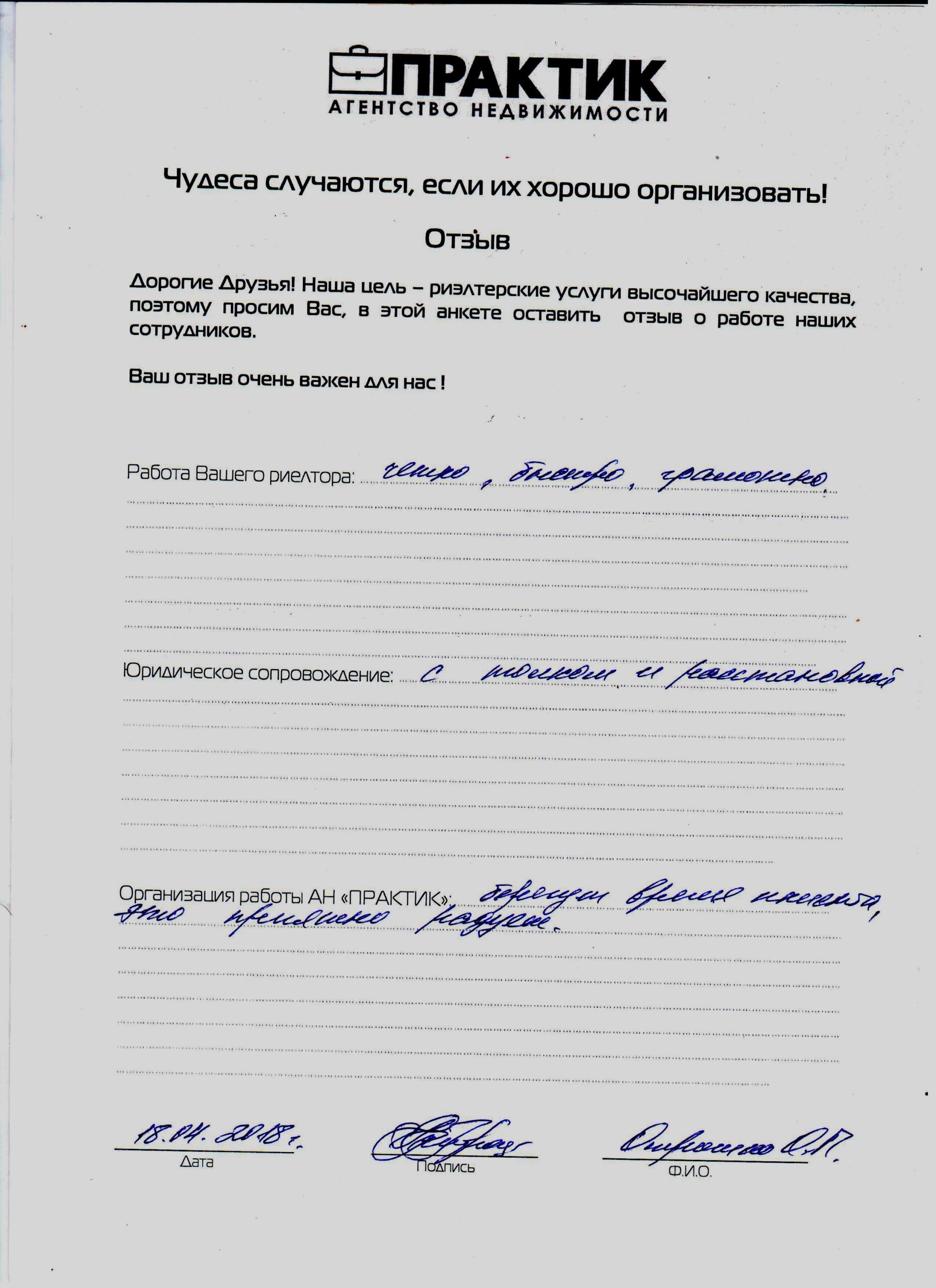 Відгук про роботу АН Практик від 18.04.18 Сетко О.В.