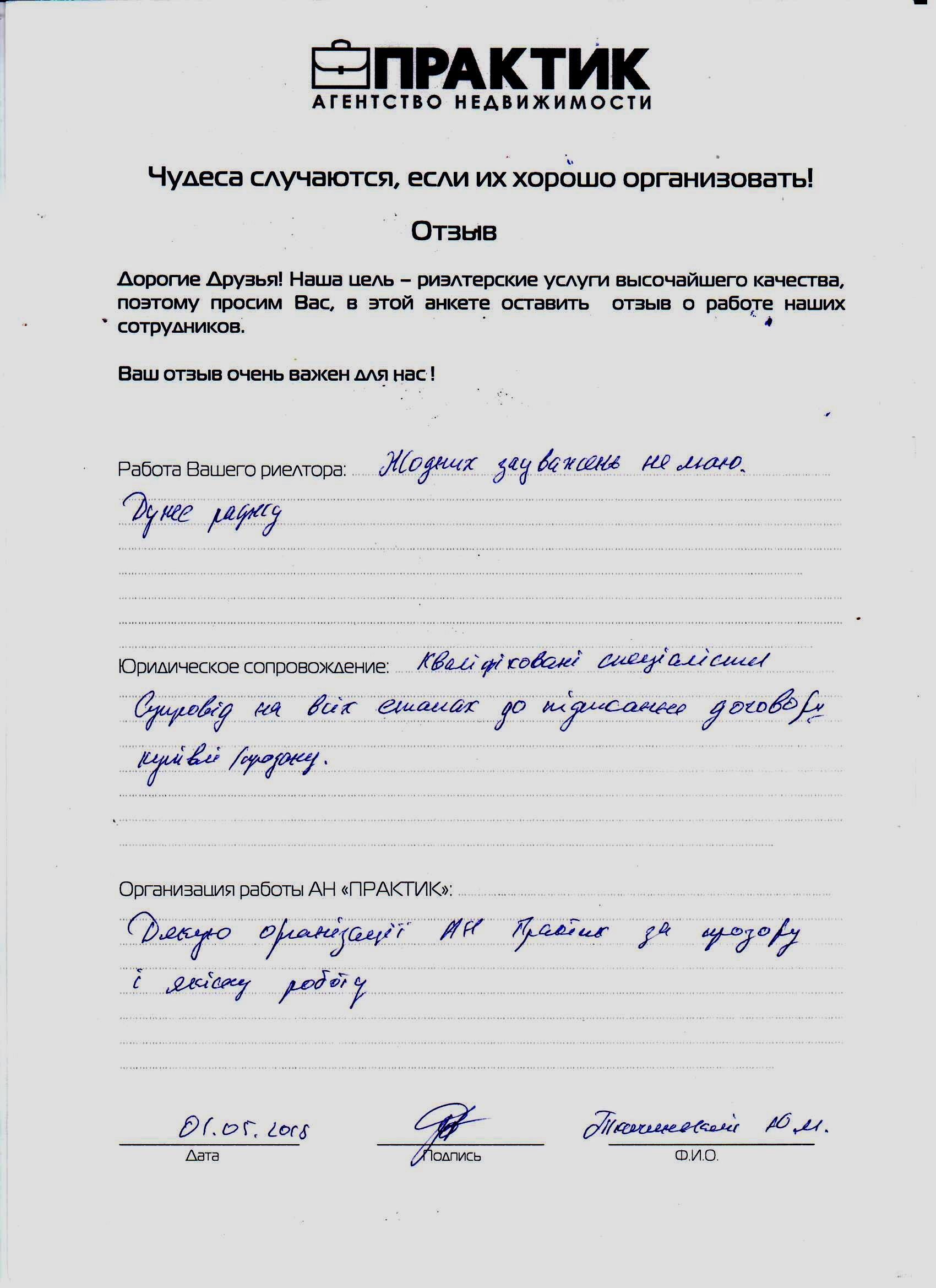 408Відгук про роботу АН Практик від 01.05.18 Ткачинский Ю.М.