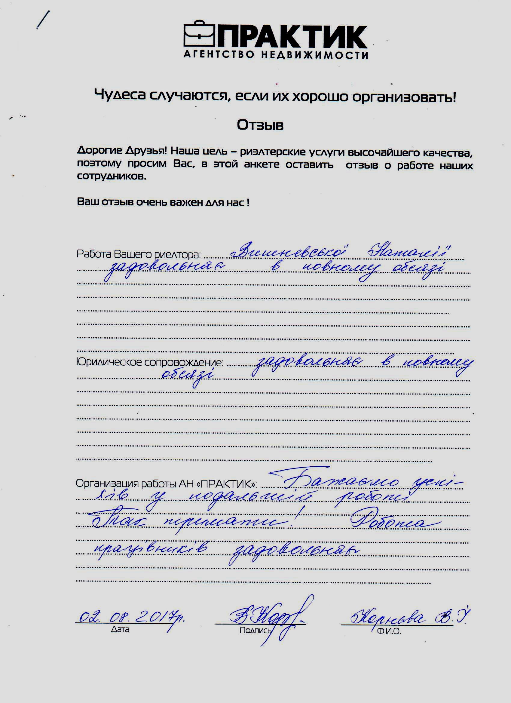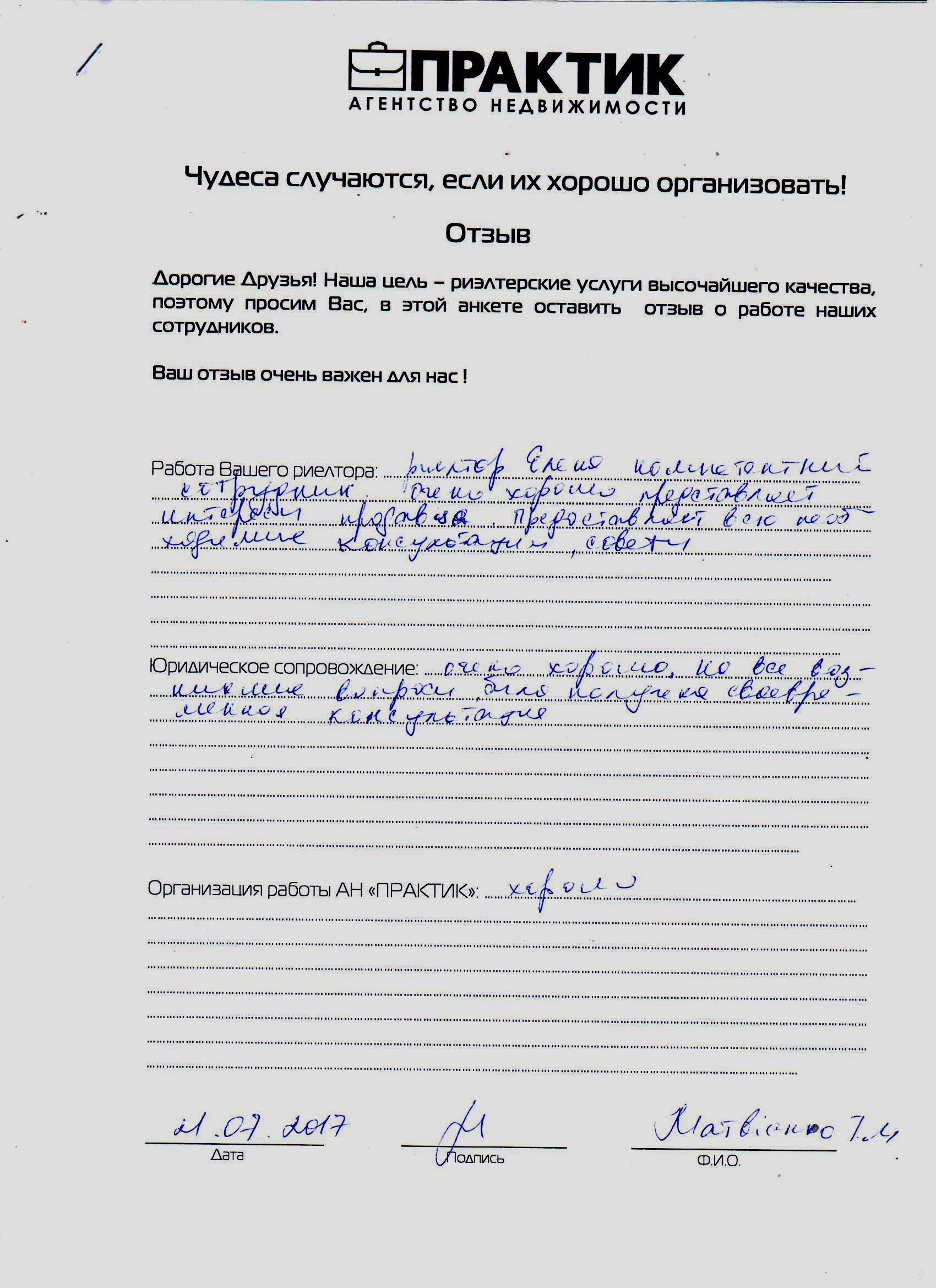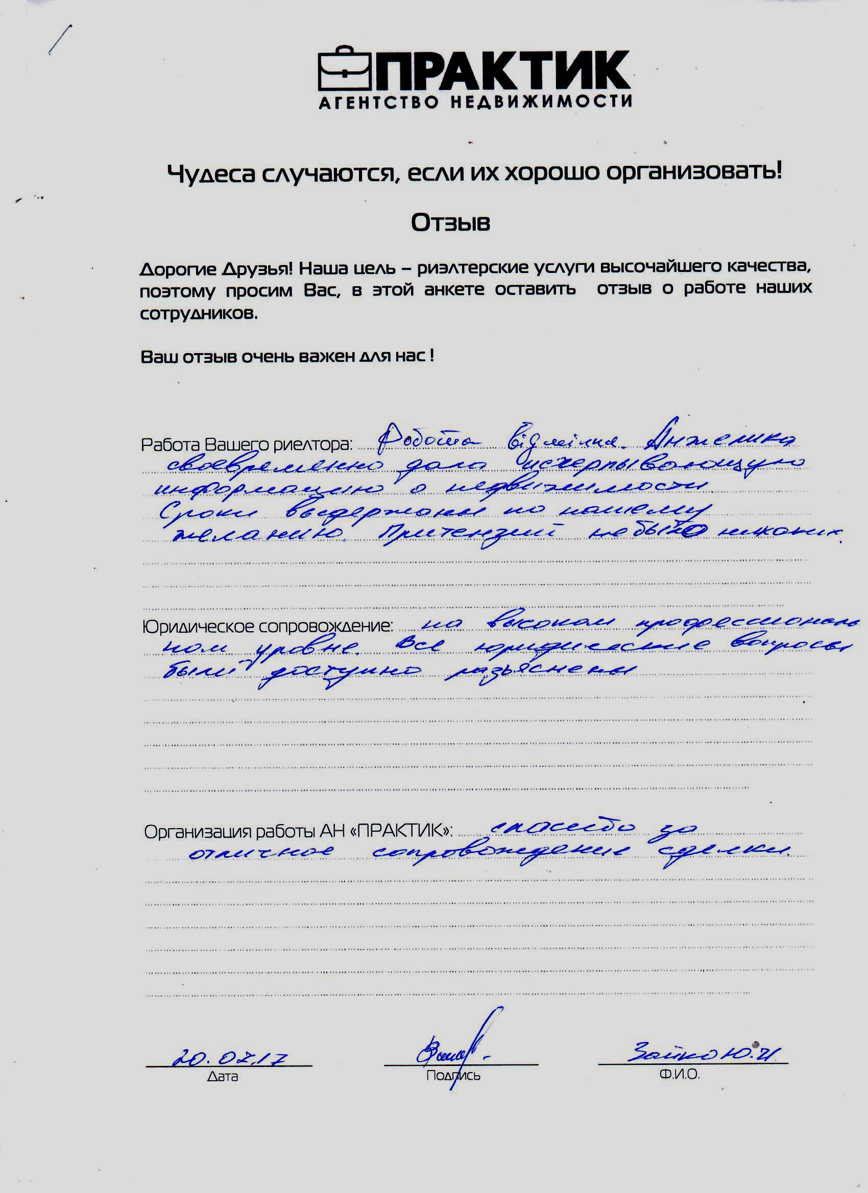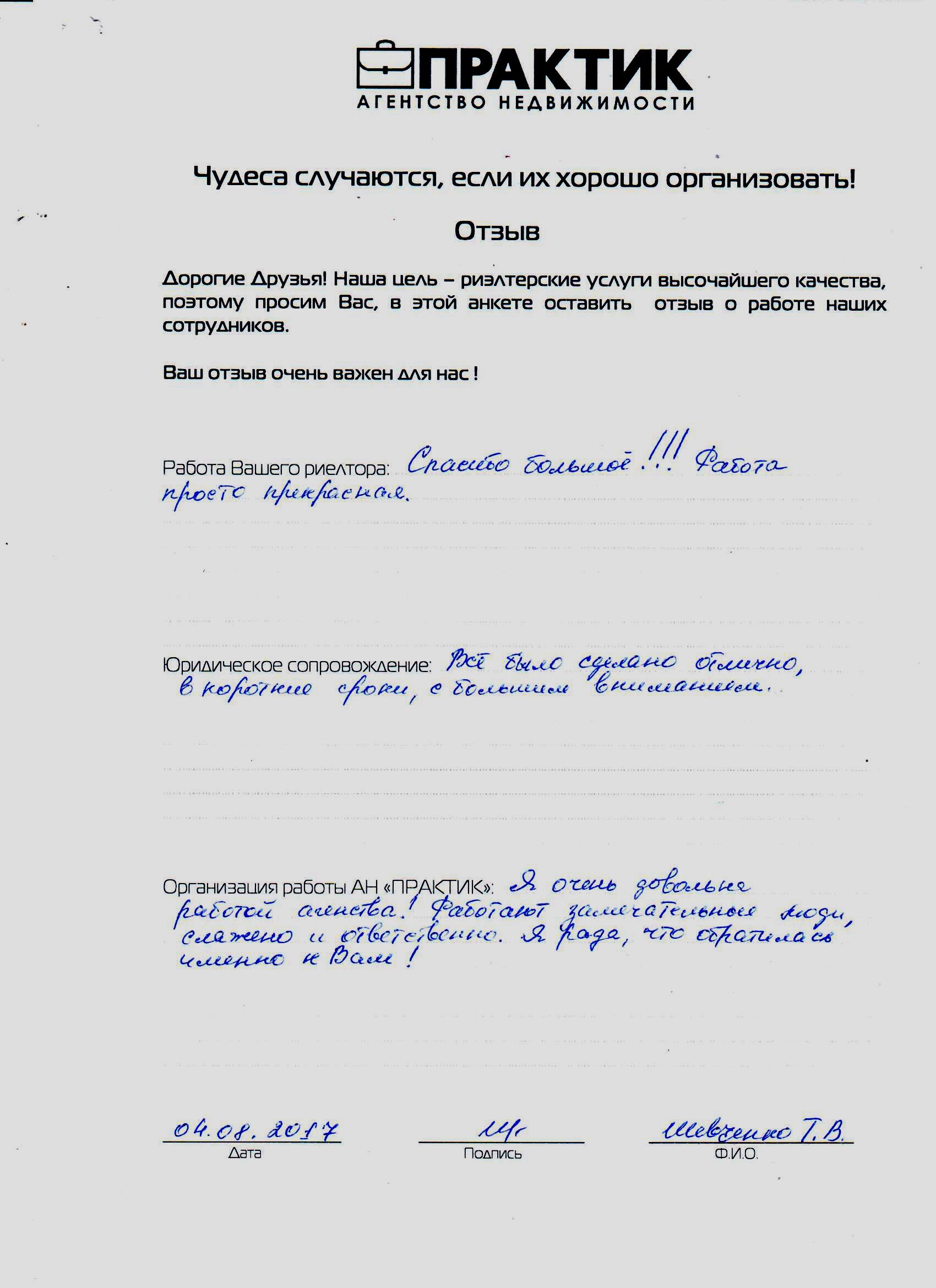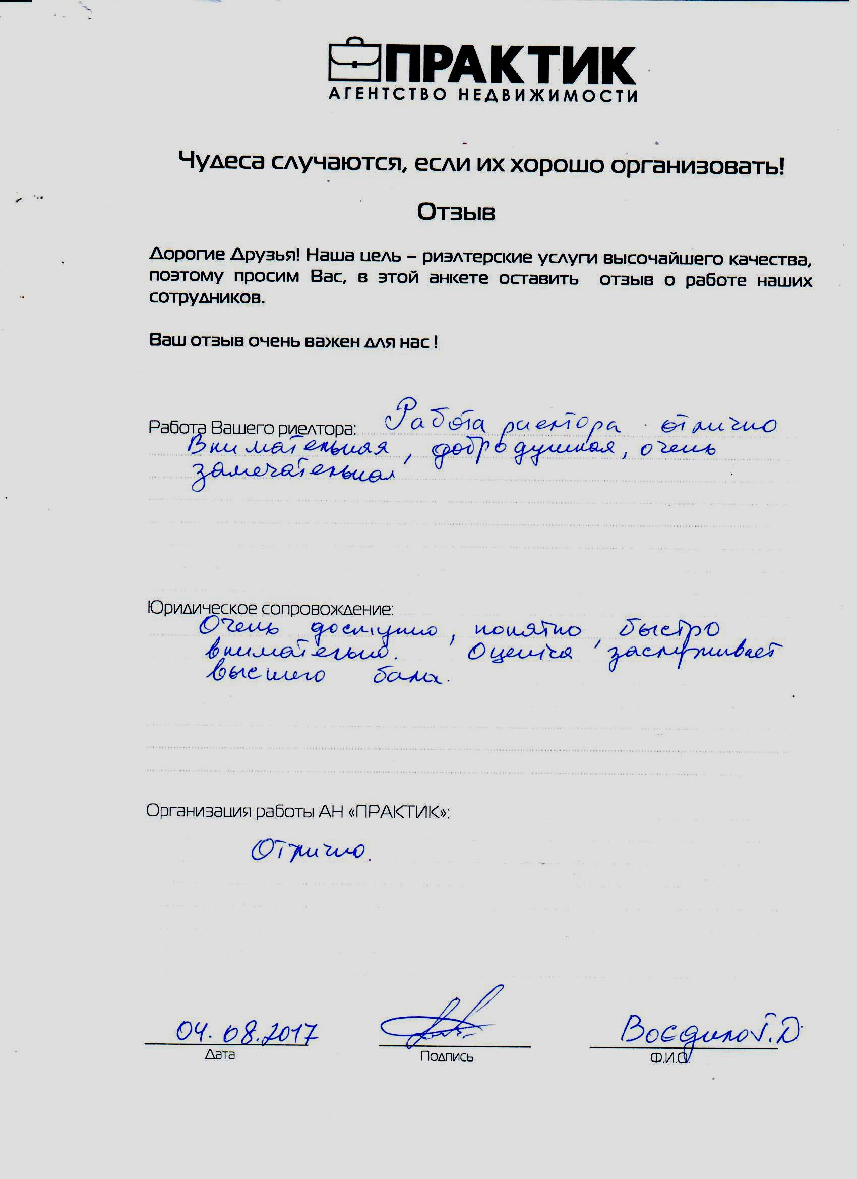 Відгук про роботу АН Практик від 04.08.2017 Воєдыло Г.Д.