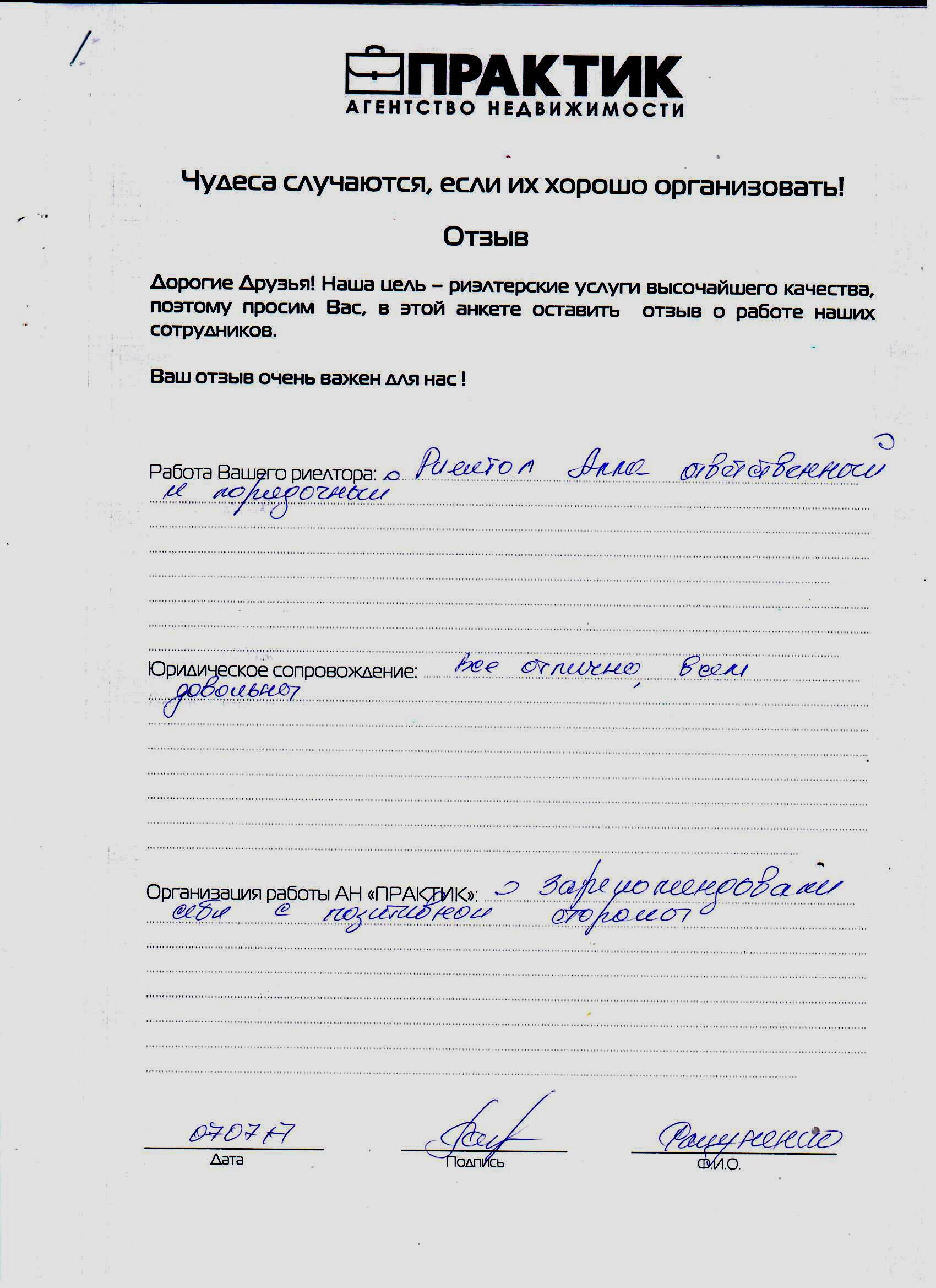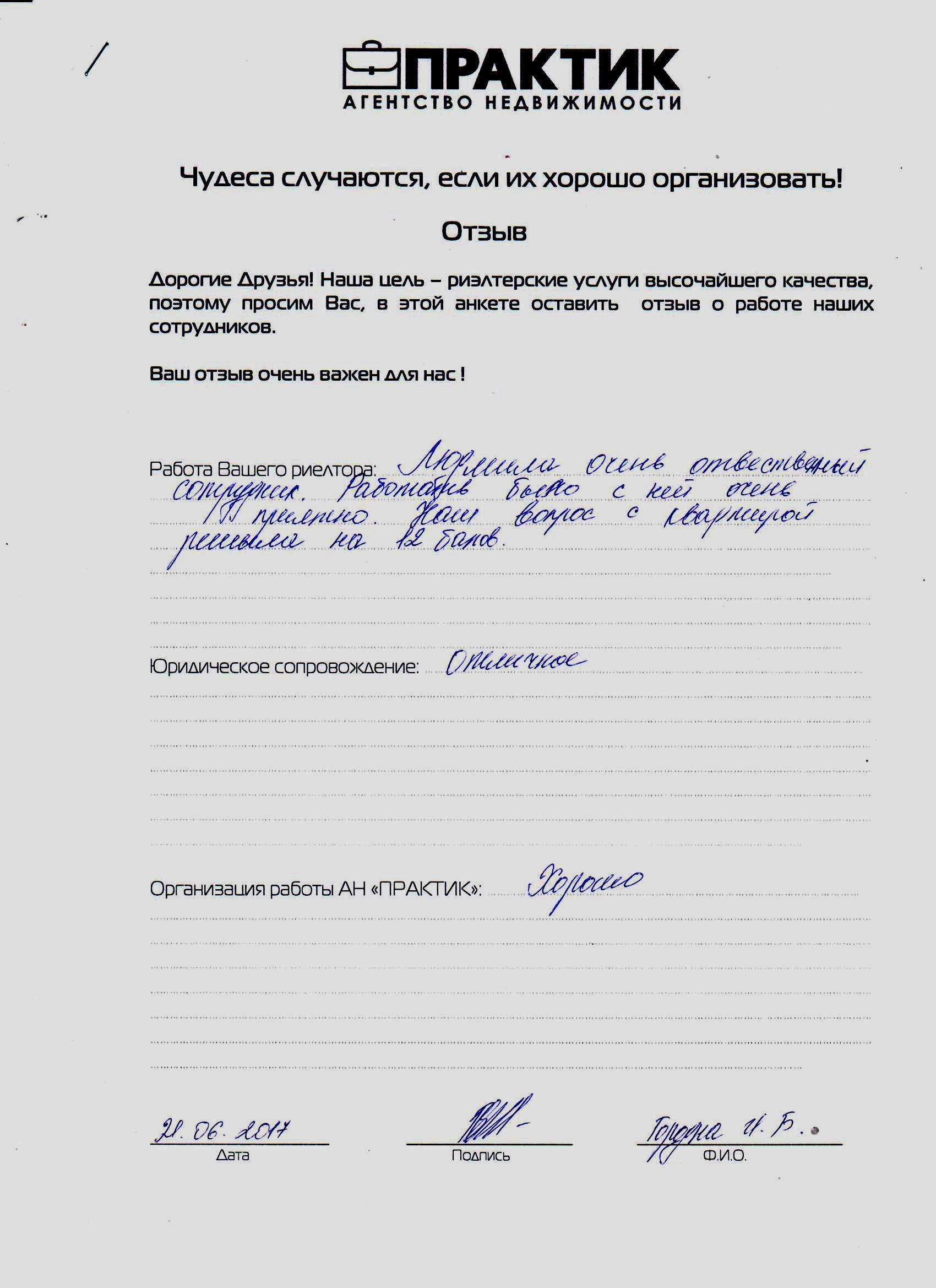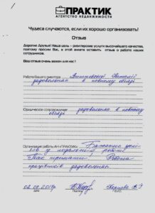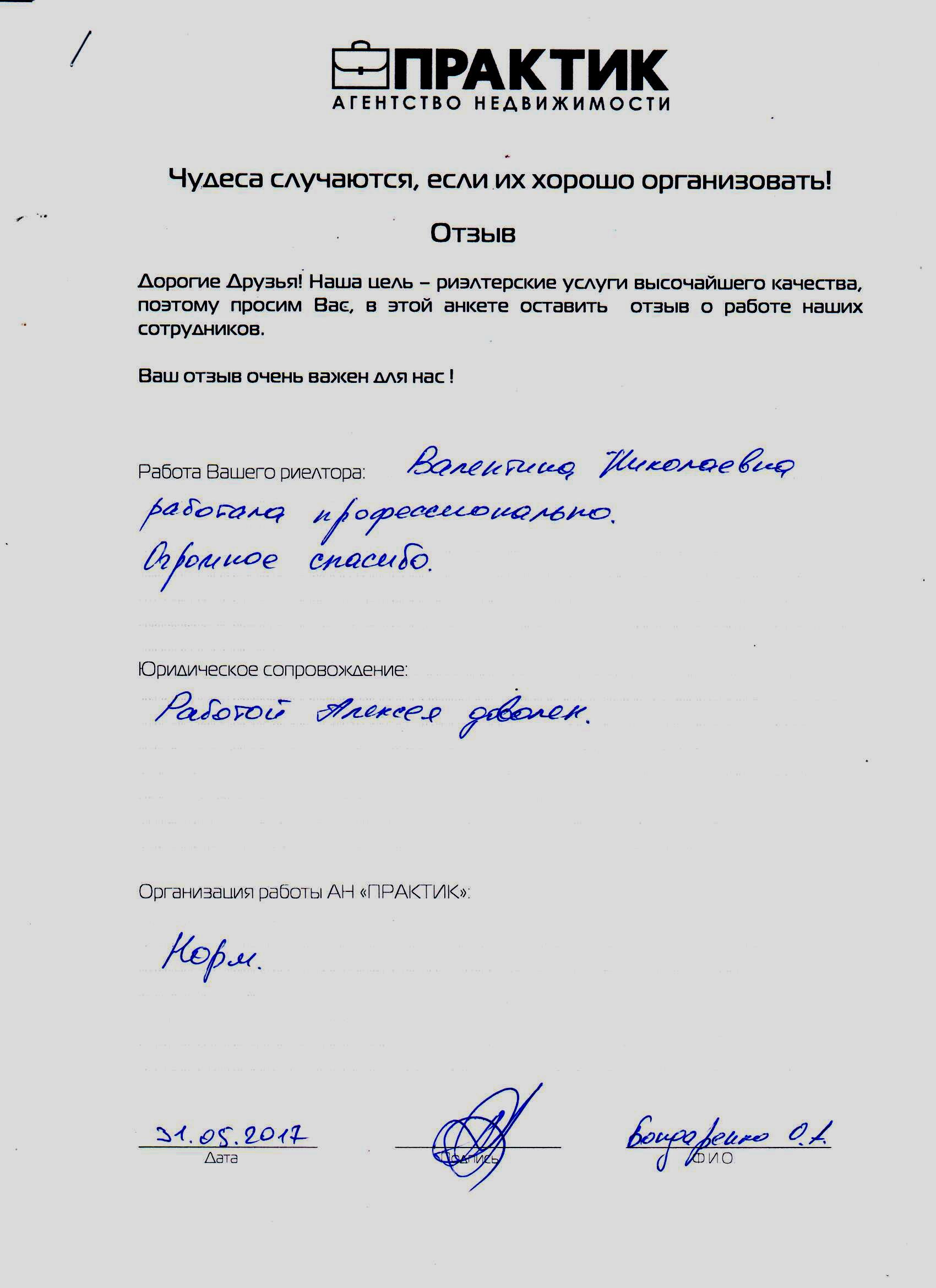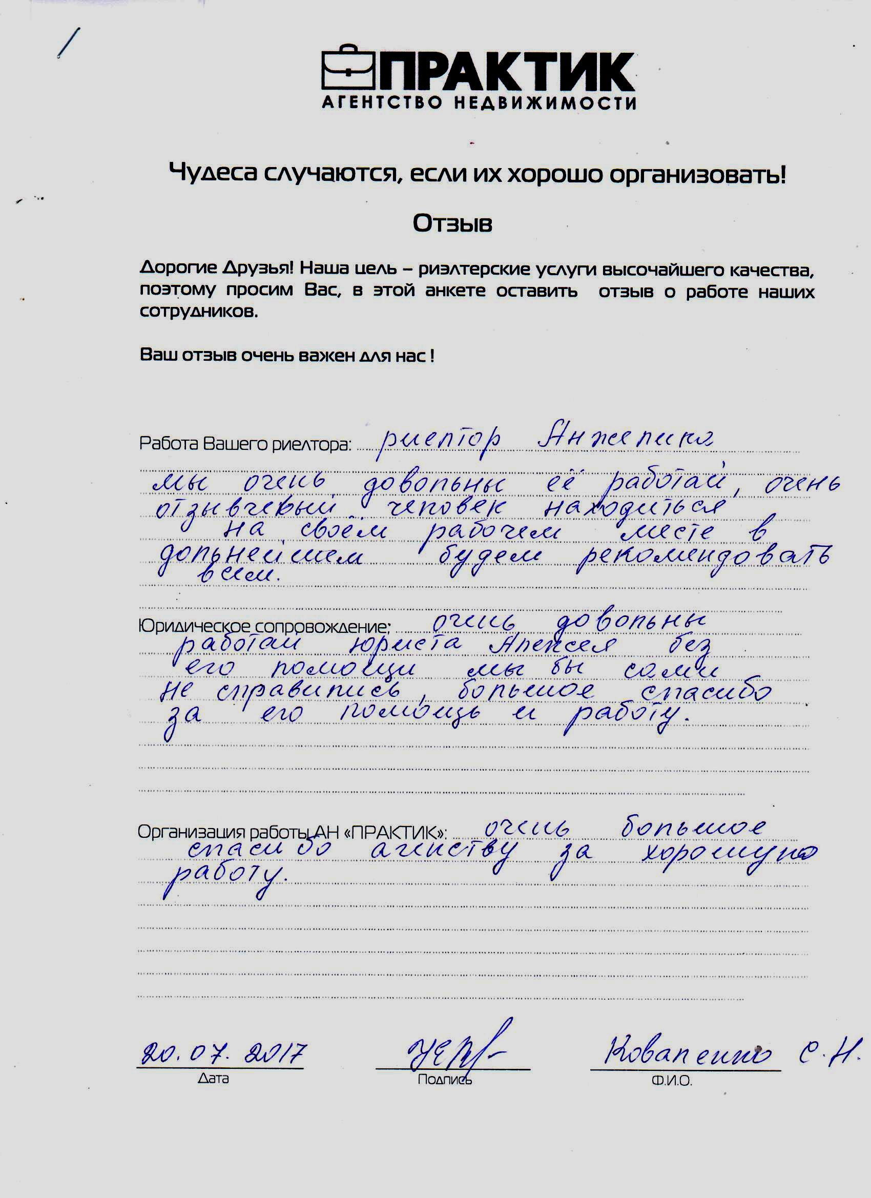 Відгук про роботу АН Практик від 04.08.2017 Воєдыло Г.Д.
