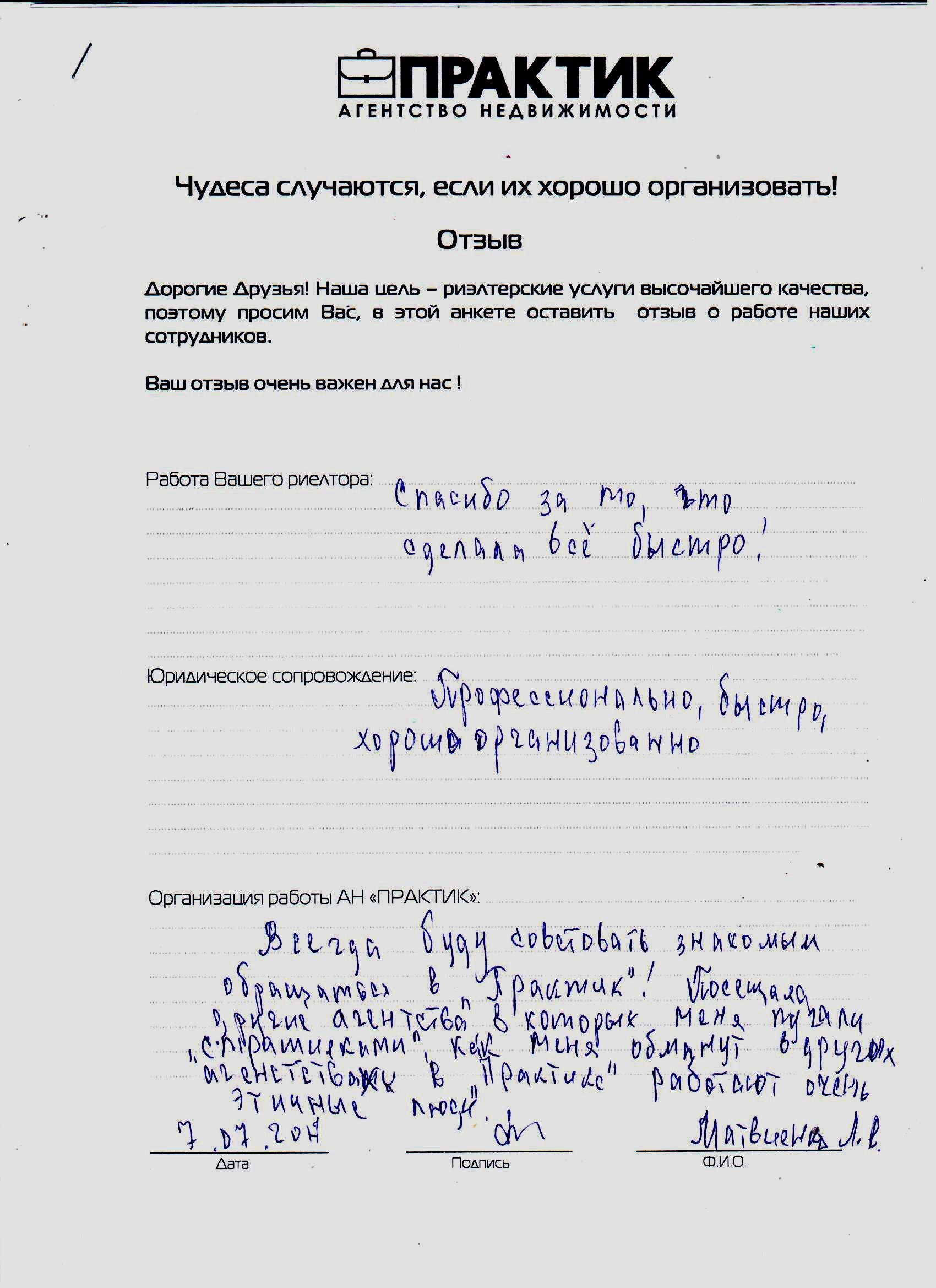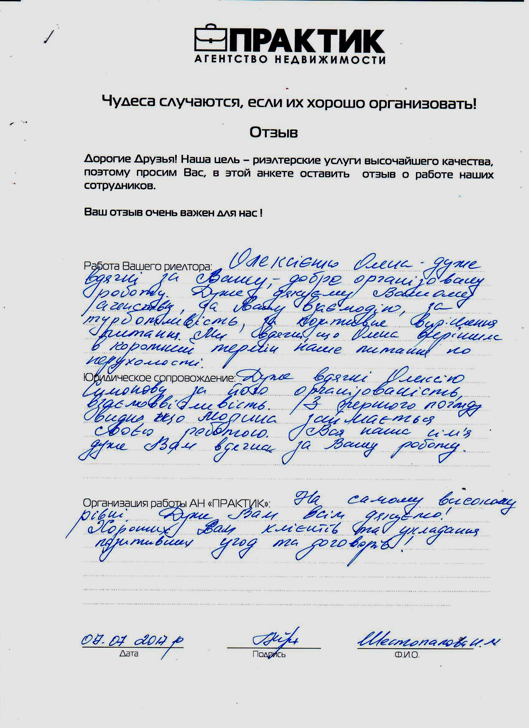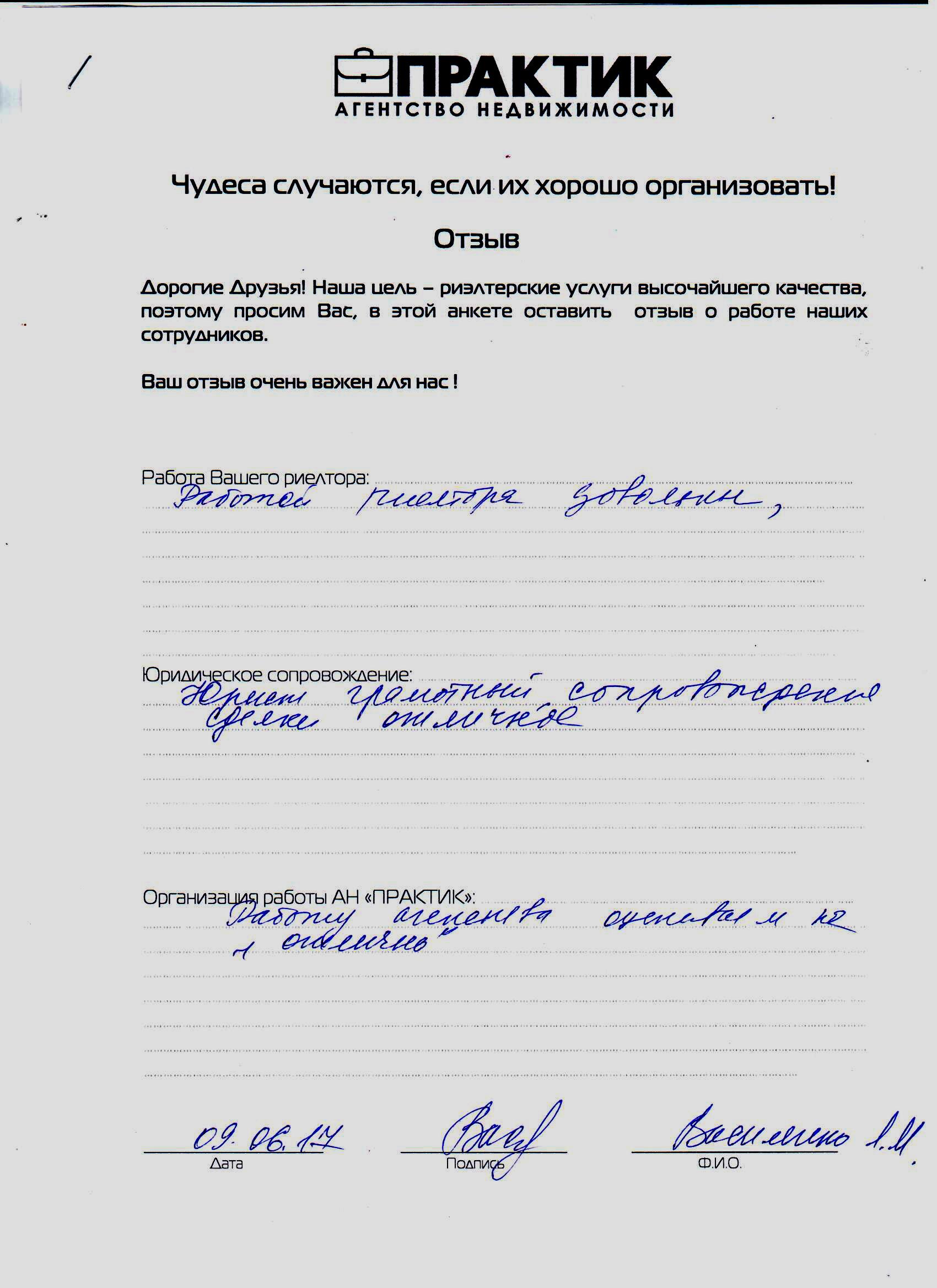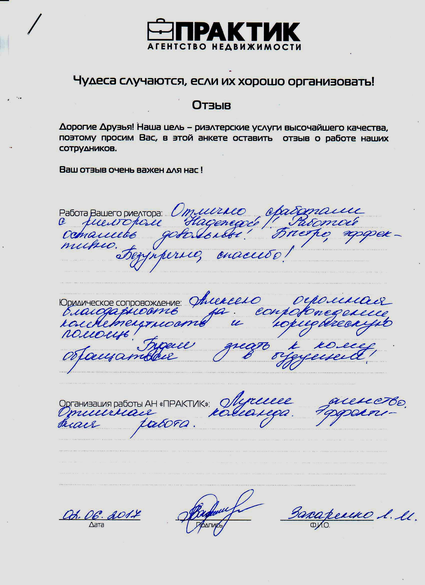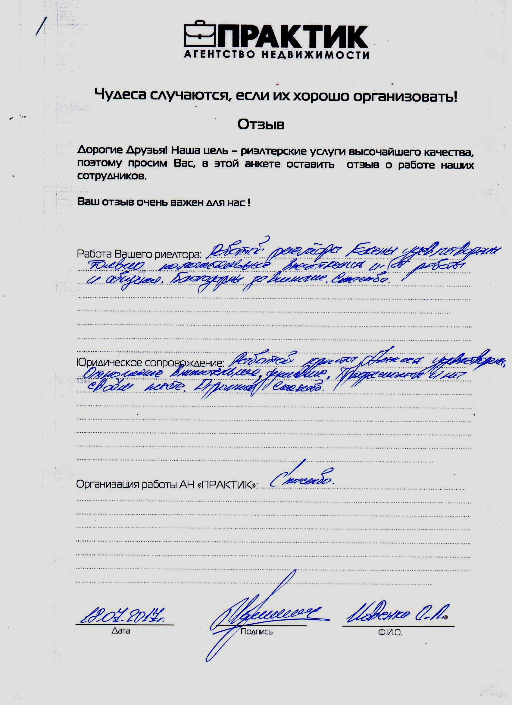 Відгук про роботу АН Практик від 04.08.2017 Воєдыло Г.Д.