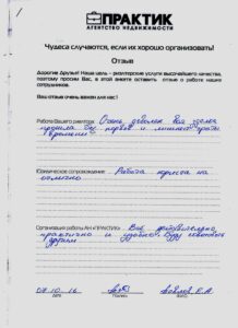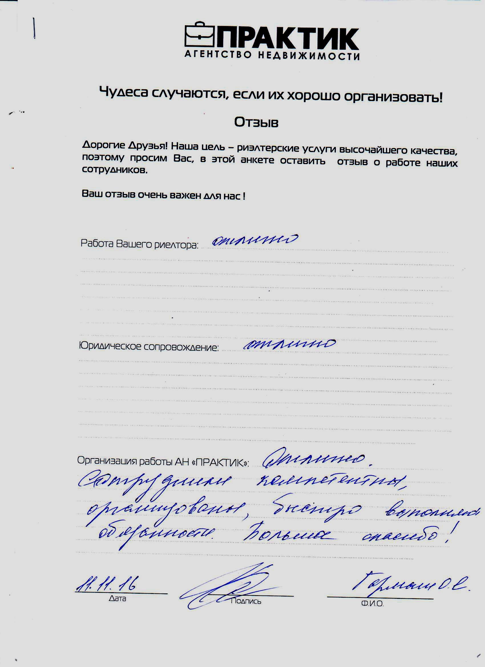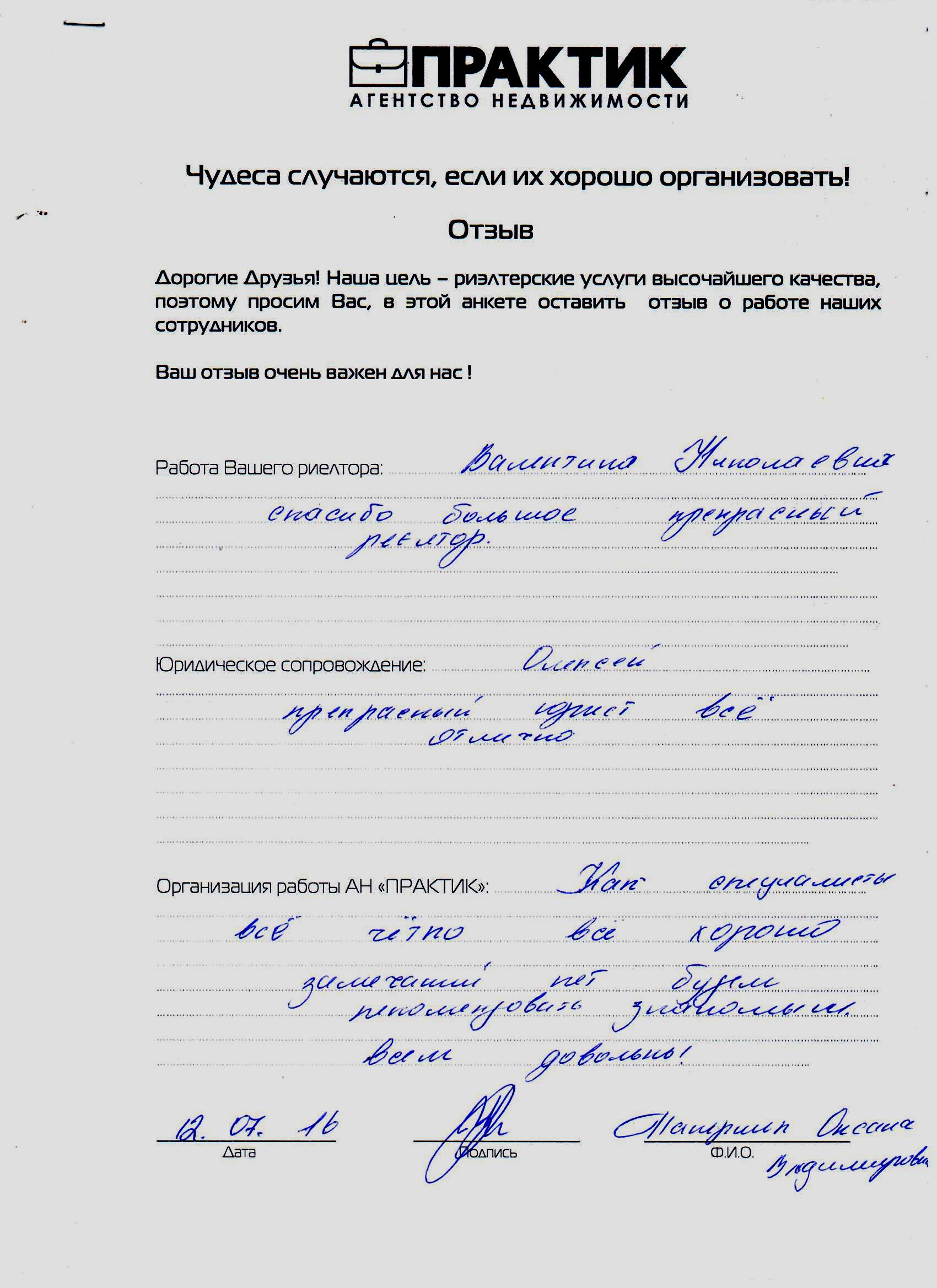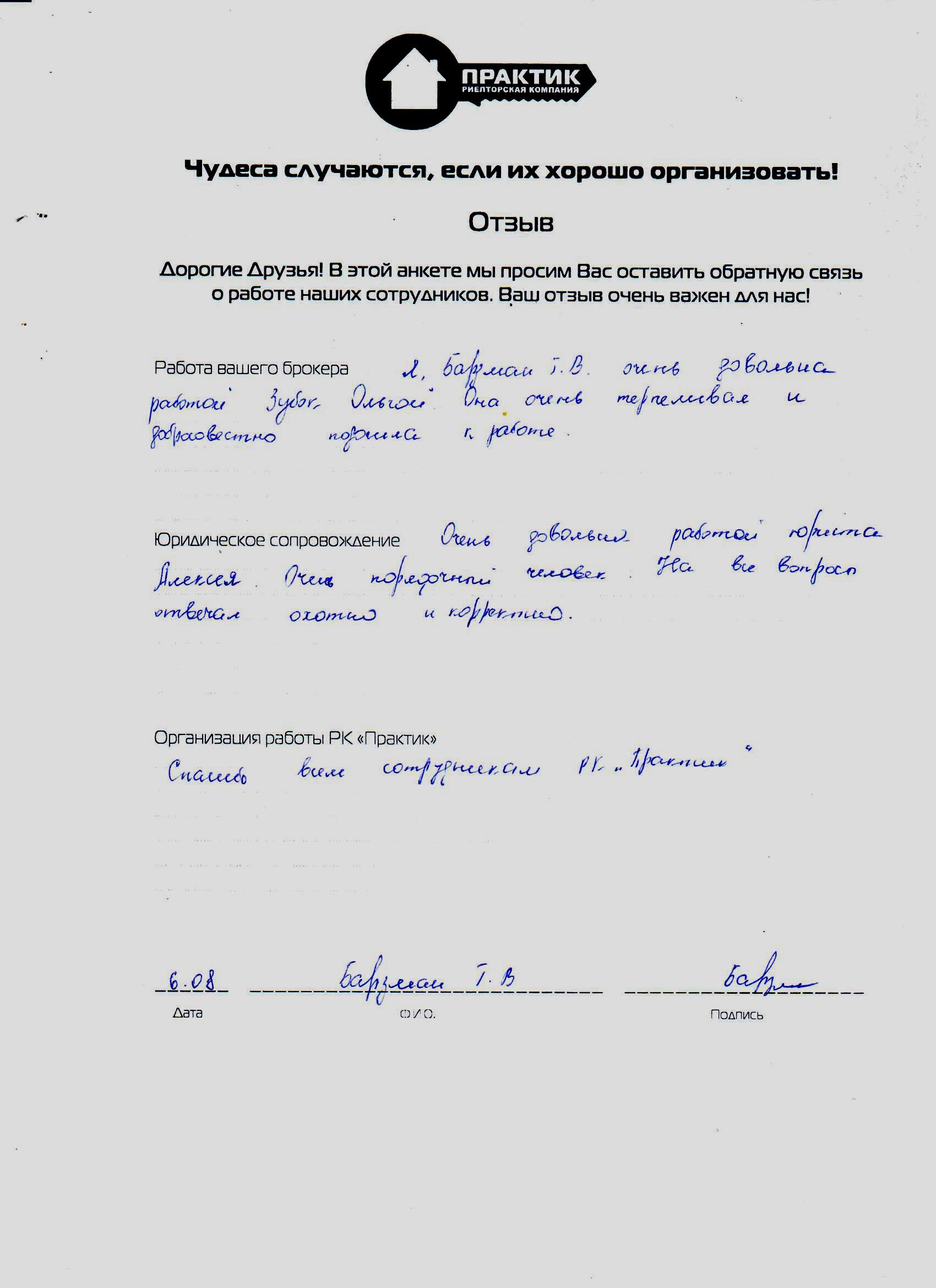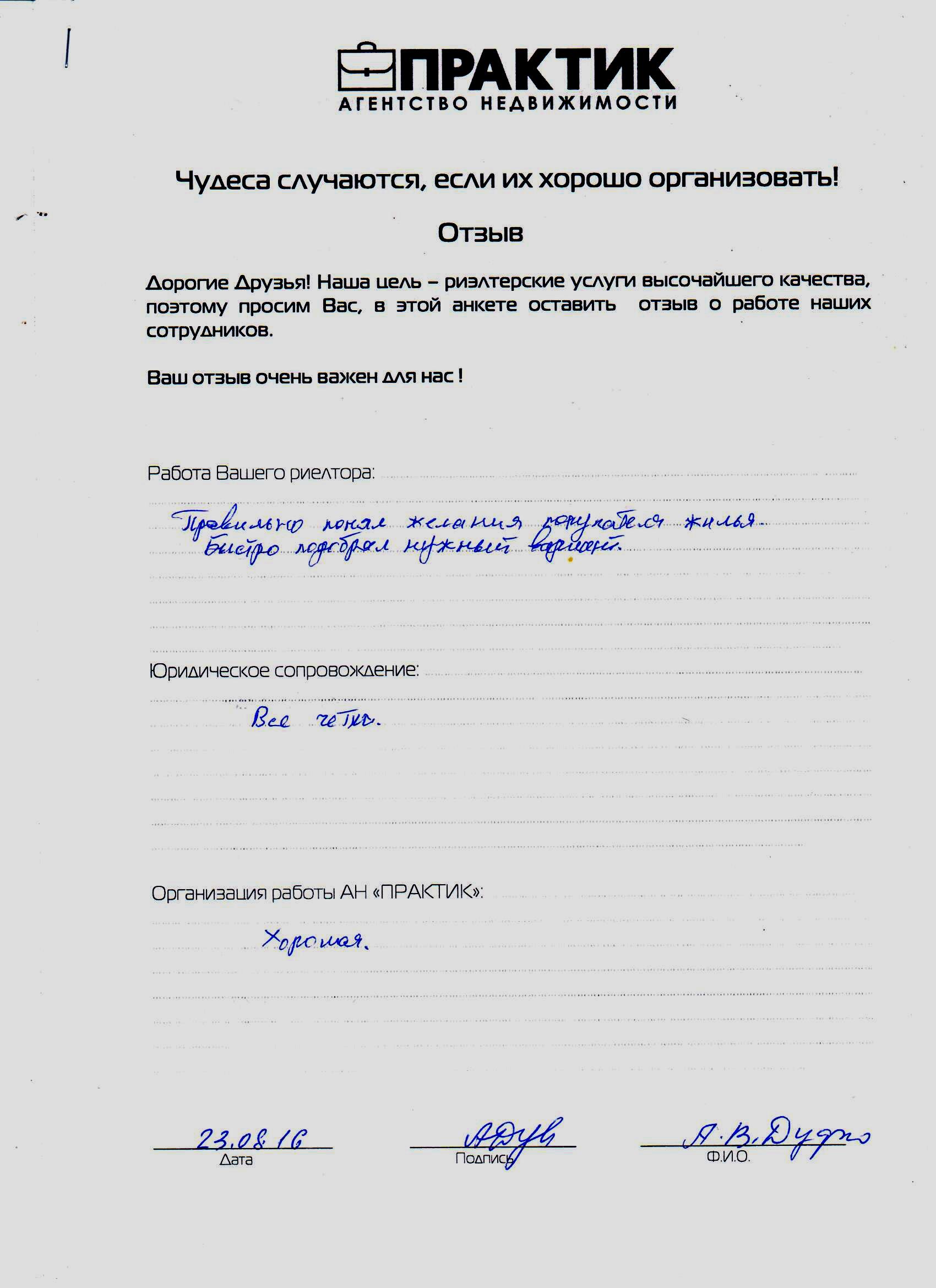 Відгук про роботу АН Практик від 06.08.2016 Барзман Т.В.