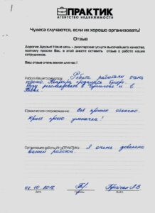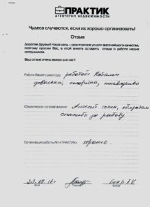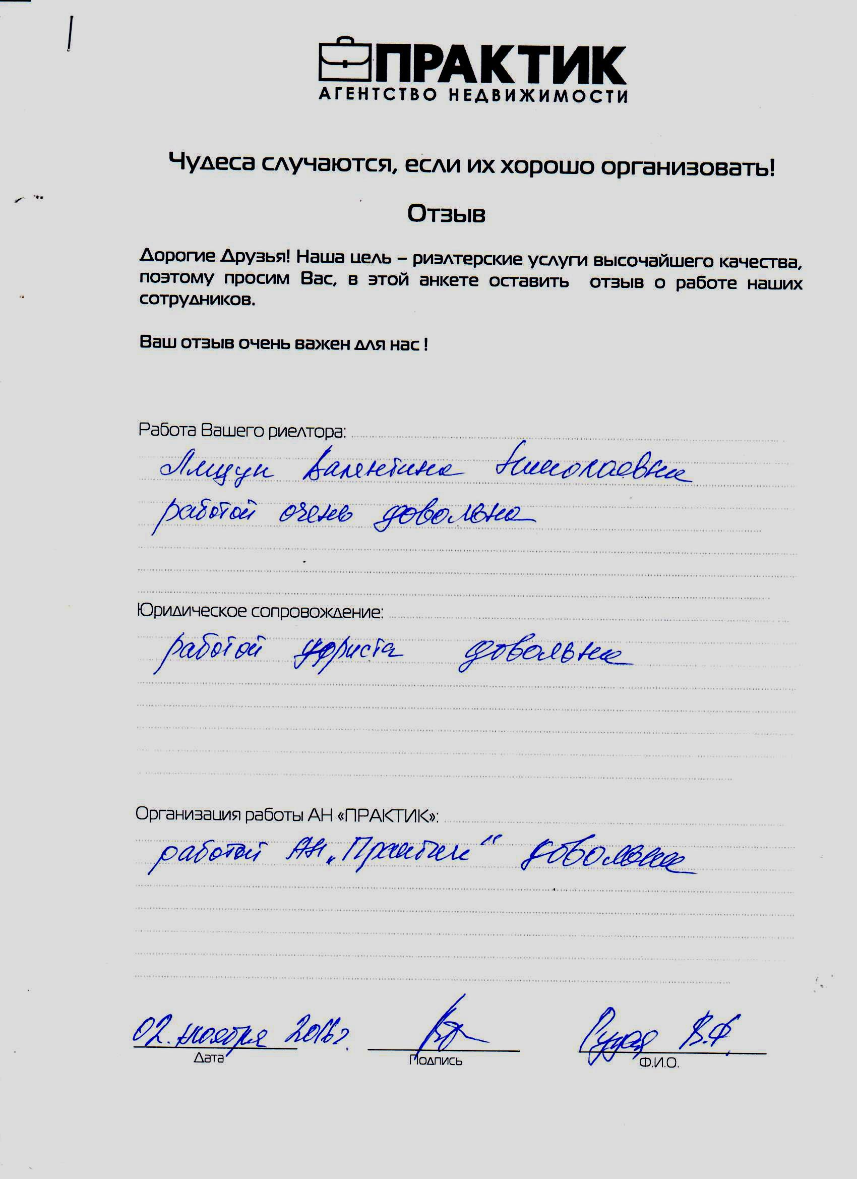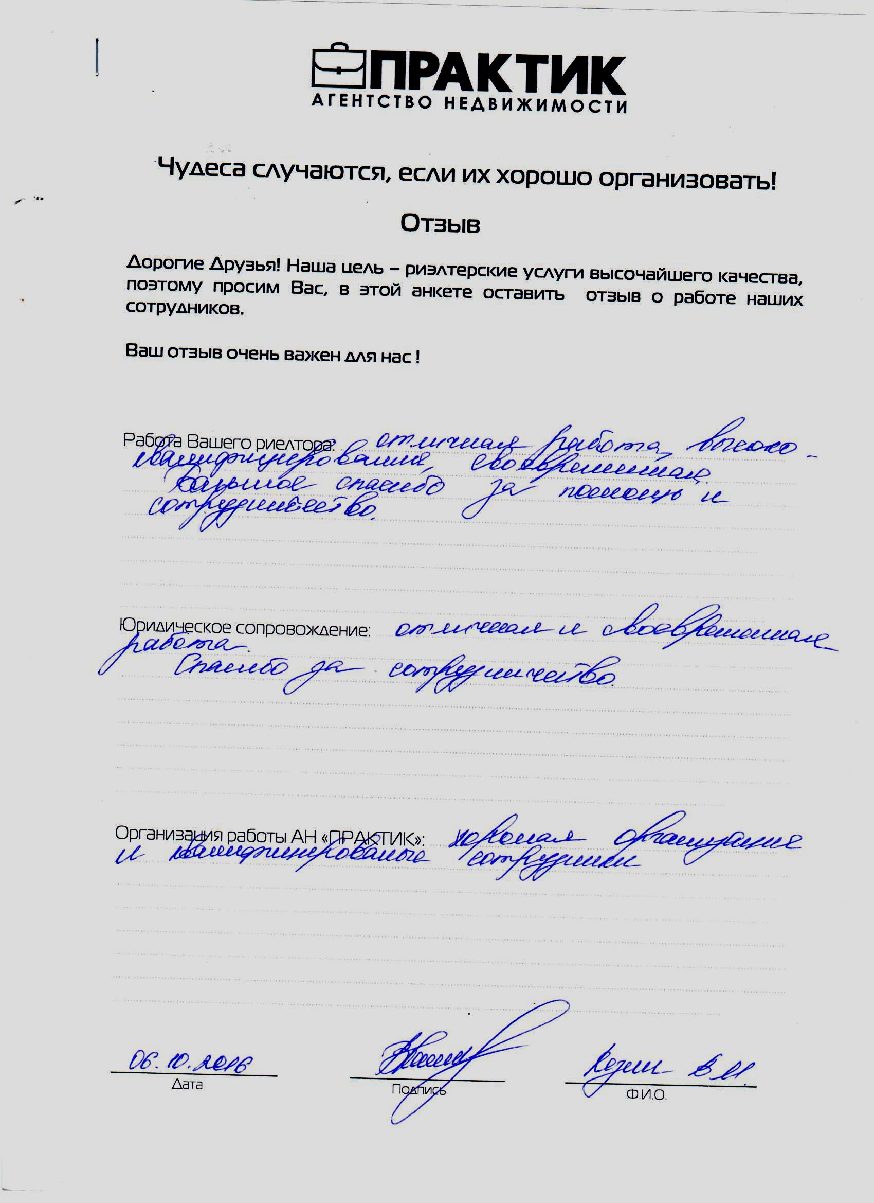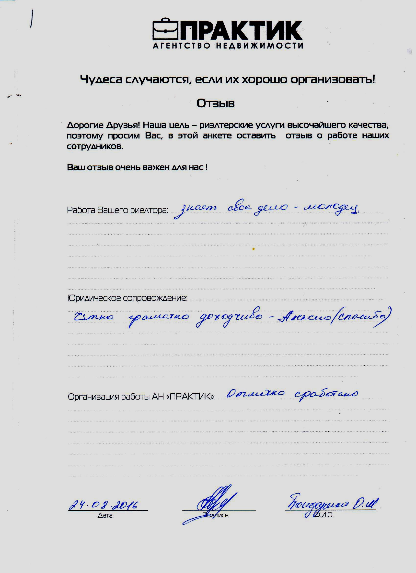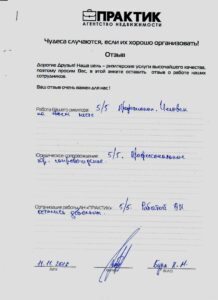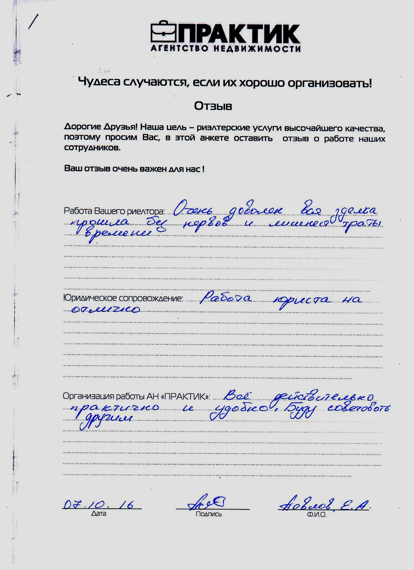 Відгук про роботу АН Практик від 06.08.2016 Барзман Т.В.