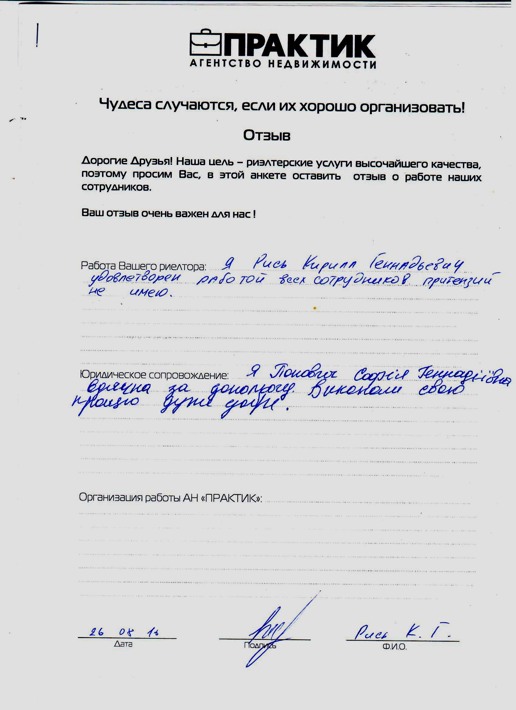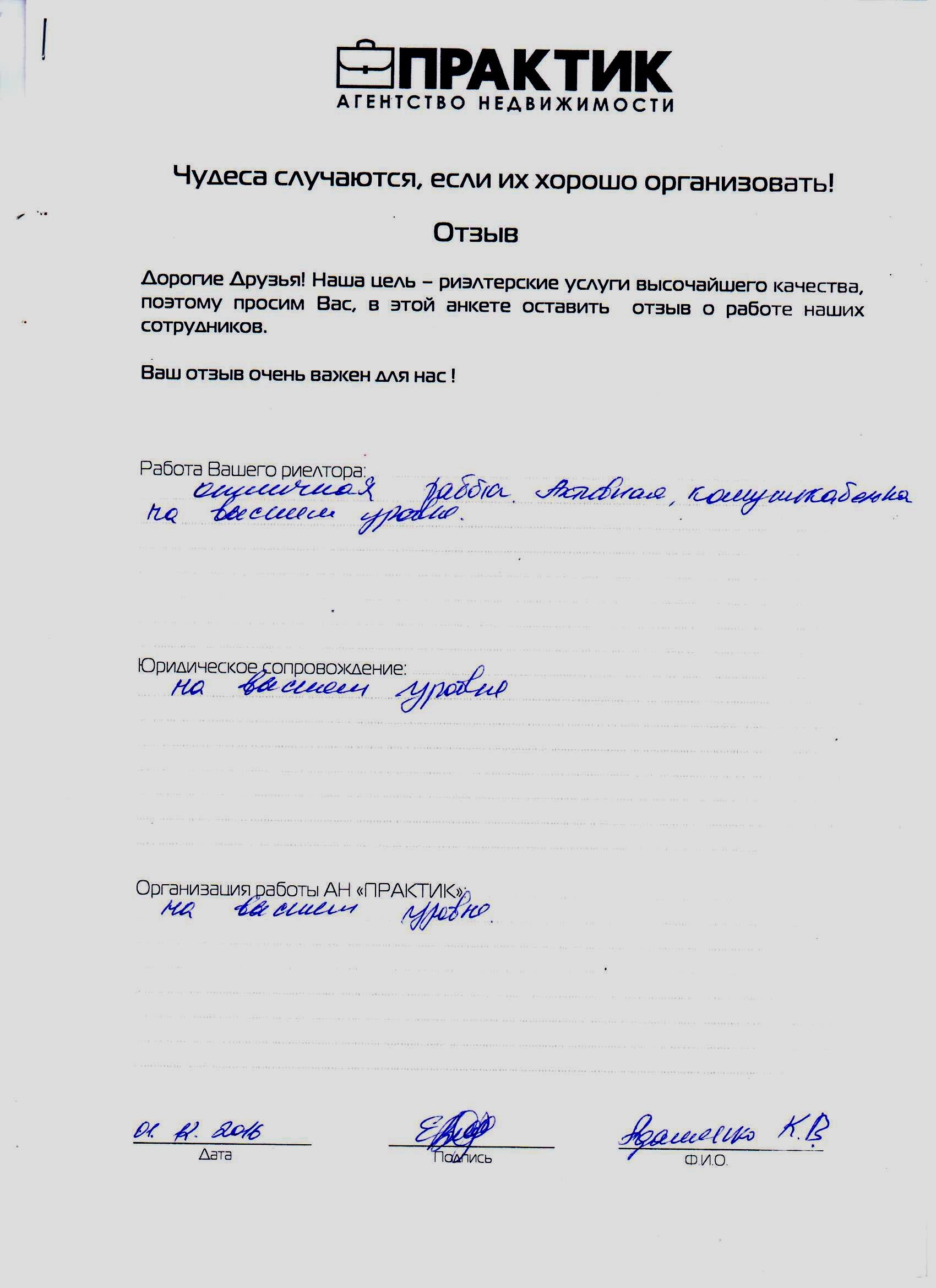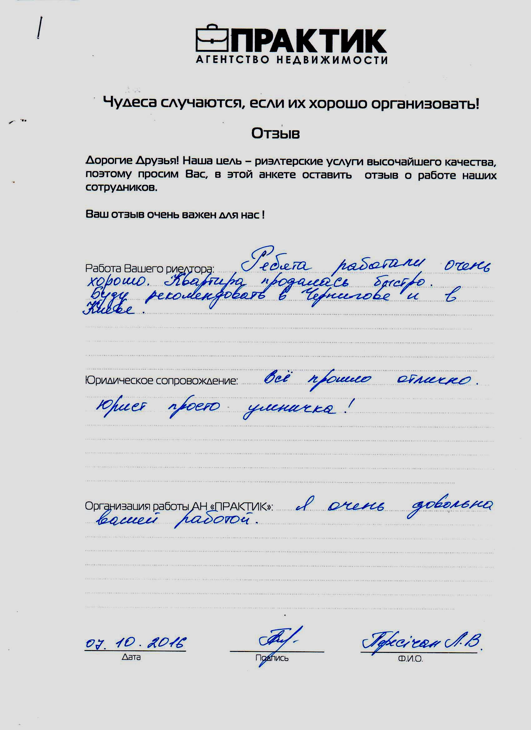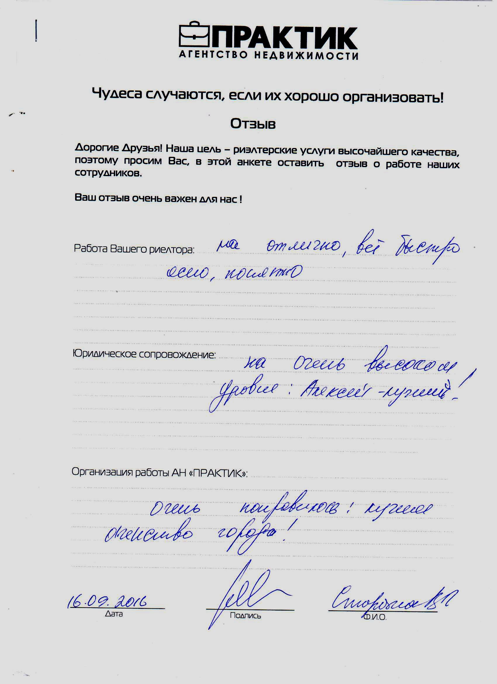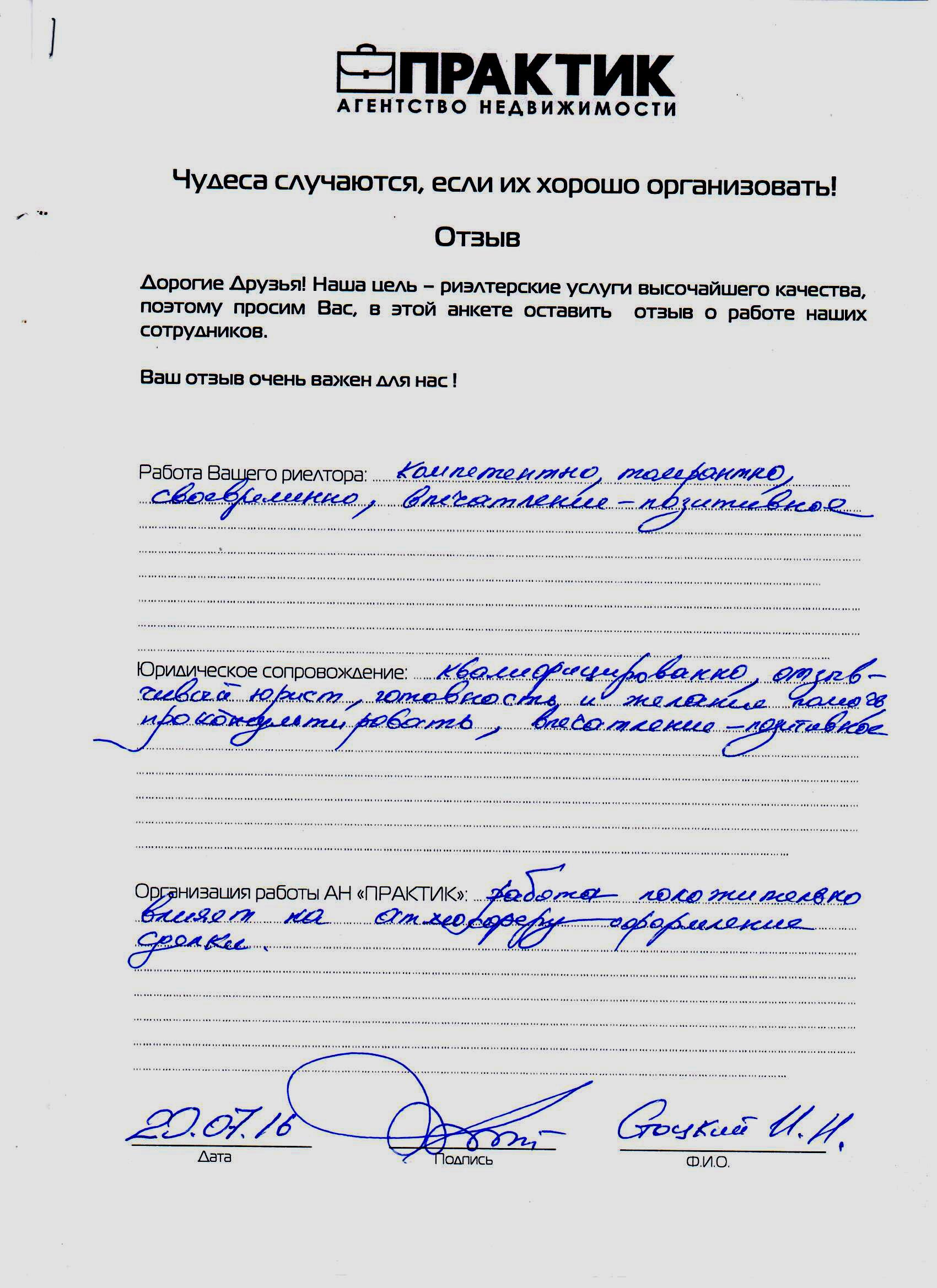 Відгук про роботу АН Практик від 20.07.2016 Стоцкий И.Н.