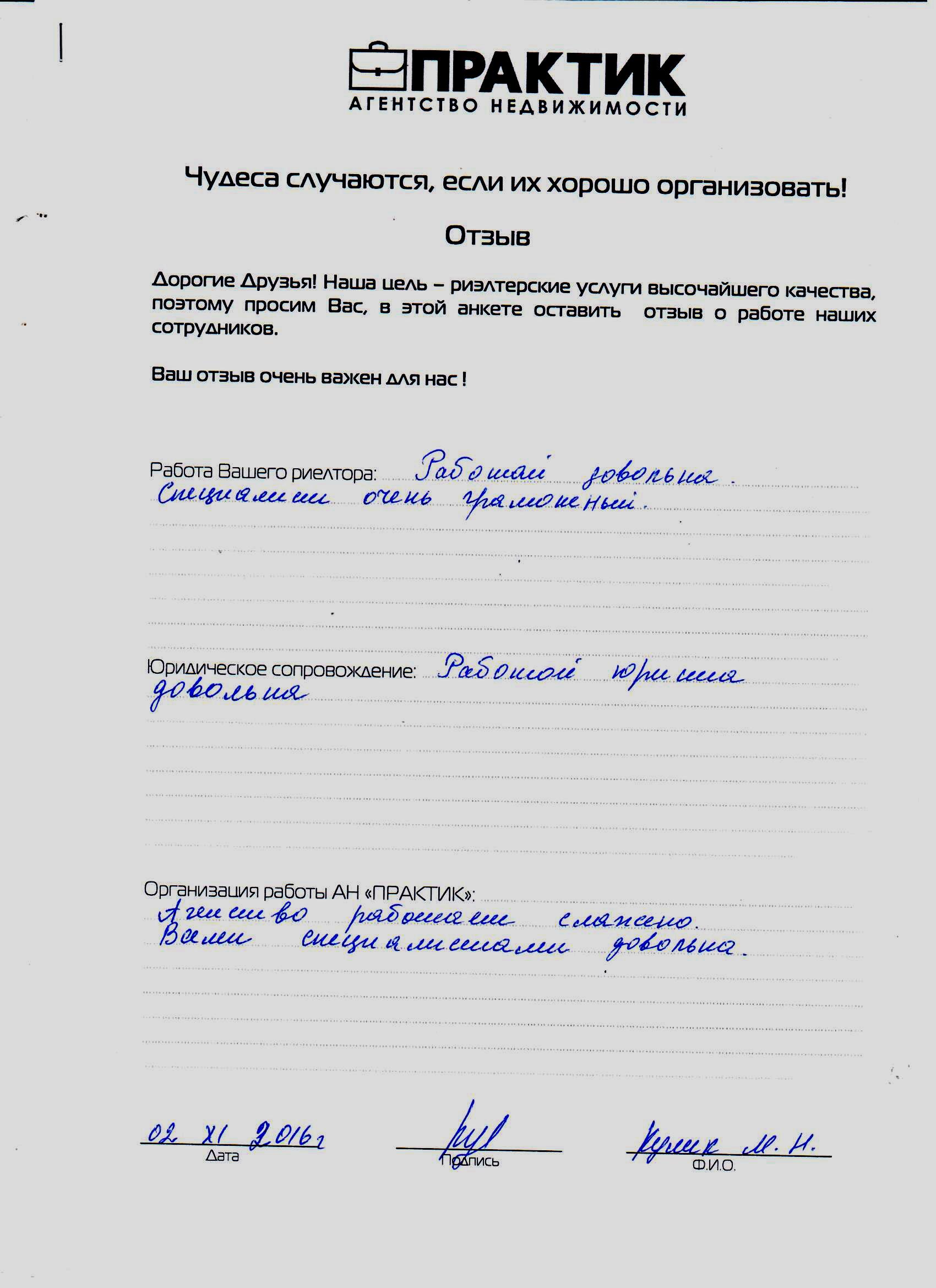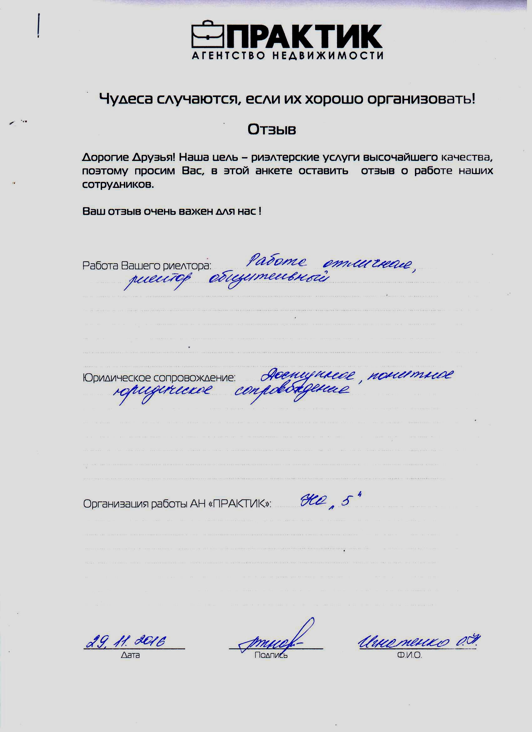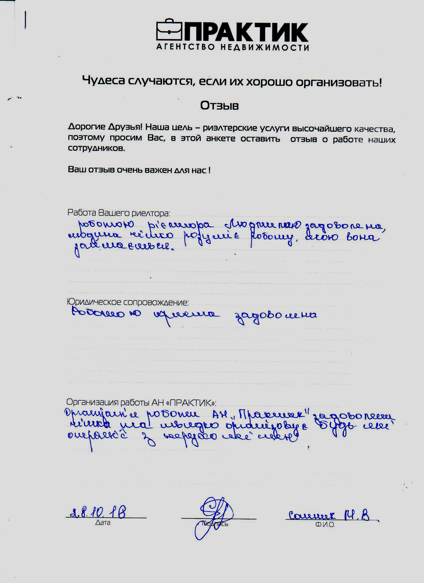 Відгук про роботу АН Практик від 02.11.2016 Кулик М.М.