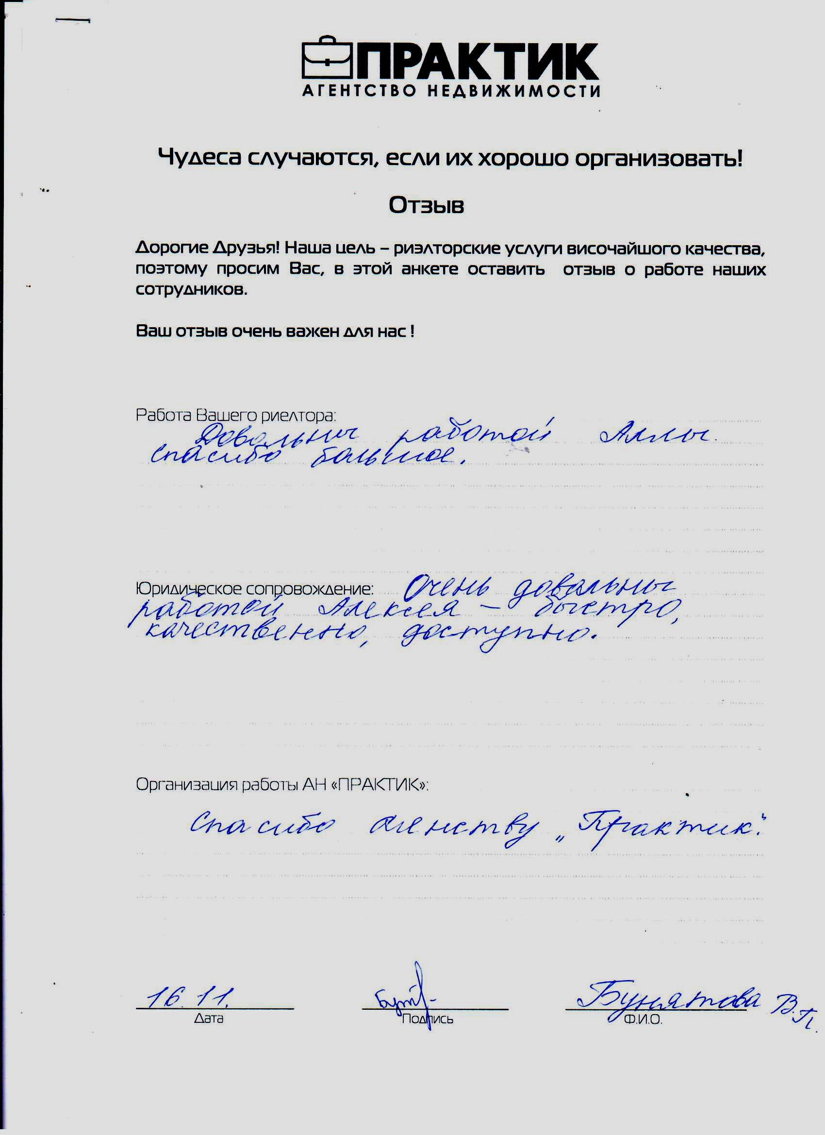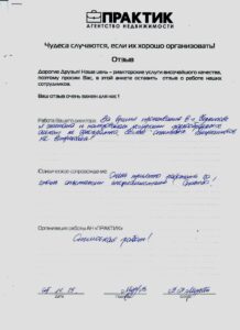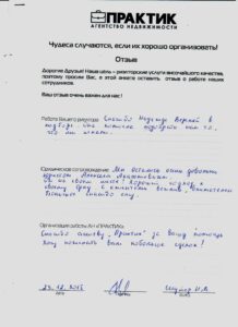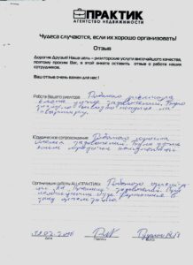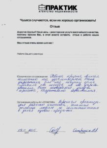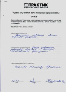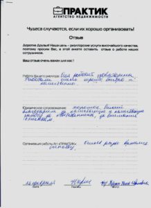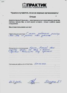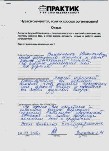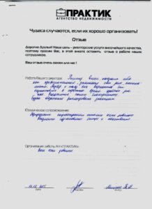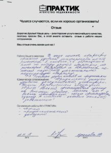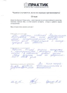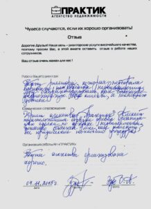 Спасибо агенству "Практик"за вашу помощь. Хочу пожелать вам побольше сделок!