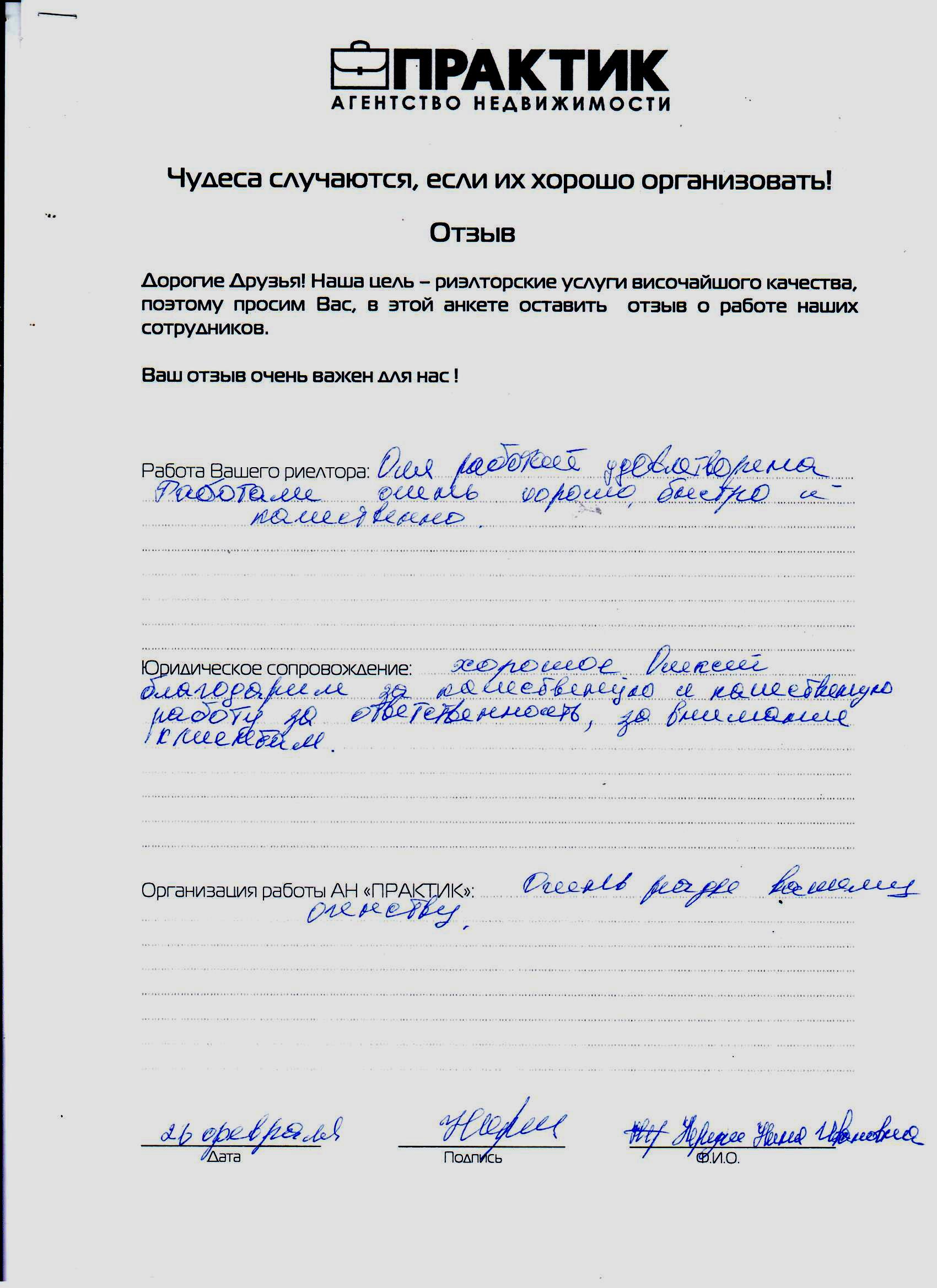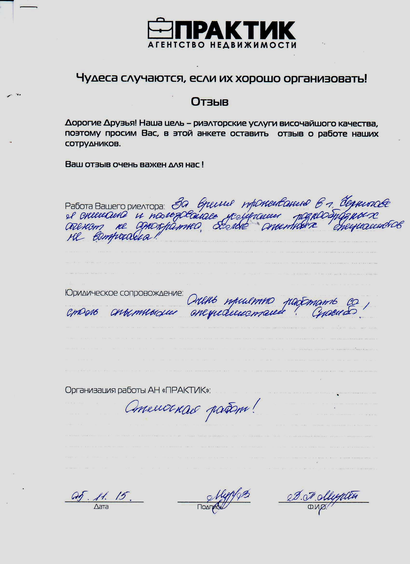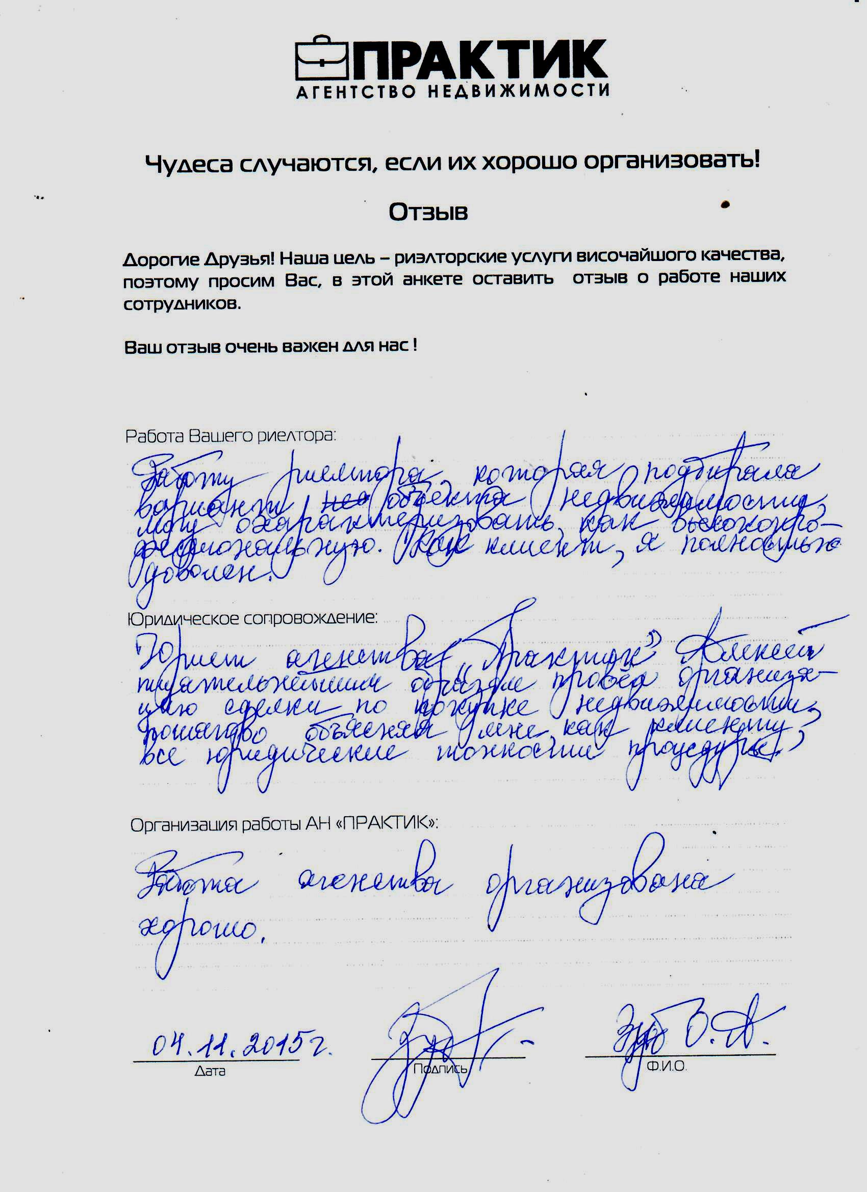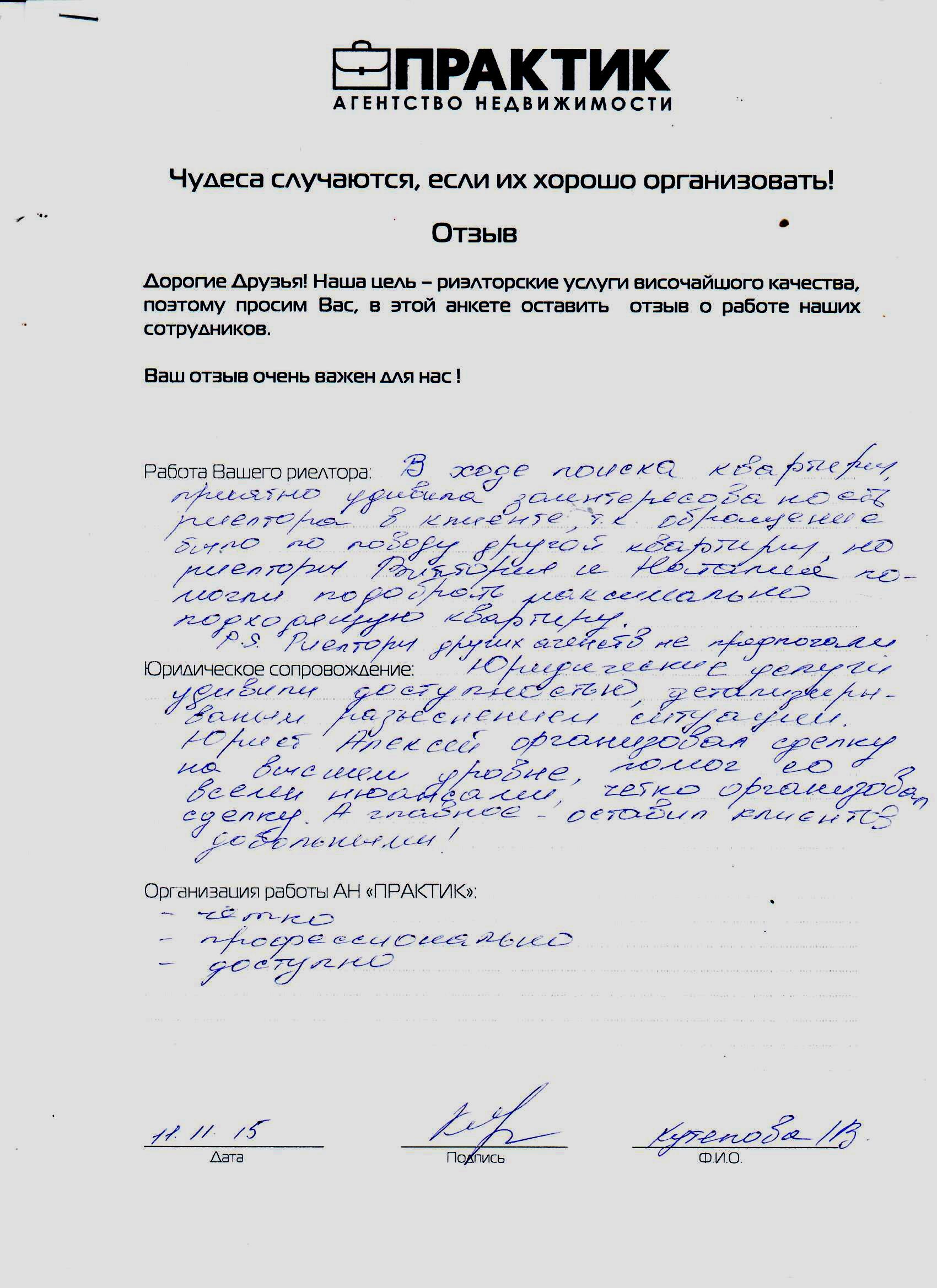 Відгук про роботу АН Практик від 11.11.2015 Кутепова И.В.