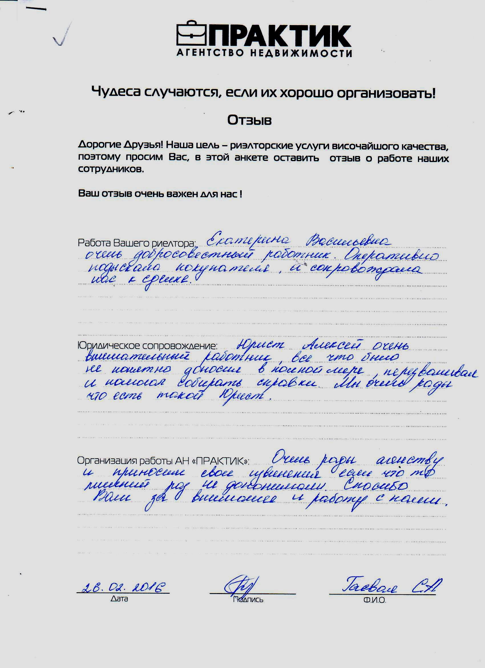 Відгук про роботу АН Практик від 26.02.2016 Гаевая С.А.