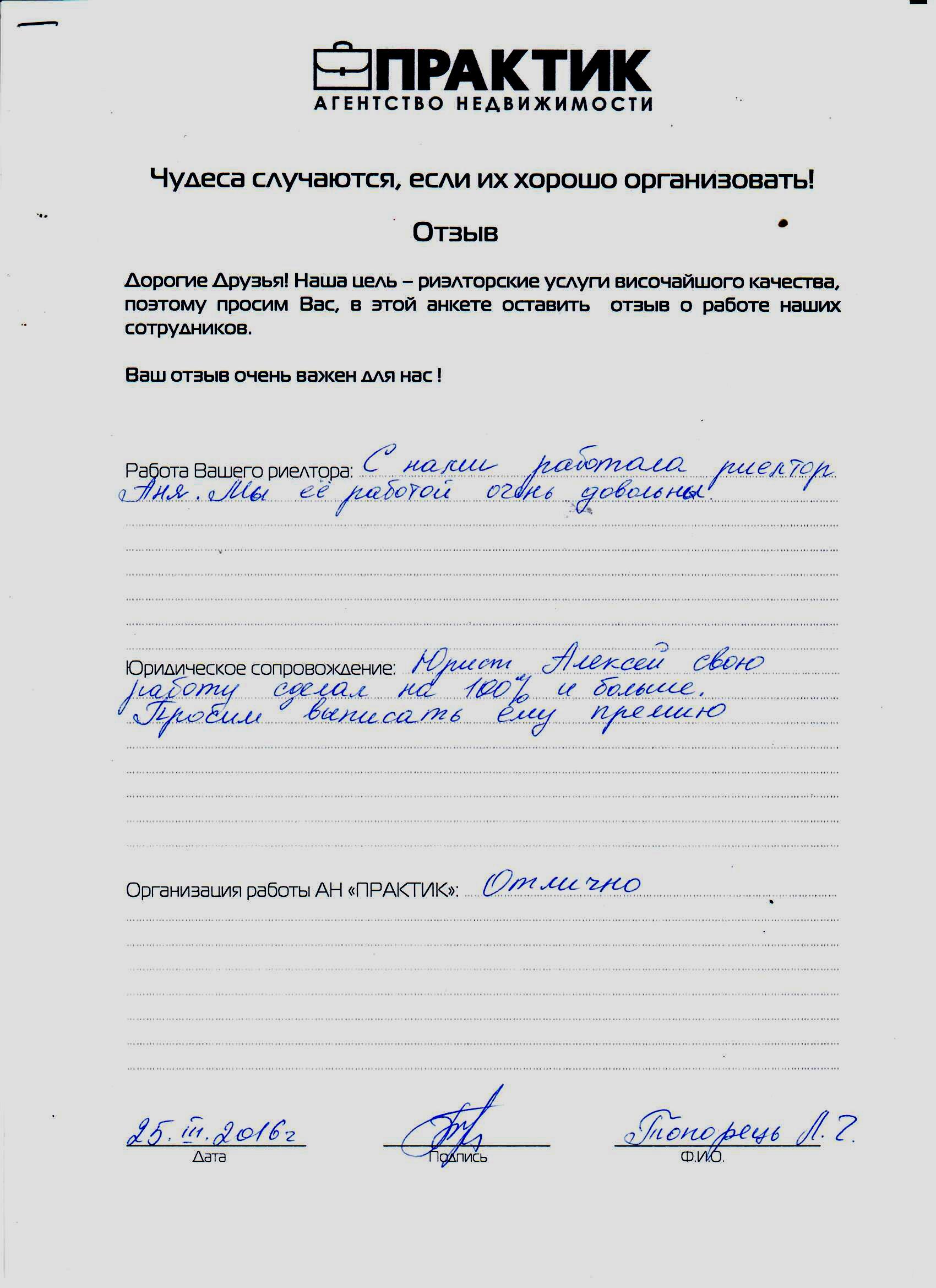 Відгук про роботу АН Практик від 15.02.2016 Товстоног О.С.