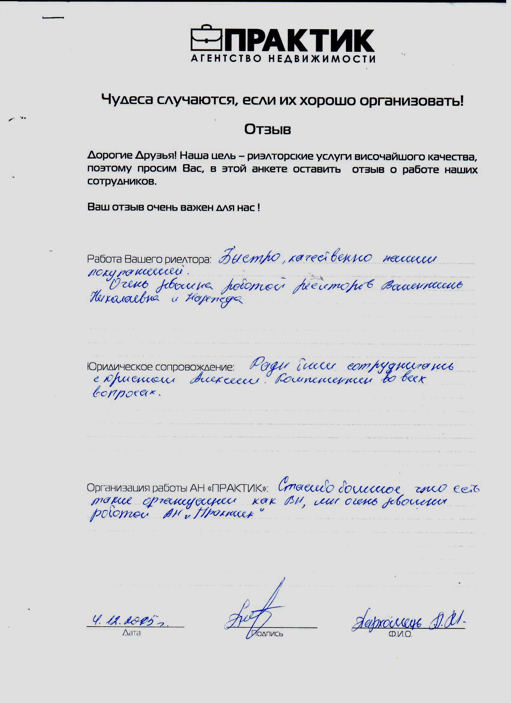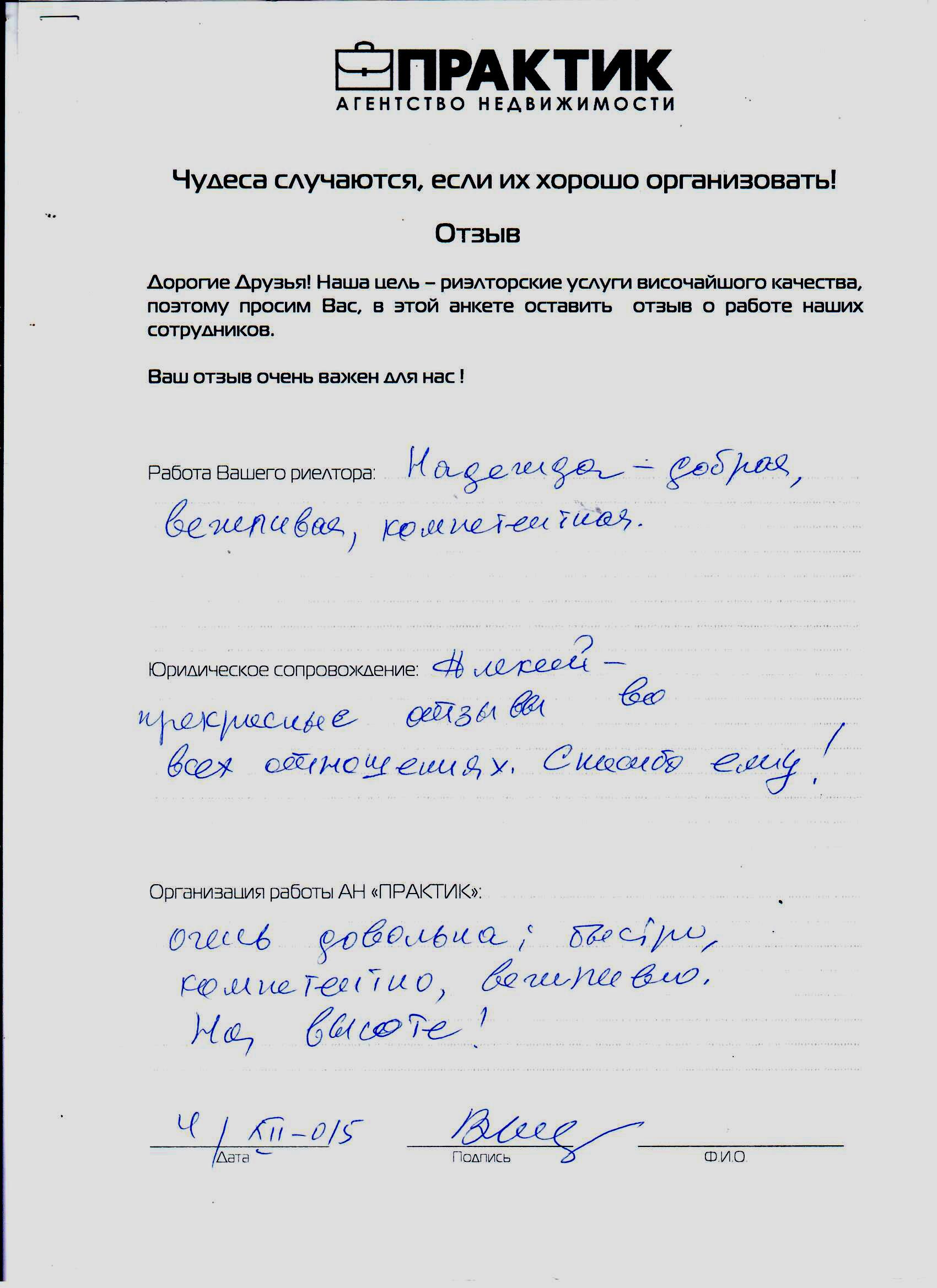 Відгук про роботу АН Практик від 04.11.2015 Зуб О.А.