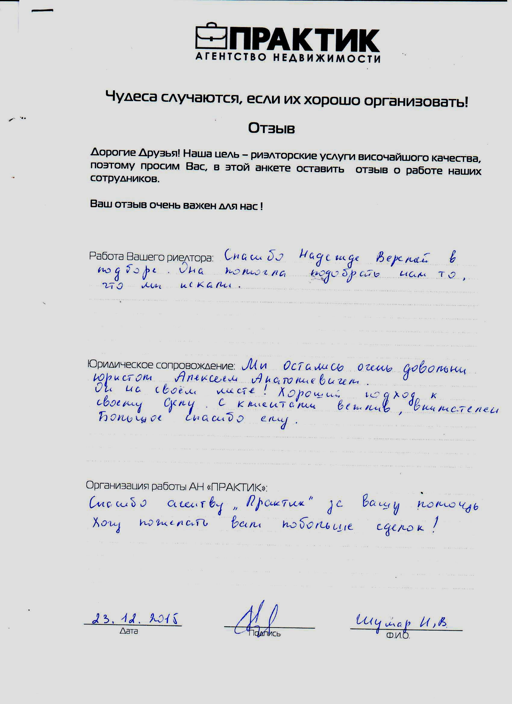 Відгук про роботу АН Практик від 23.12.2015 Савицкая О.В.