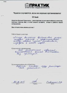 Спасибо большое что есть такие организации как Вы, мы очень довольны работой АН "Практик"