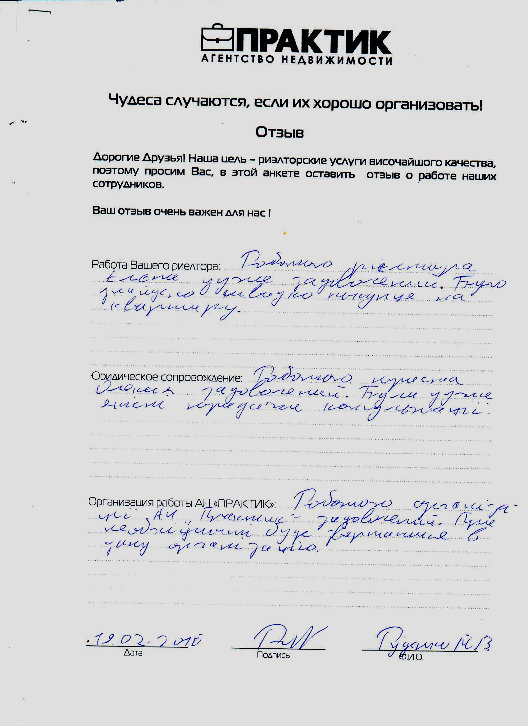 Відгук про роботу АН Практик від 19.02.2016 Данилова С.В.