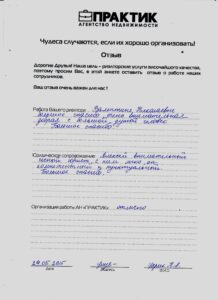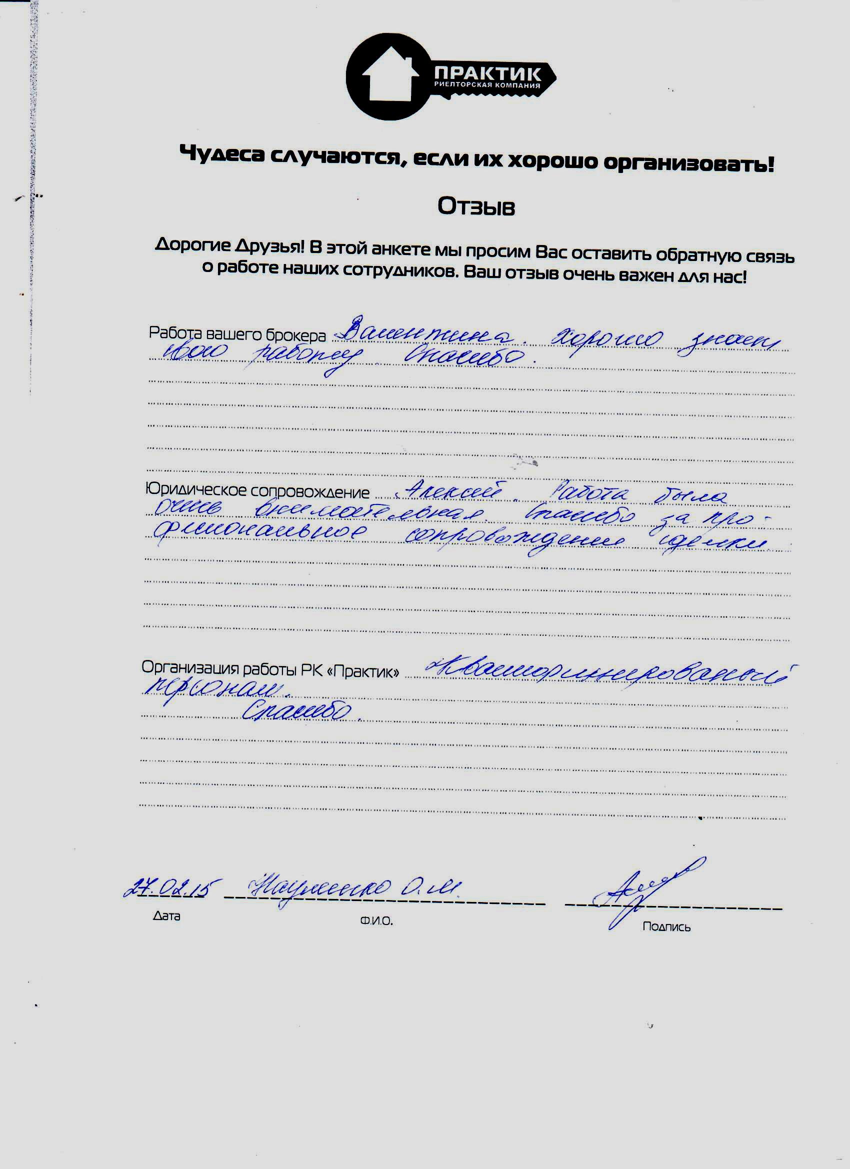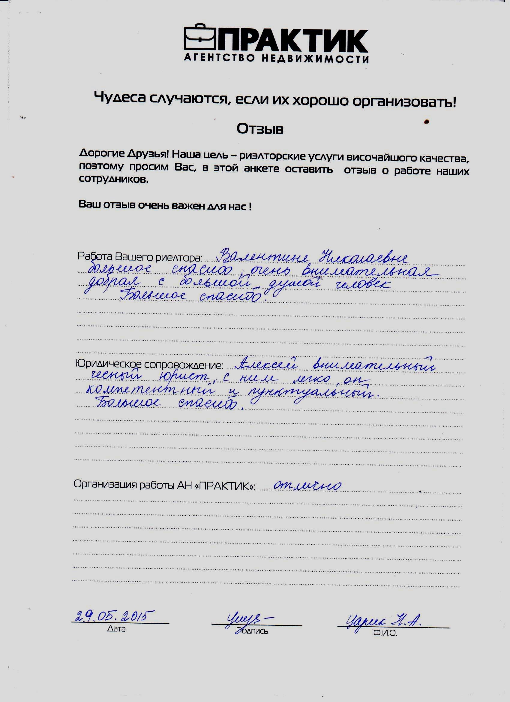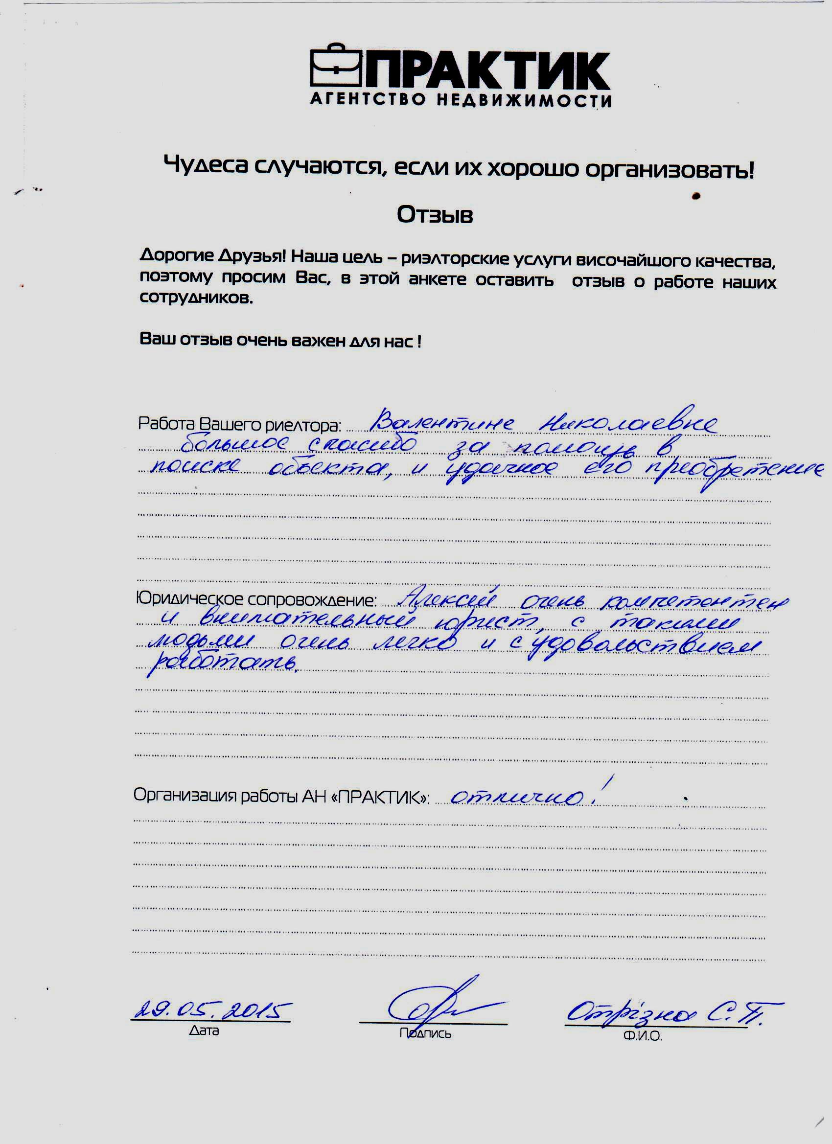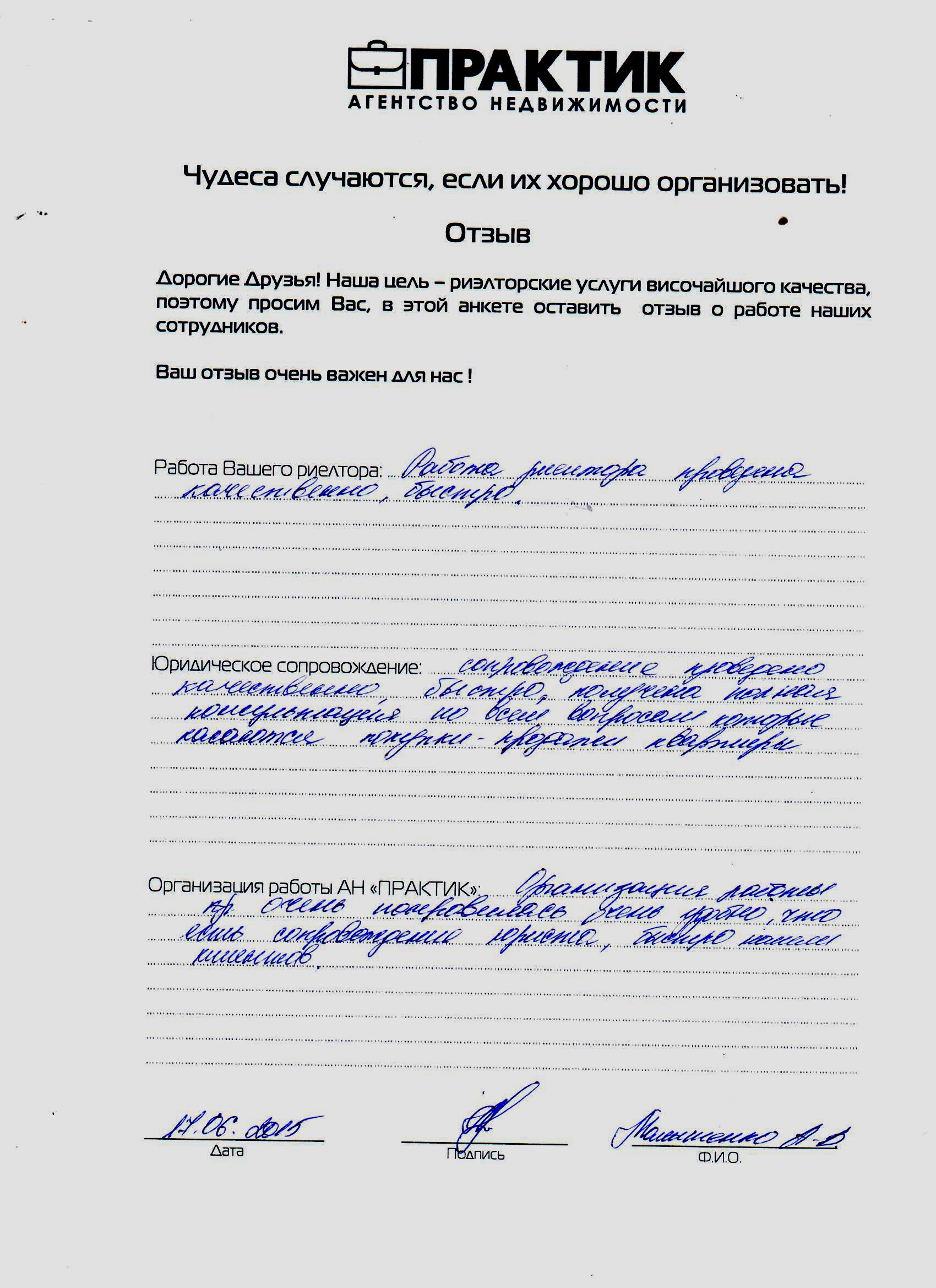 Відгук про роботу АН Практик від 17.06.2015 Малышенко А. В.