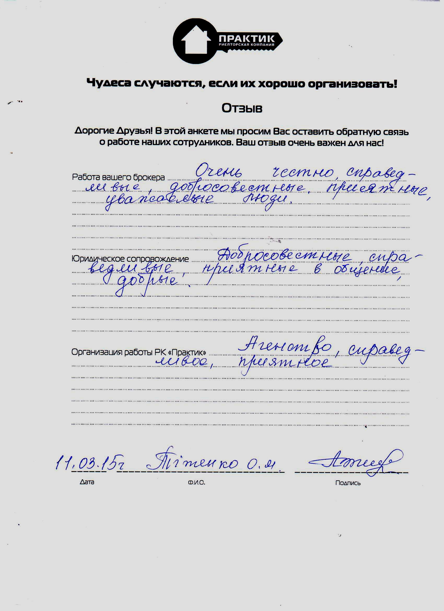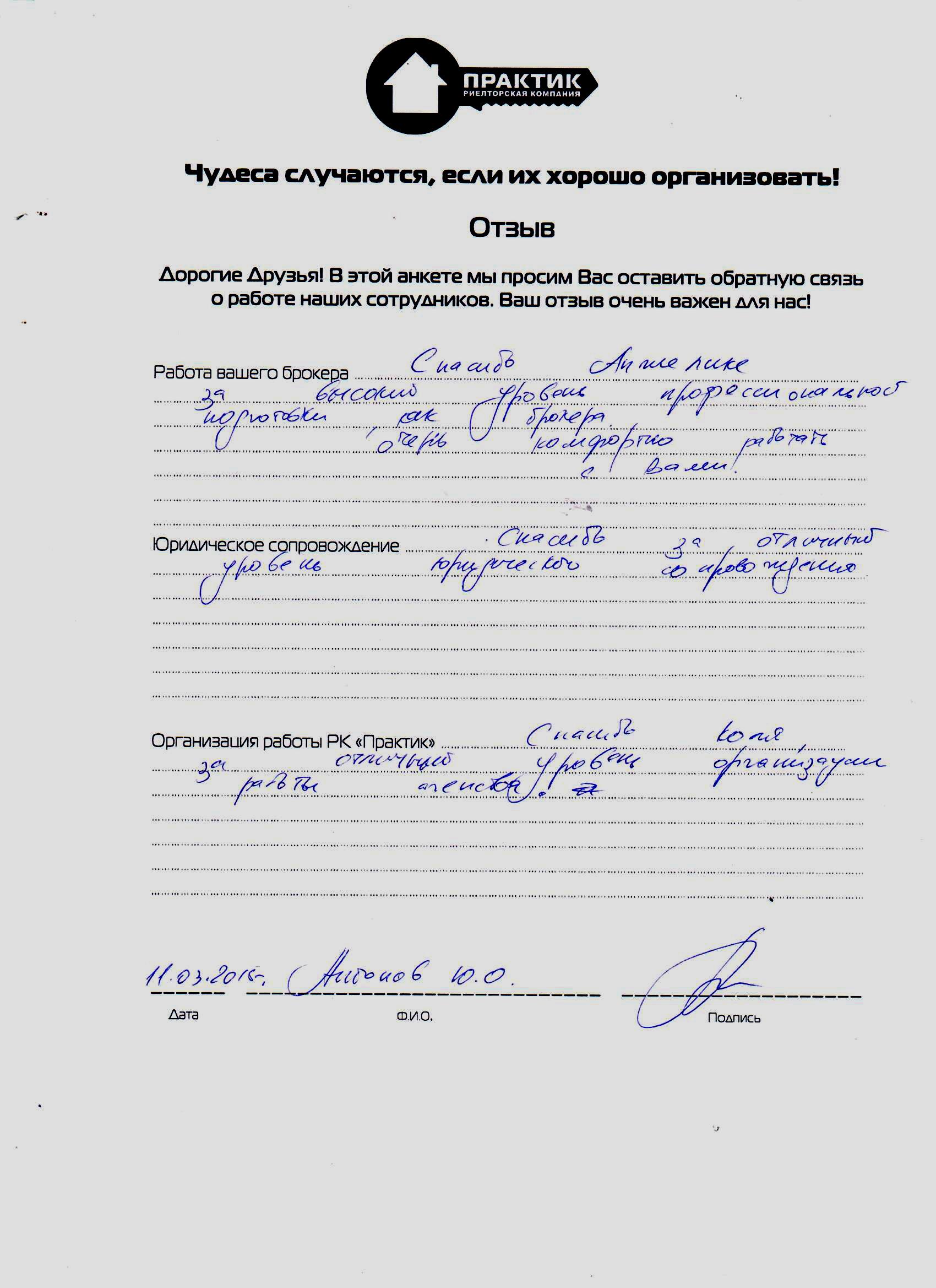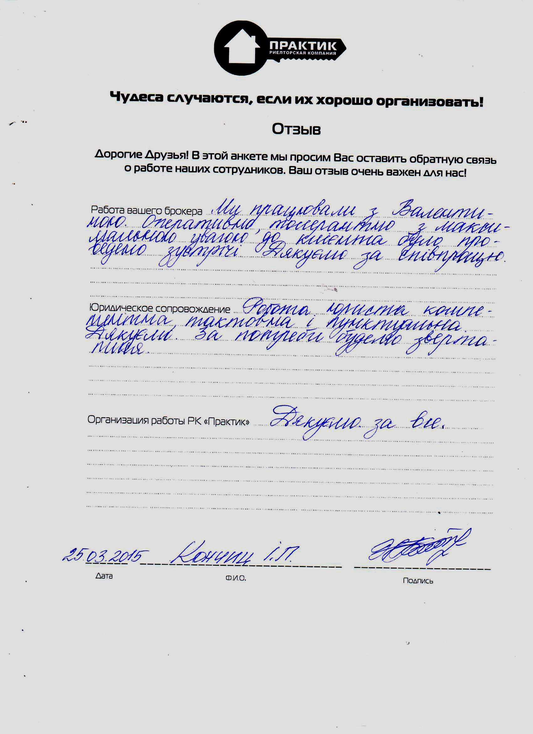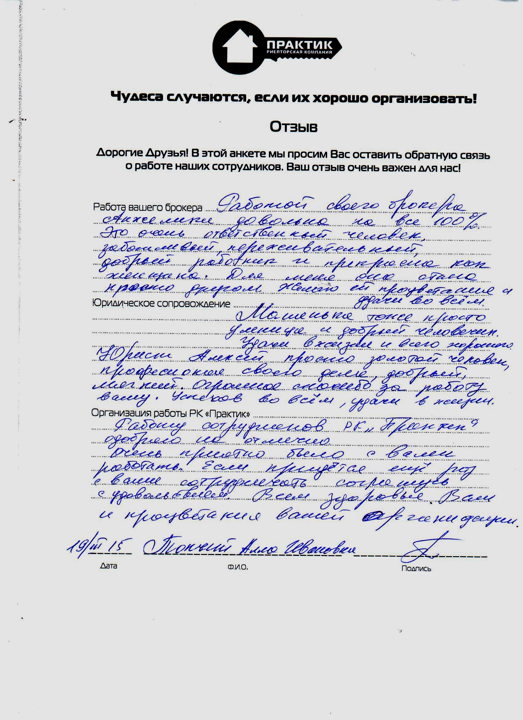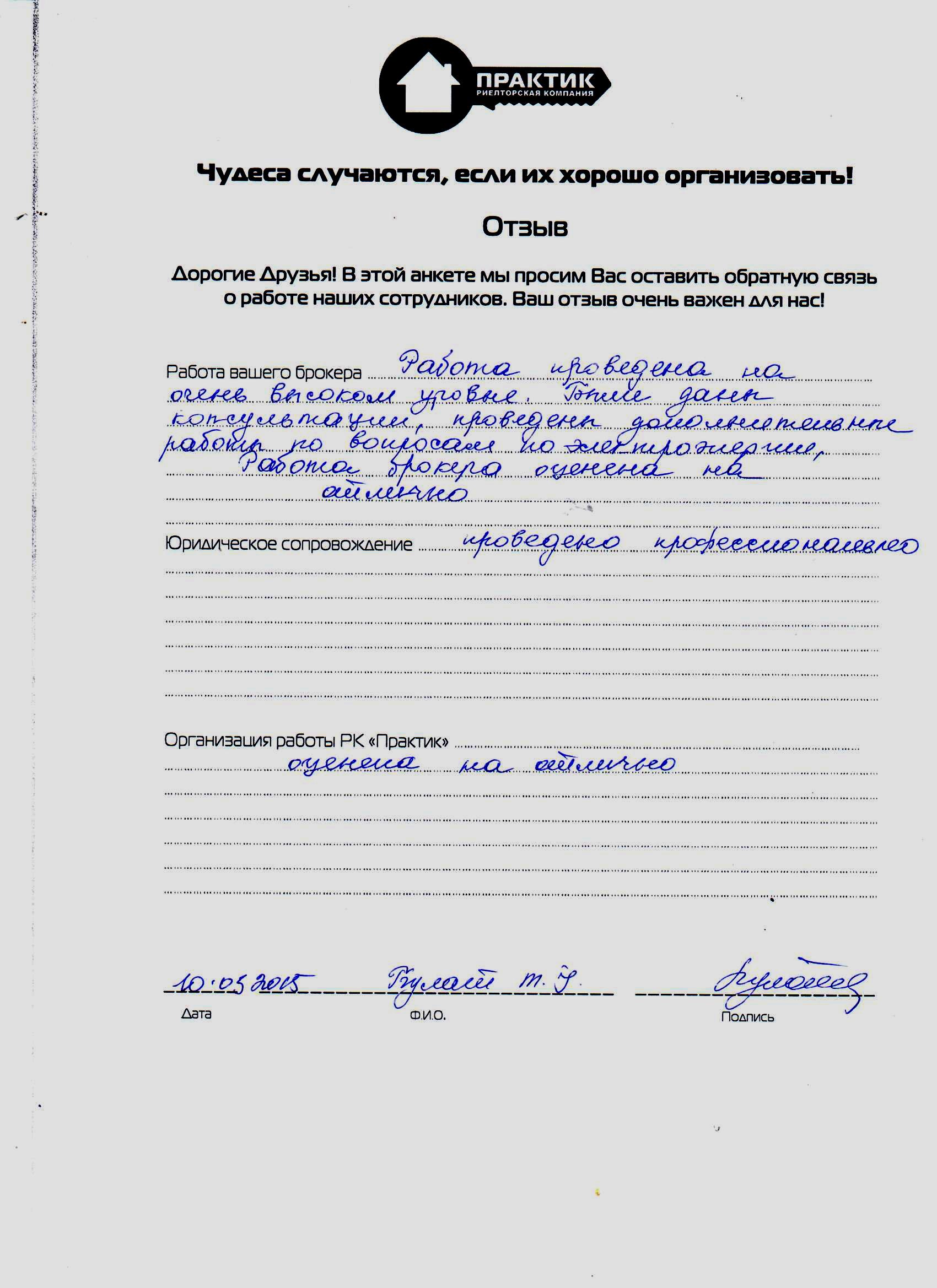 Відгук про роботу АН Практик від 17.06.2015 Малышенко А. В.