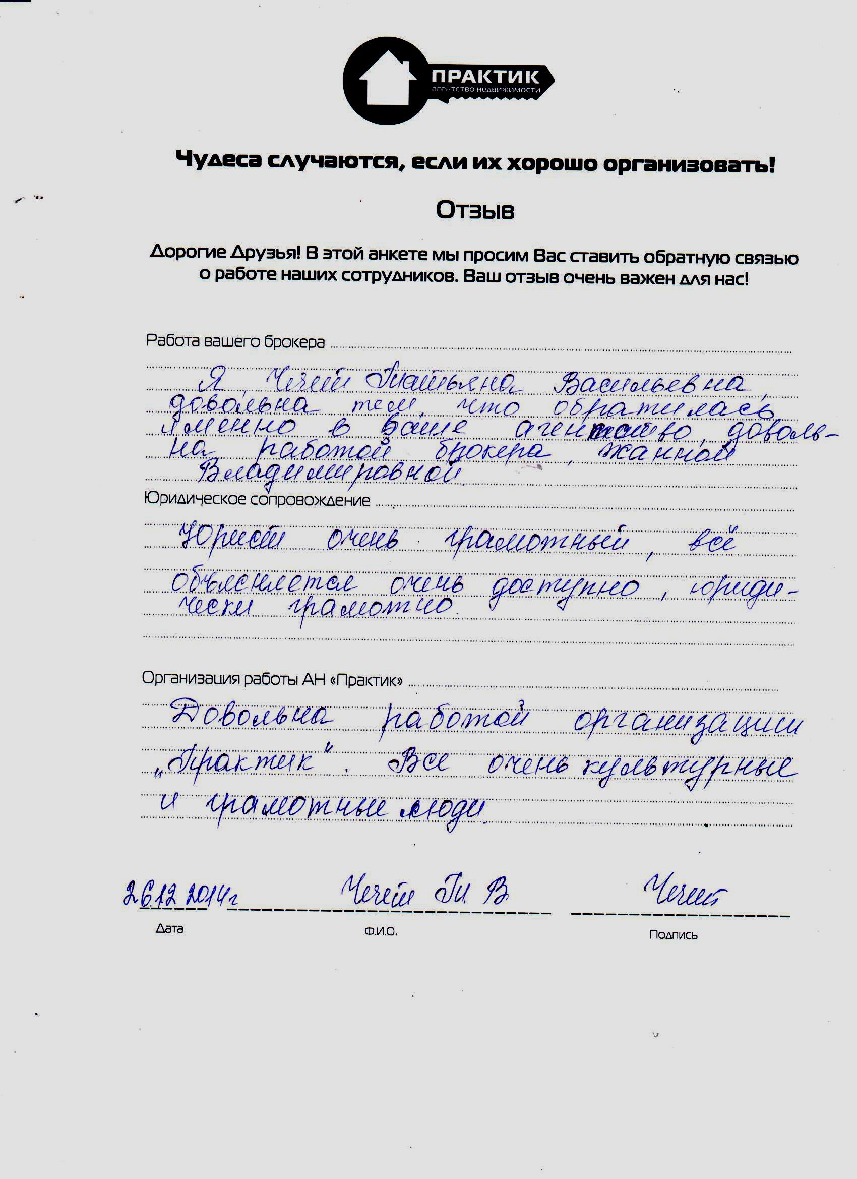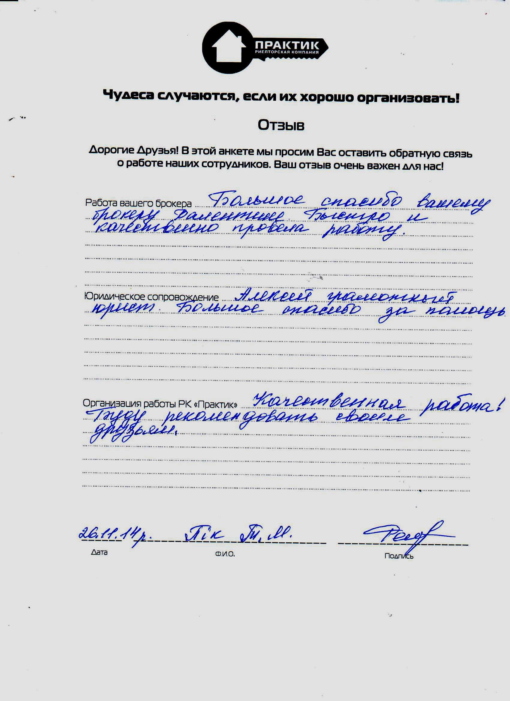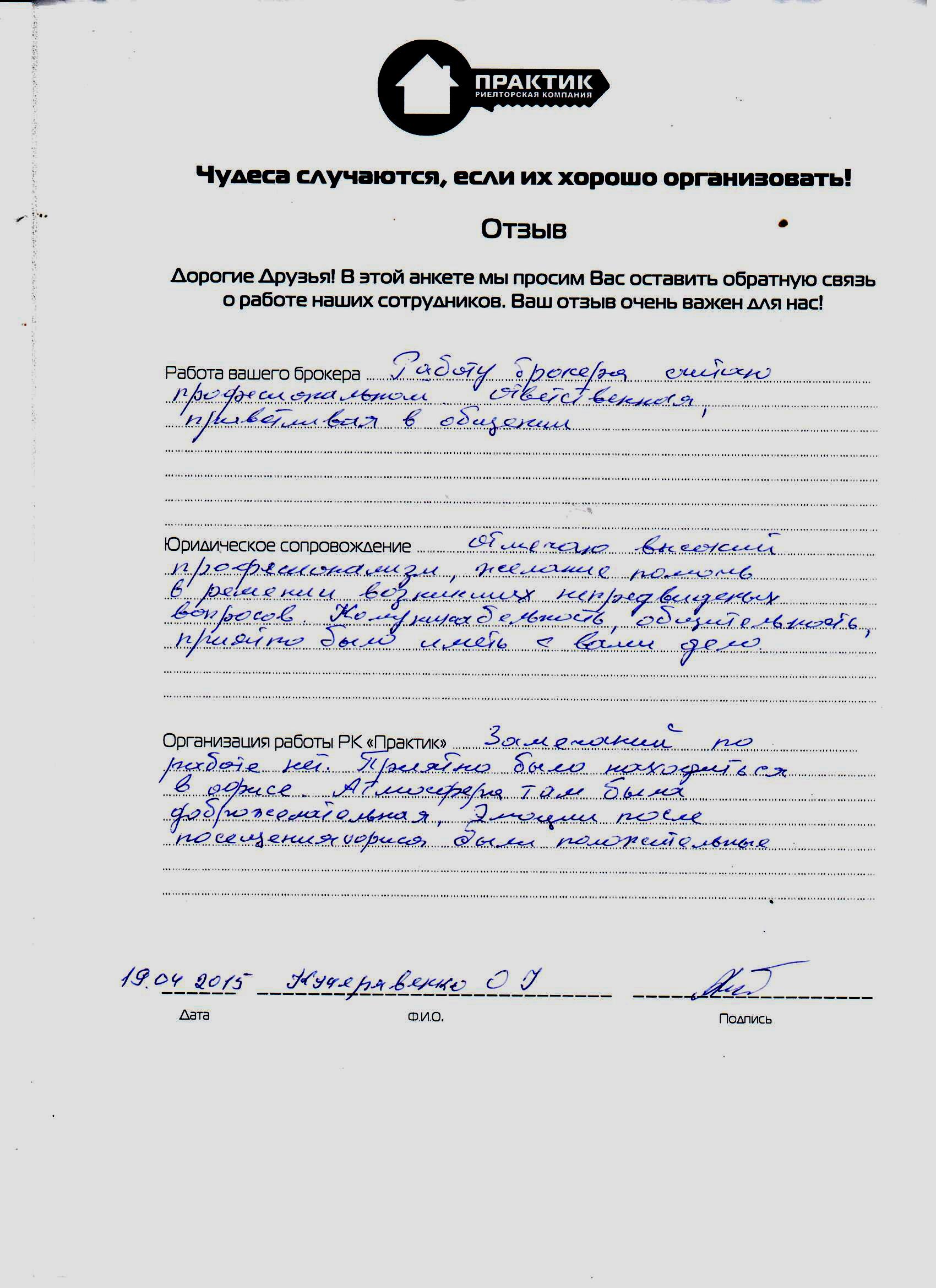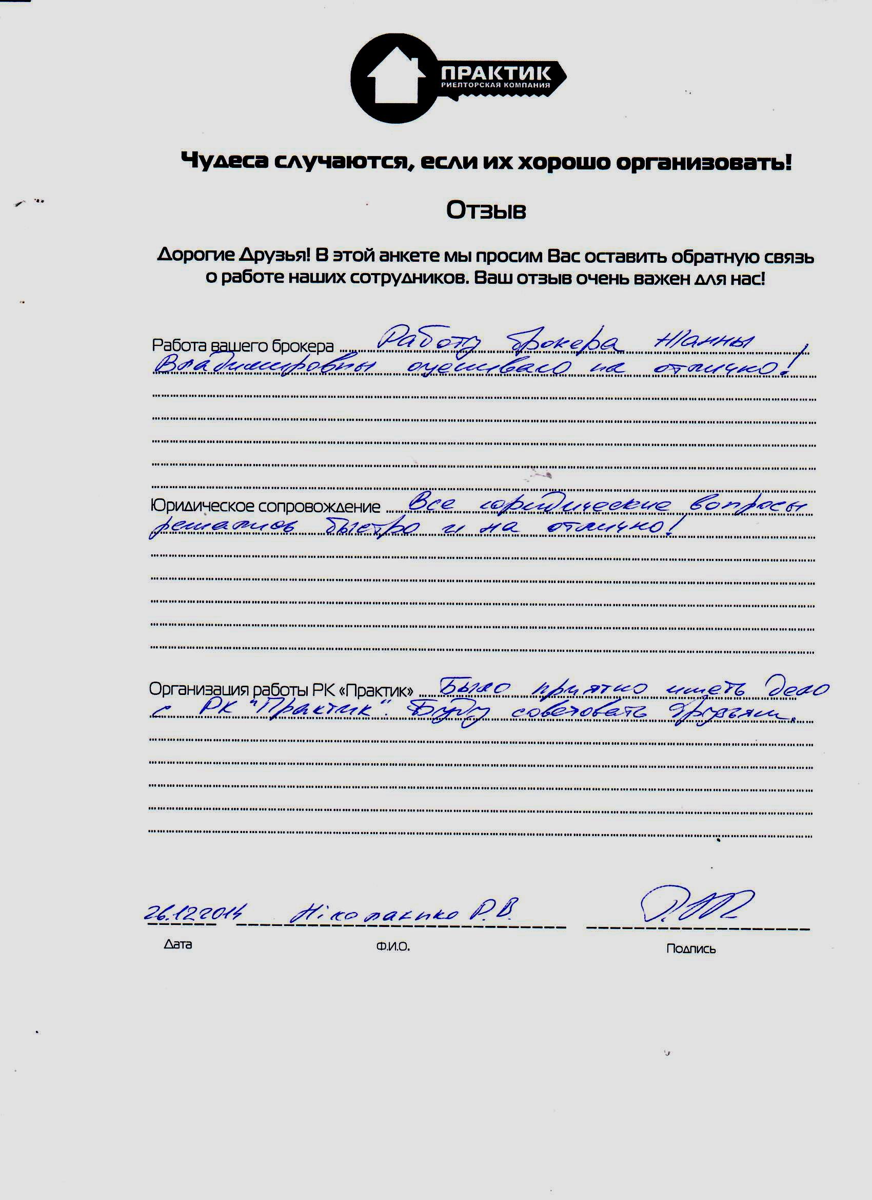 Відгук про роботу АН Практик від 17.06.2015 Малышенко А. В.