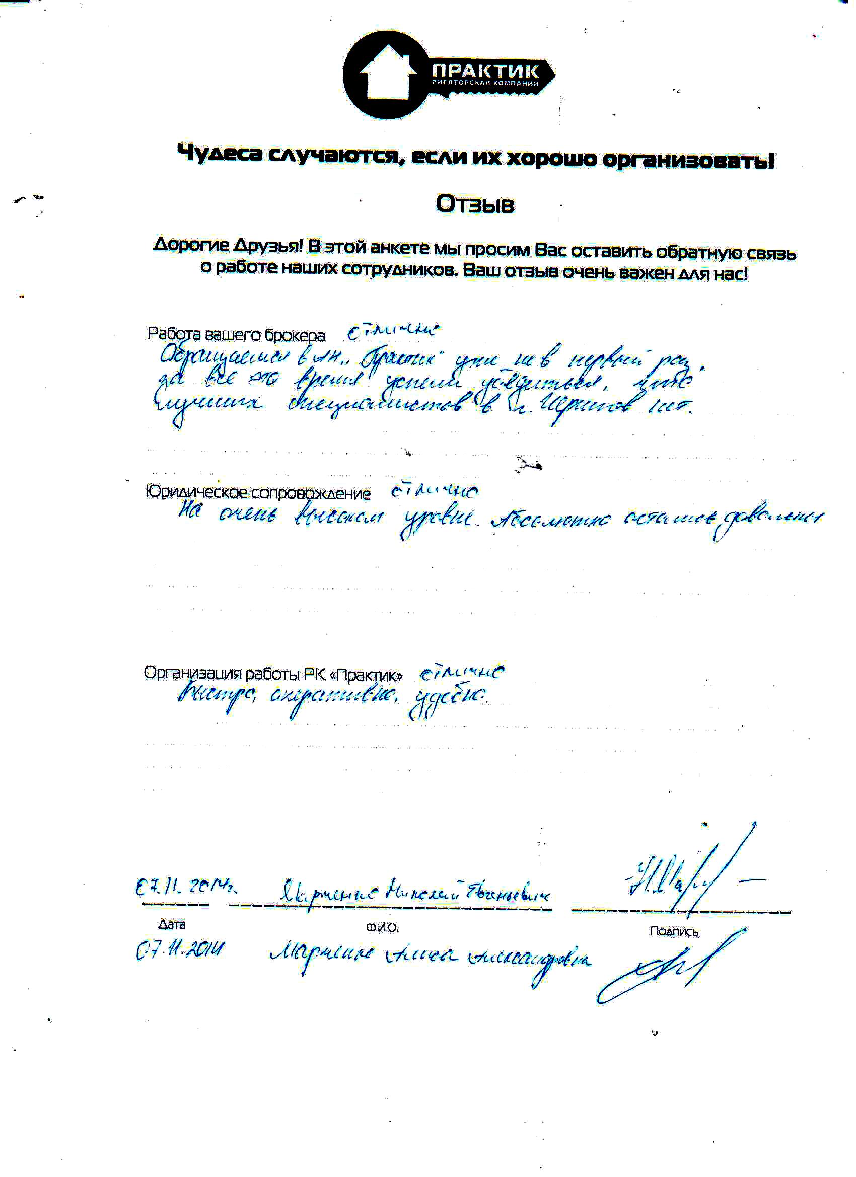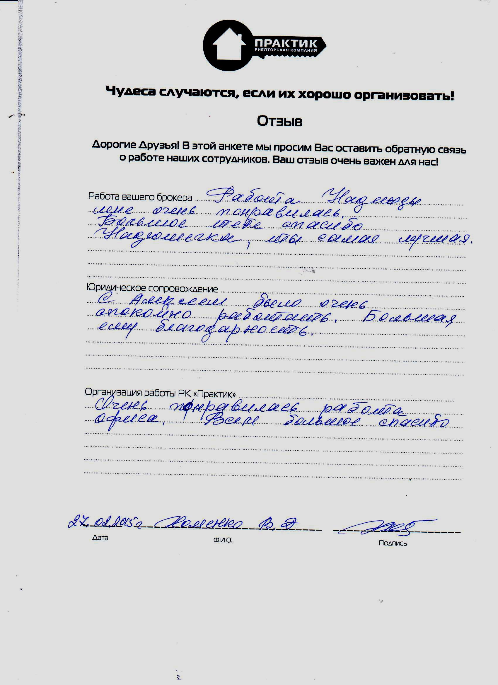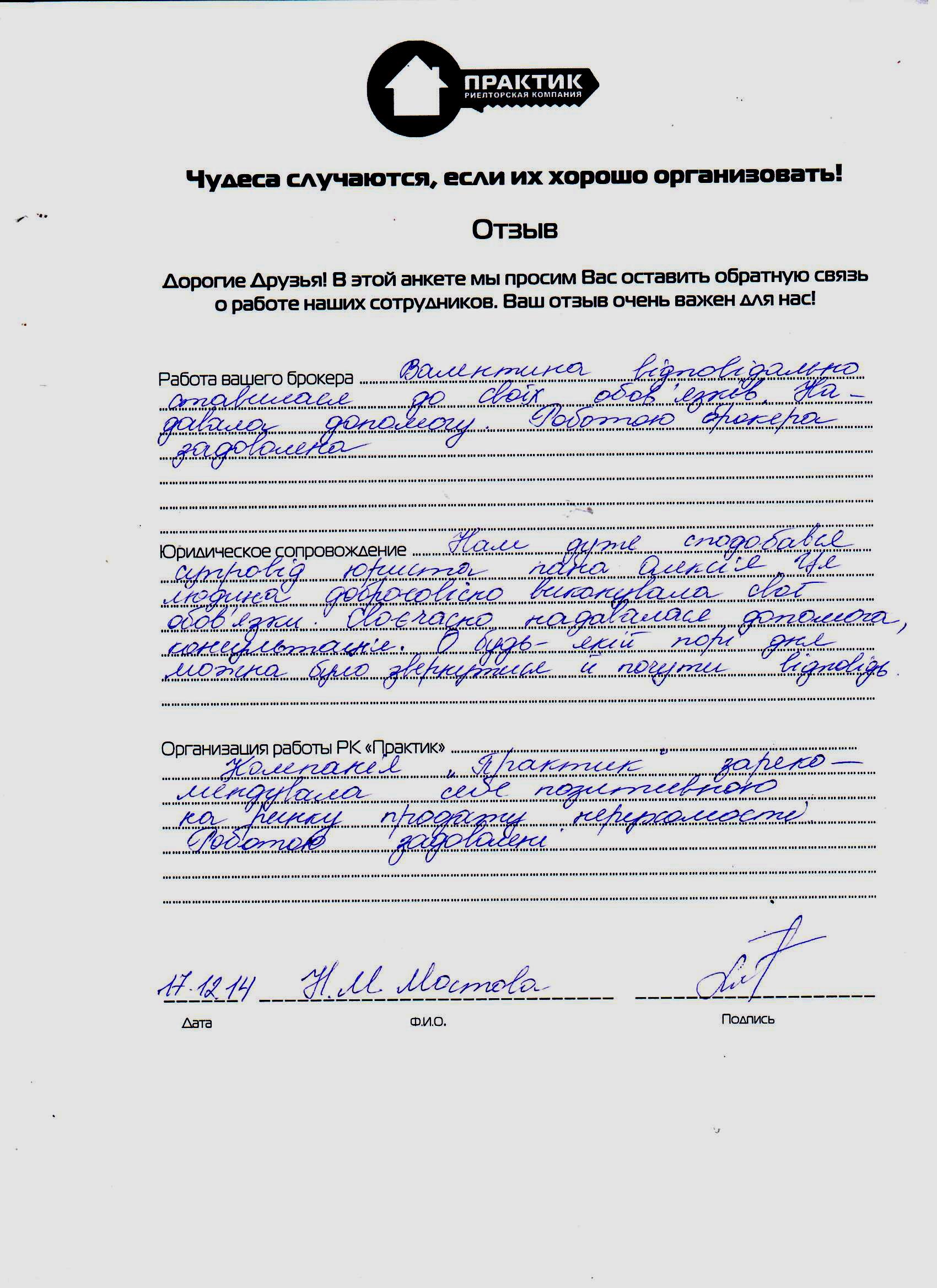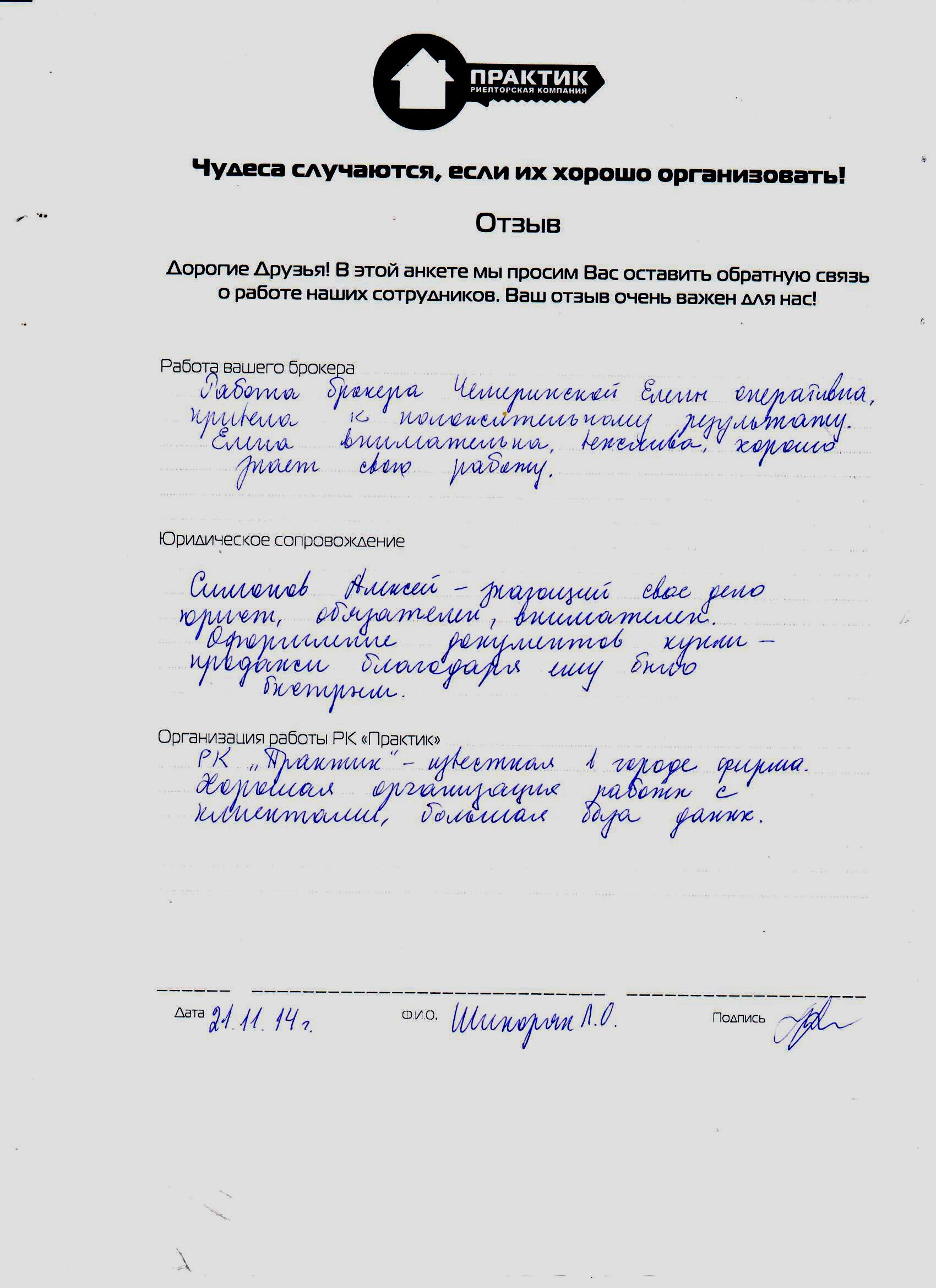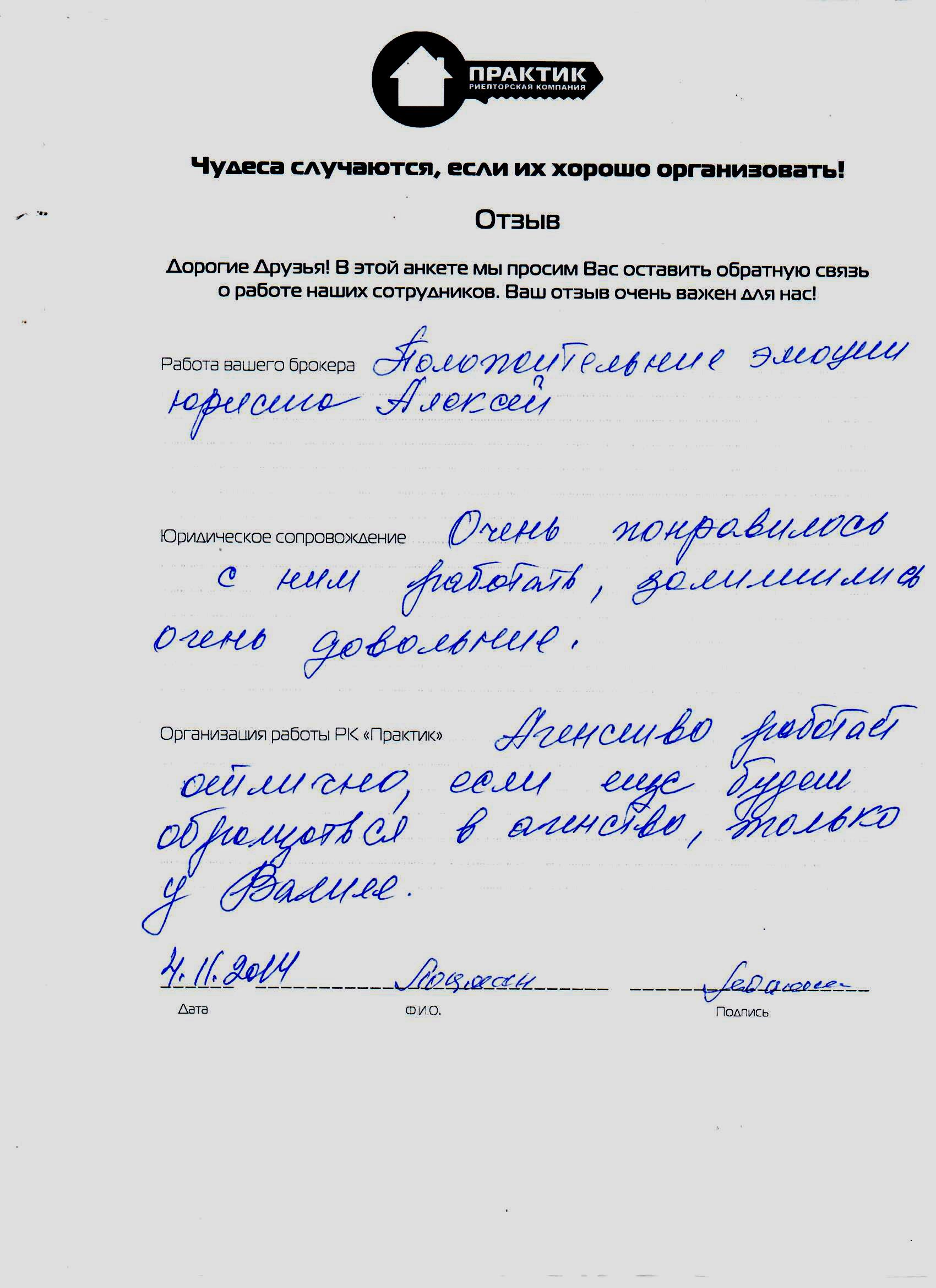 Відгук про роботу АН Практик від 17.06.2015 Малышенко А. В.