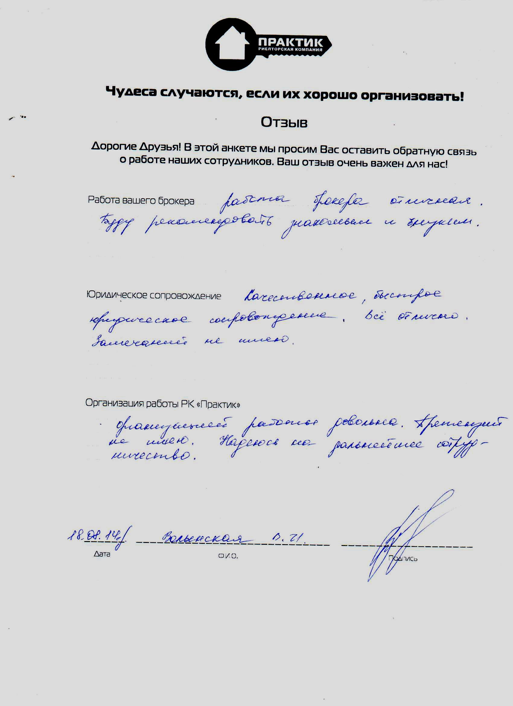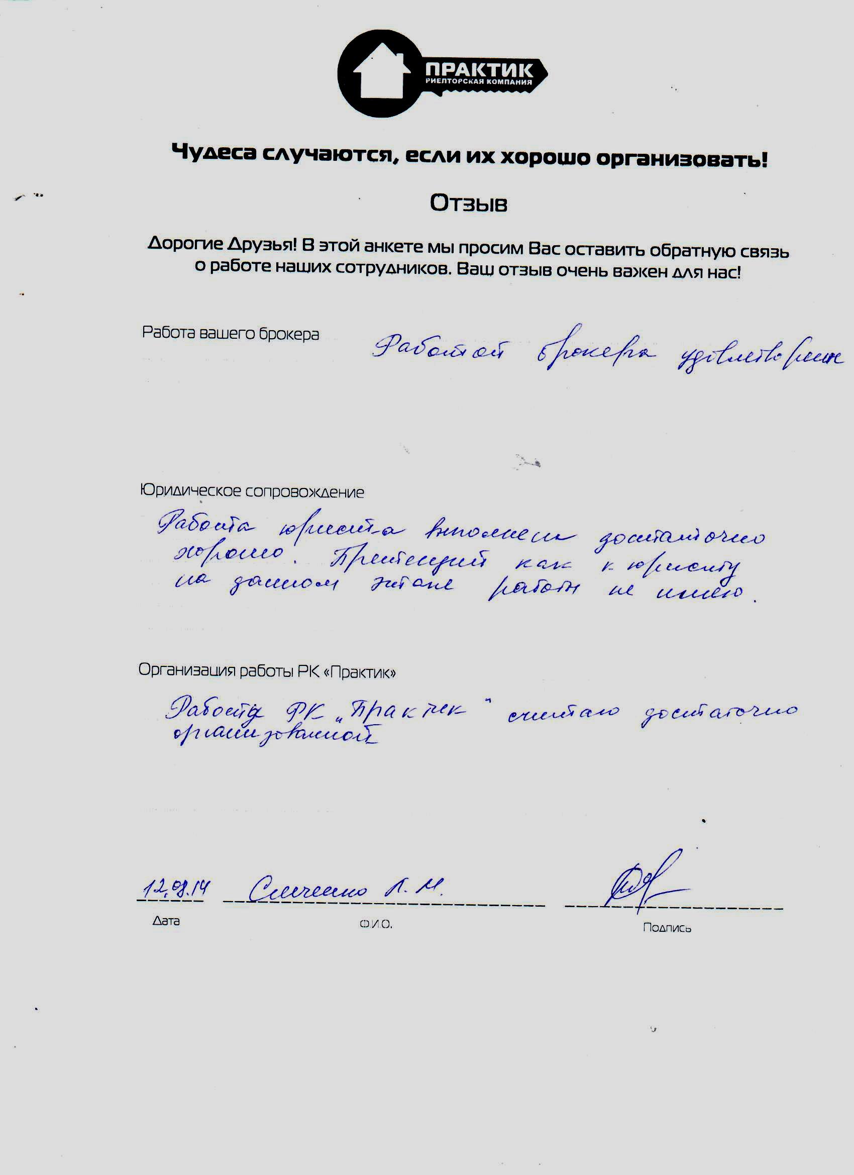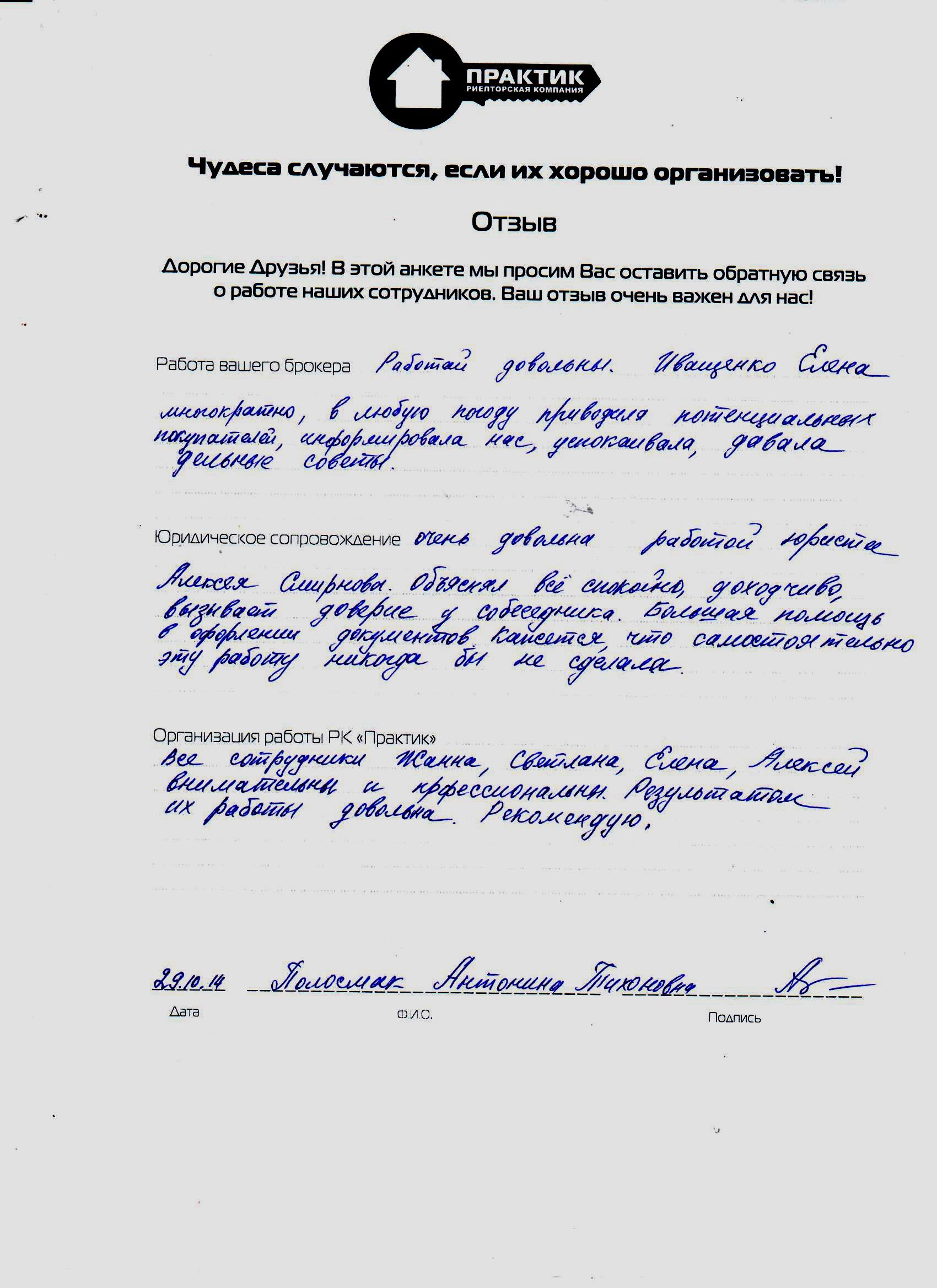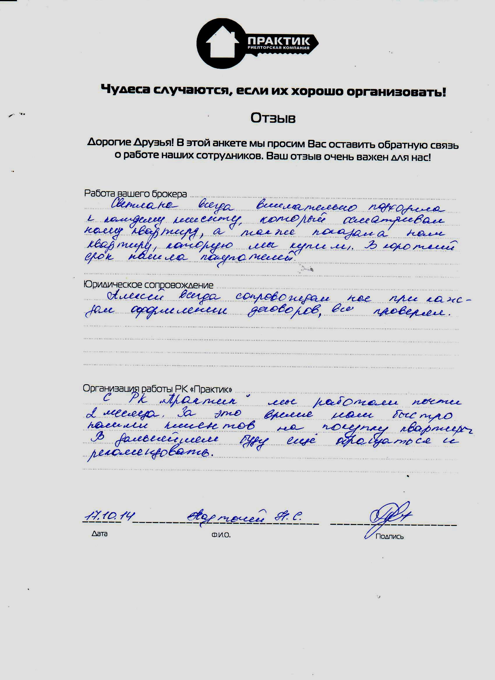 Відгук про роботу АН Практик від 29.10.2014 Полосмак А.Т.