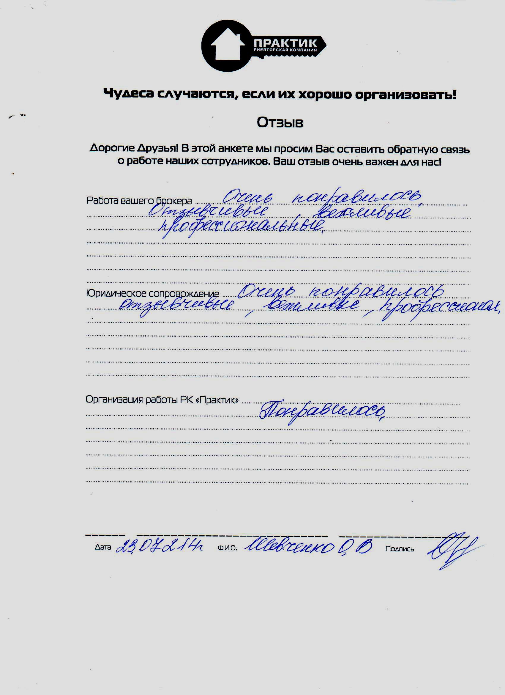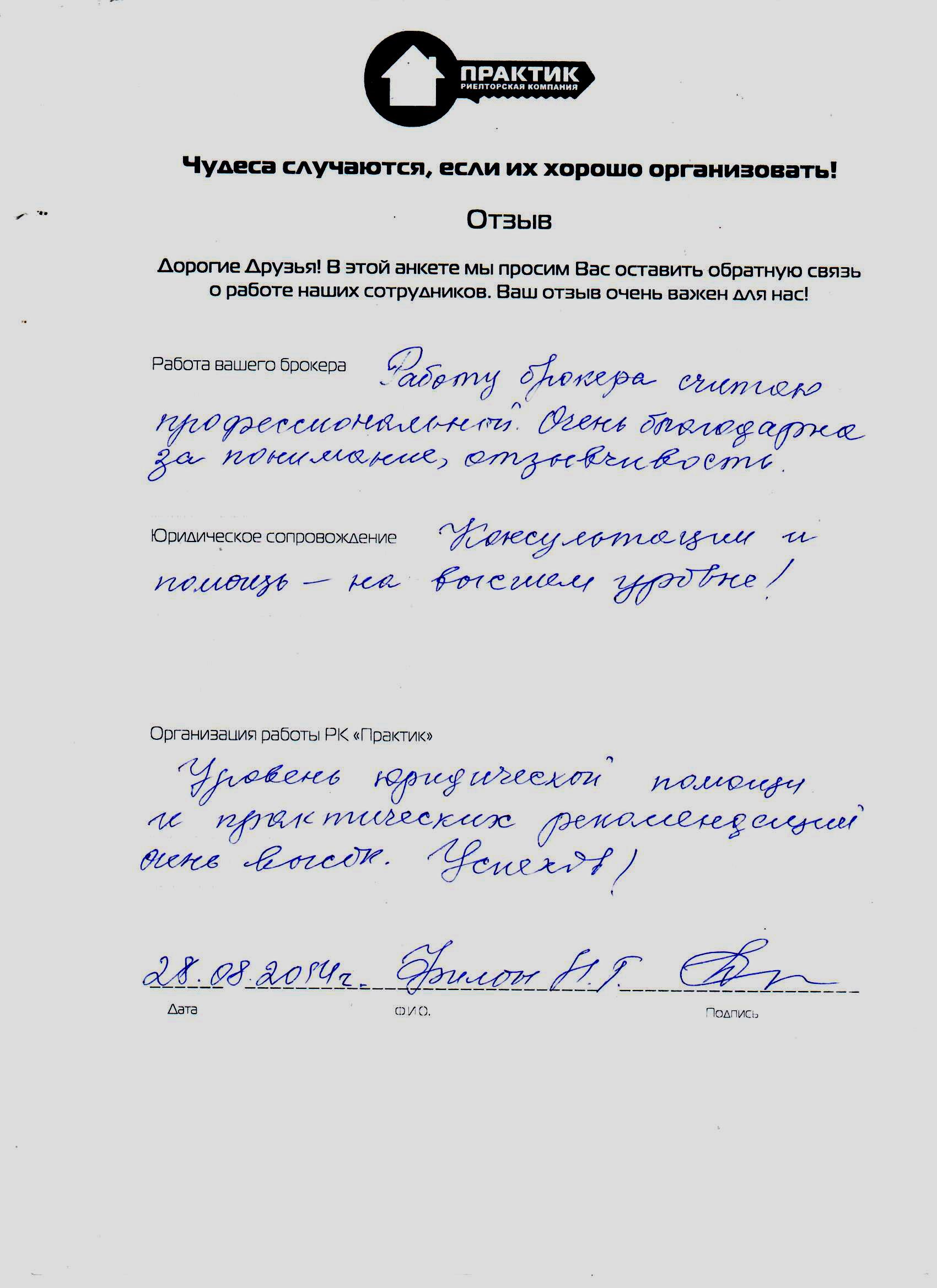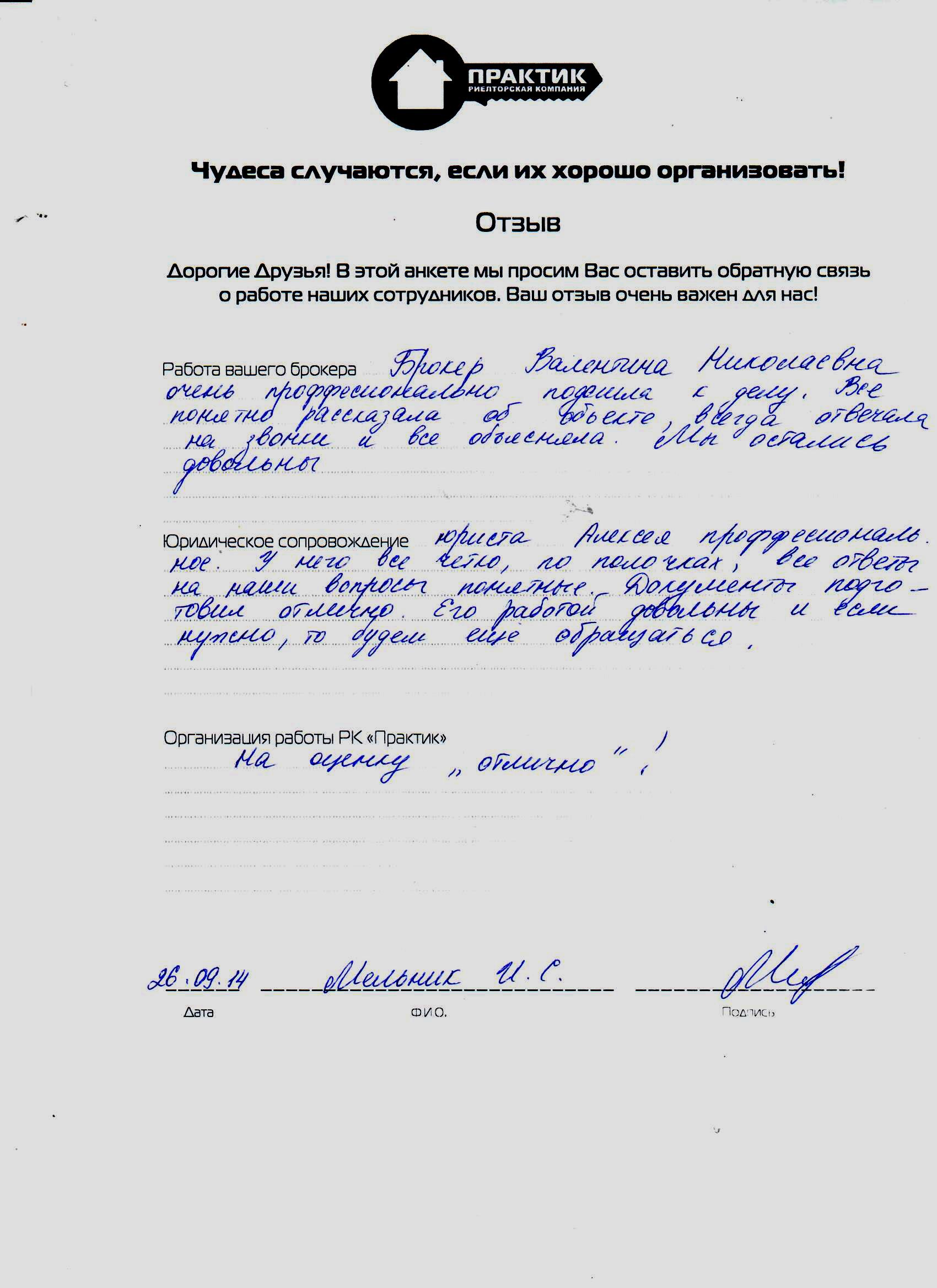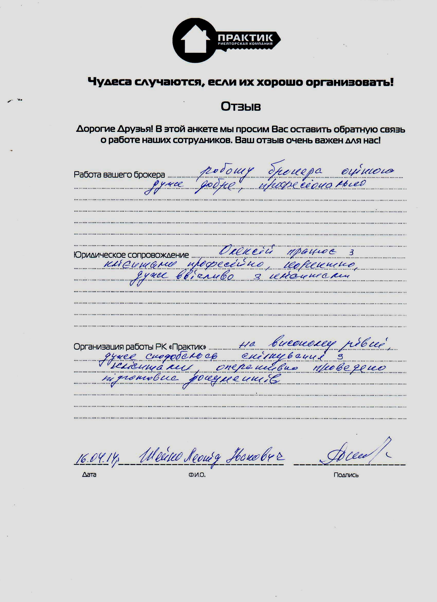 Відгук про роботу АН Практик від 29.10.2014 Полосмак А.Т.