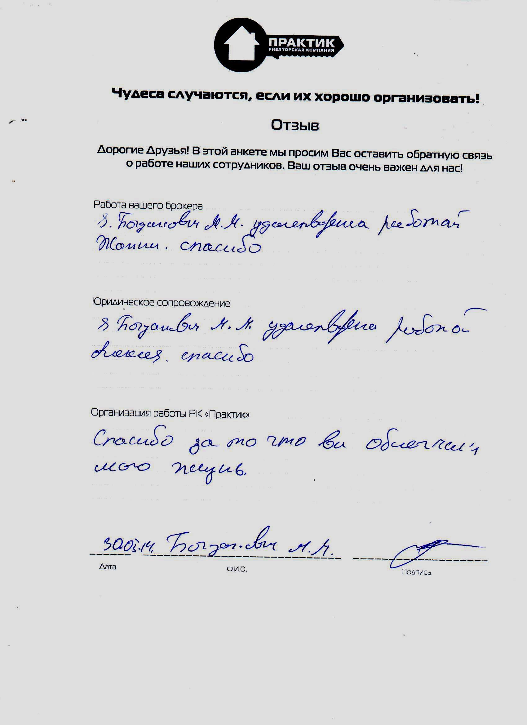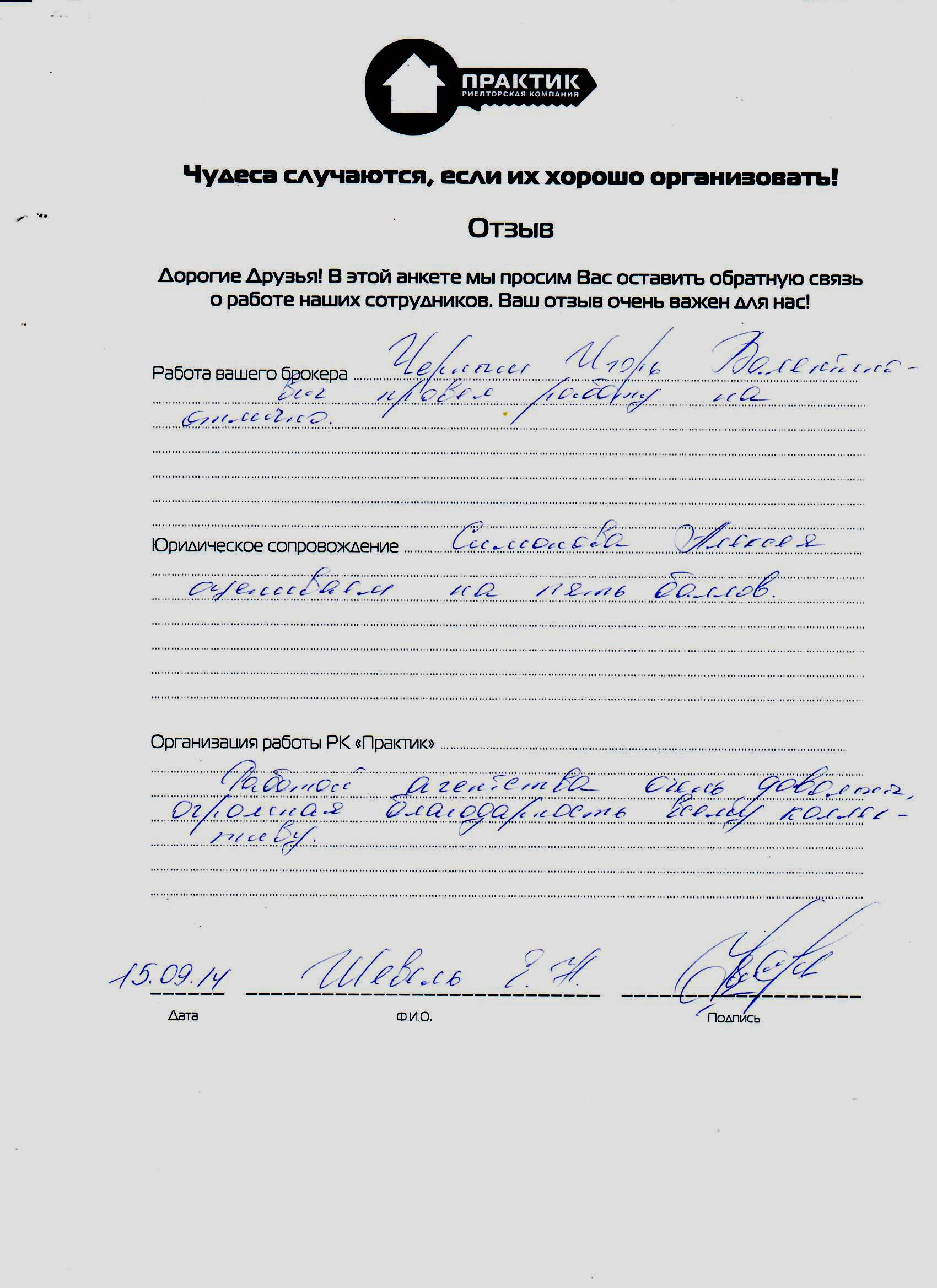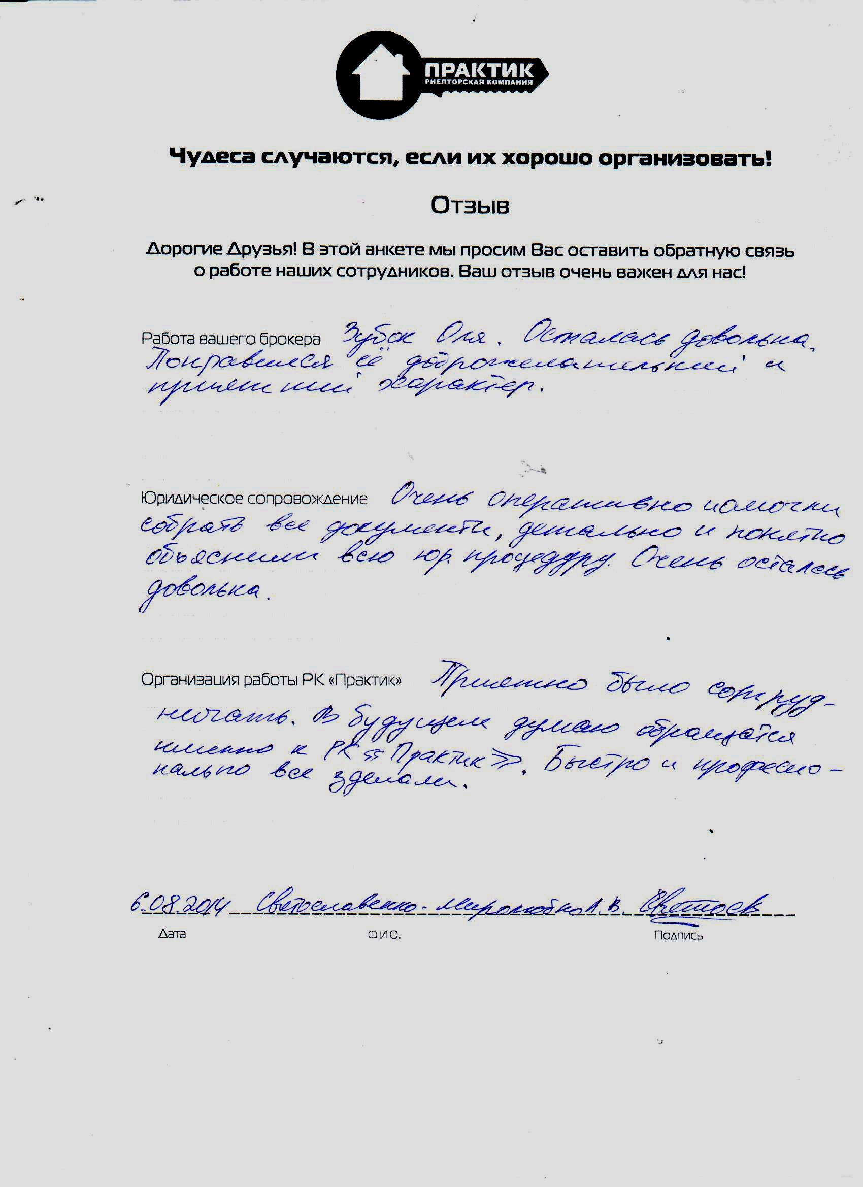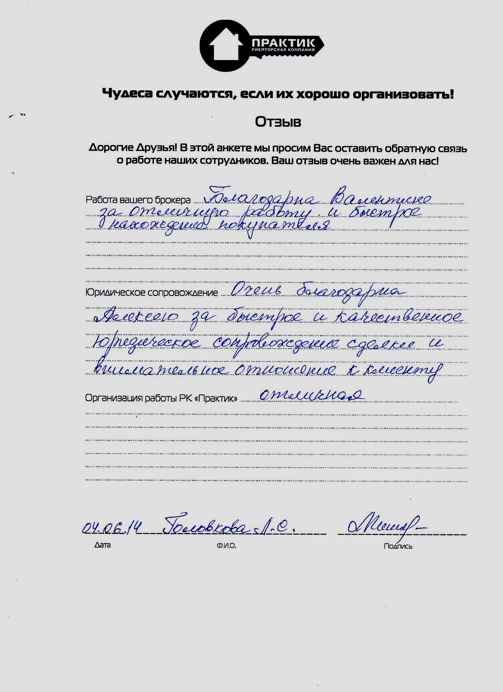 Відгук про роботу АН Практик від 29.10.2014 Полосмак А.Т.