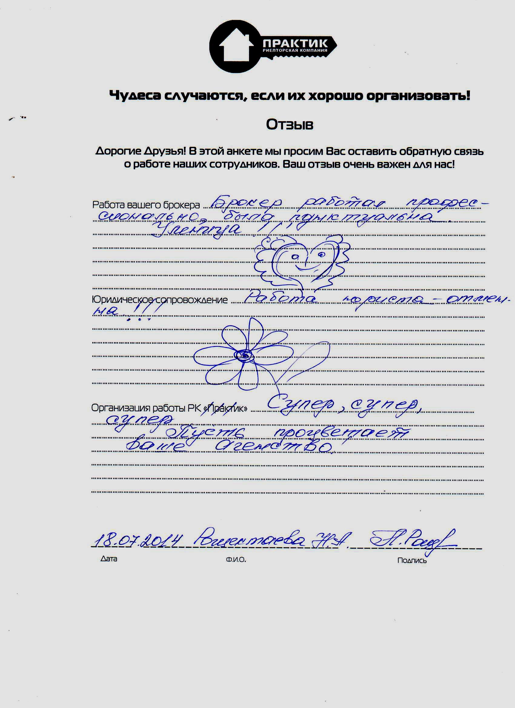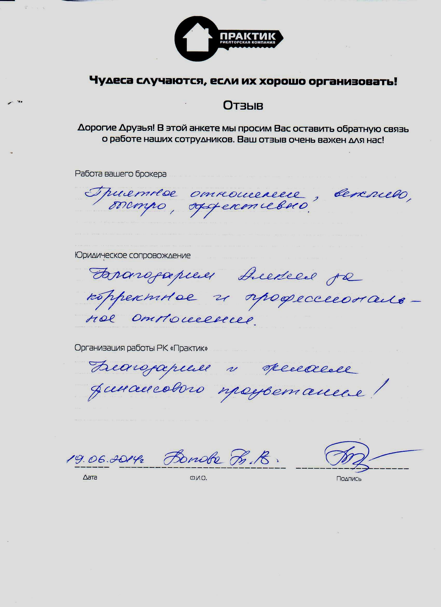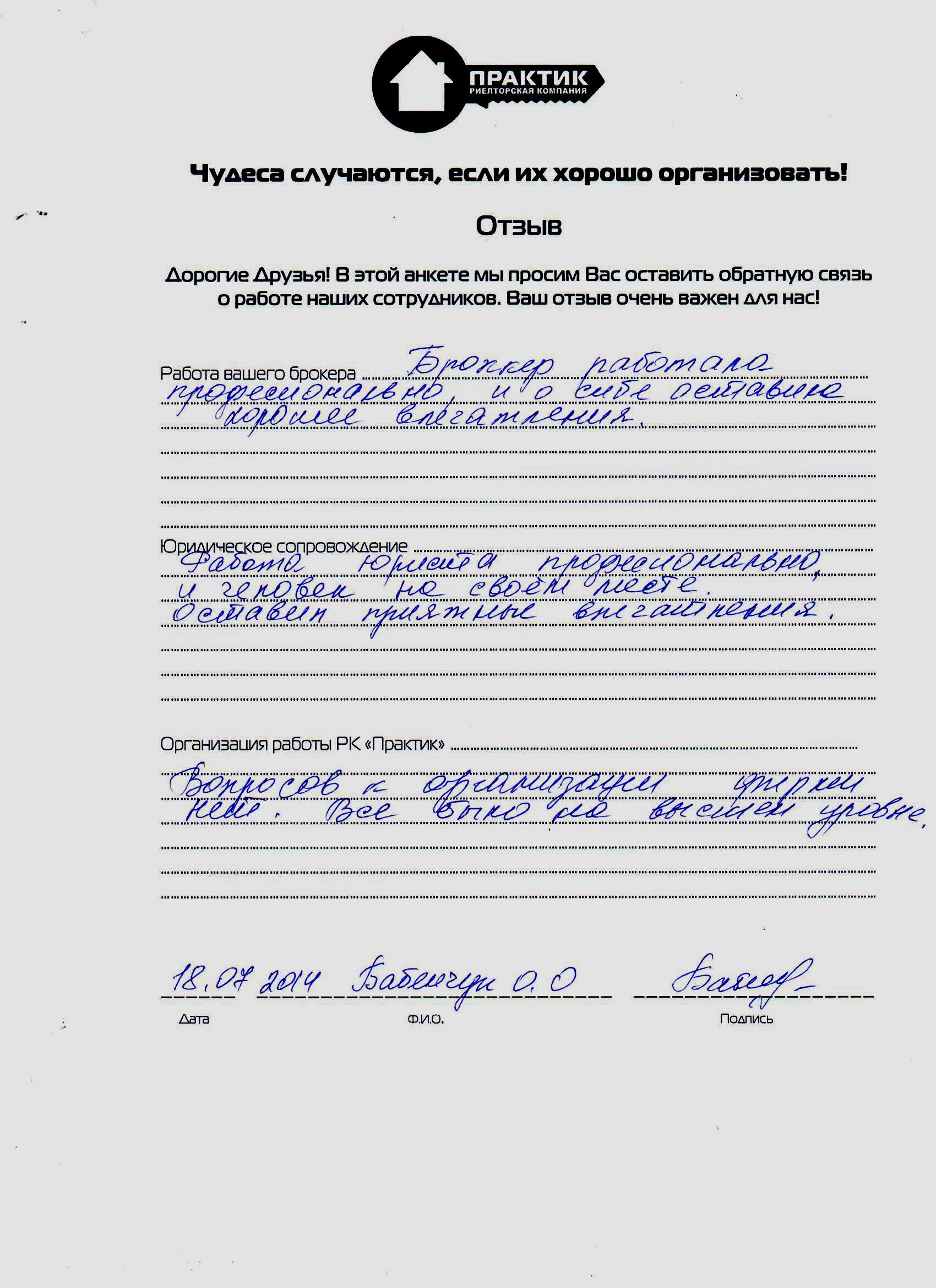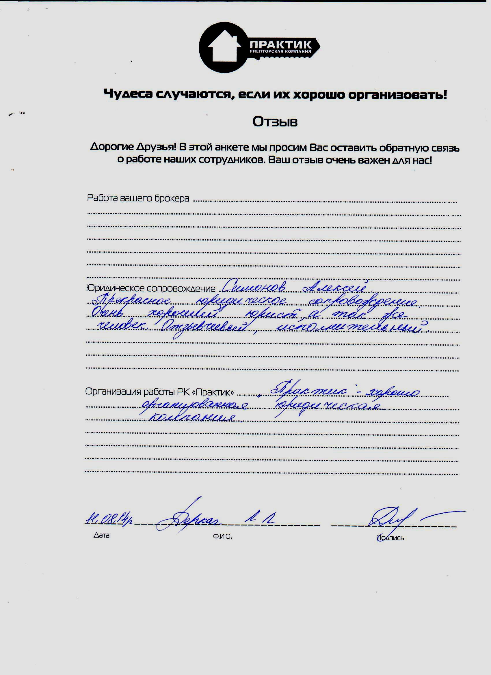 Відгук про роботу АН Практик від 29.10.2014 Полосмак А.Т.