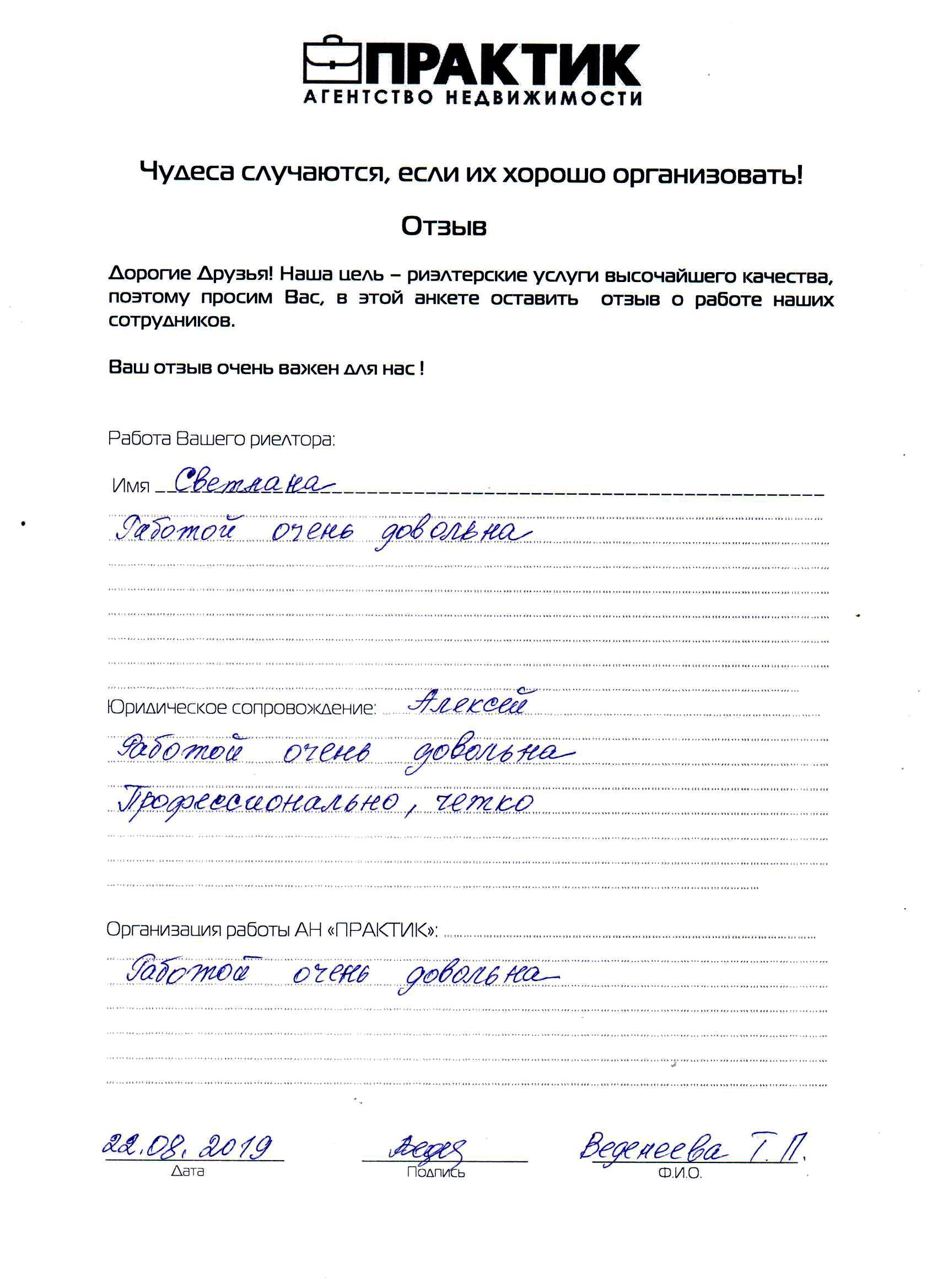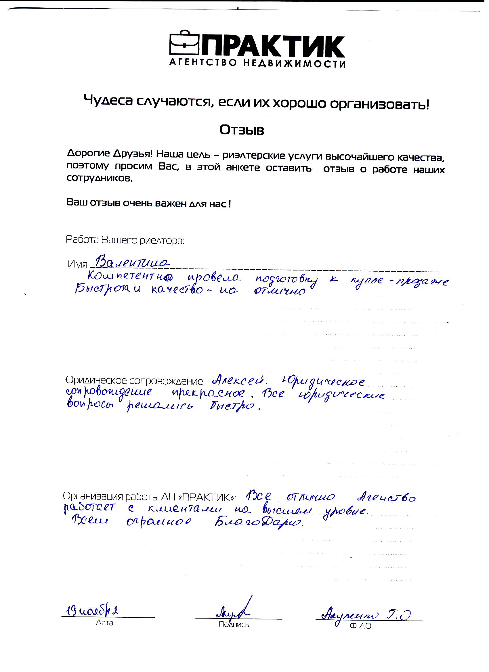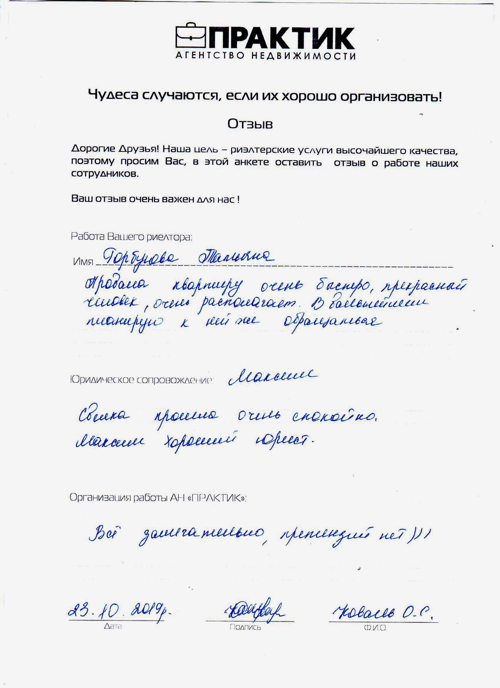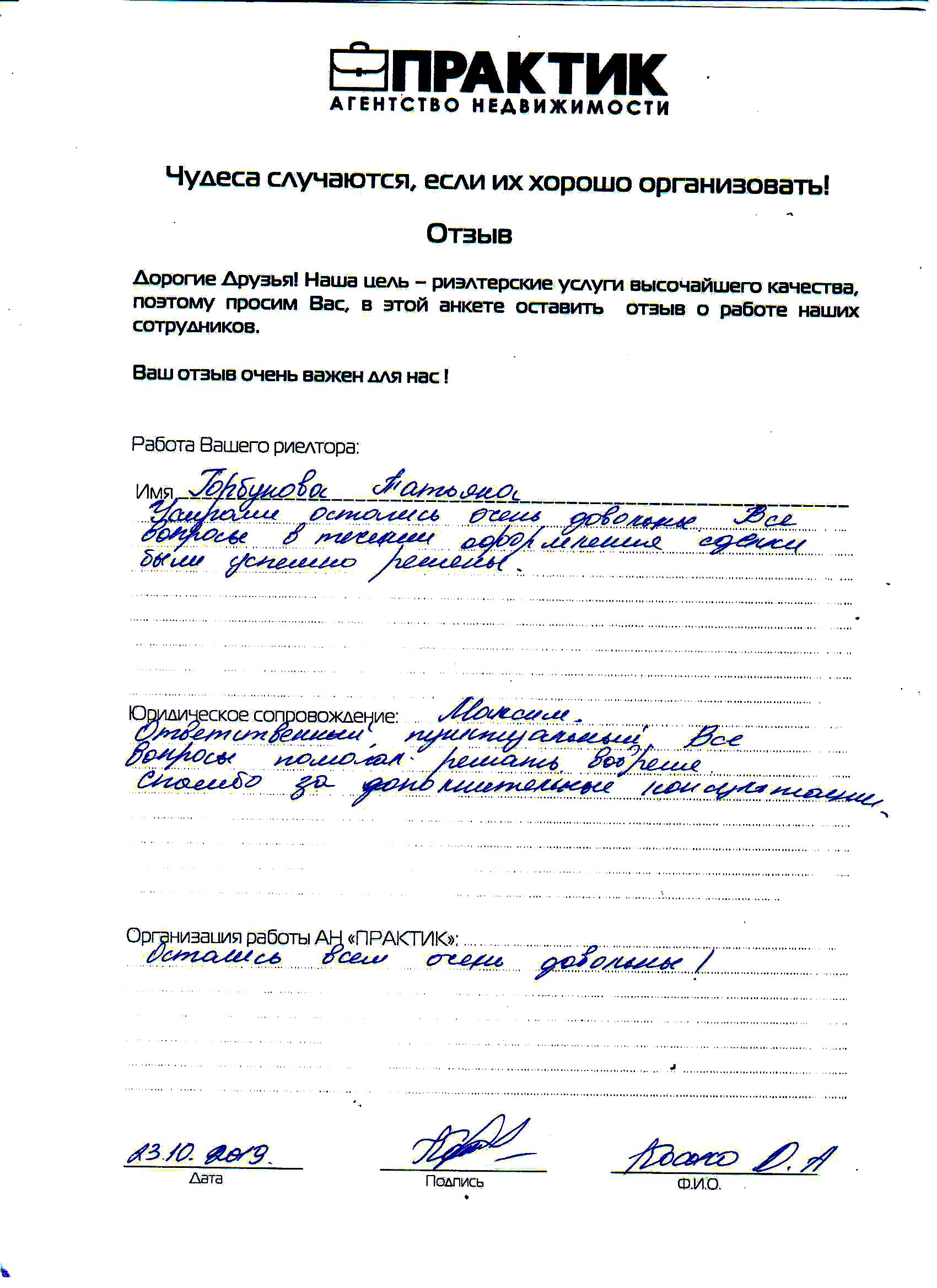 Работа Вашего риелтора: Очень понравилось. Хороший специалист своего дела. Культурная, психолог тонкий, на своем месте.