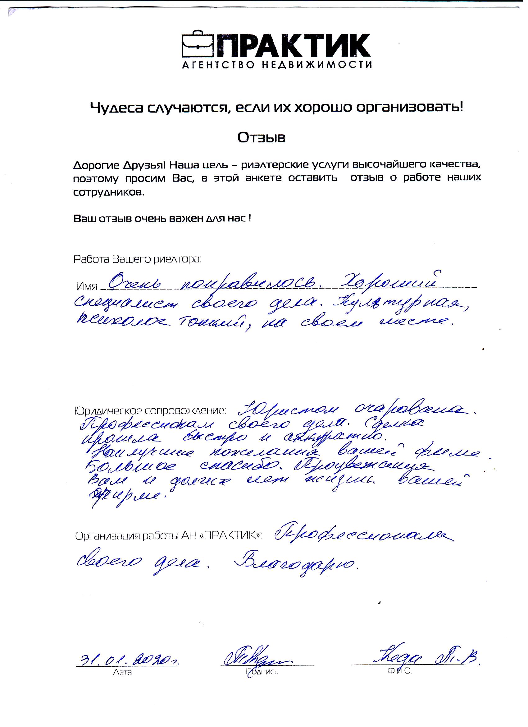 Відгук про роботу АН Практик від 31.01.2020 Кеда Т.В.